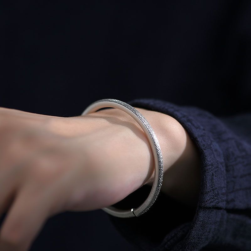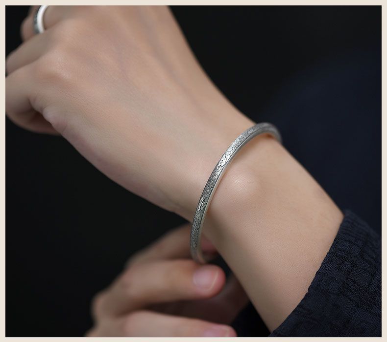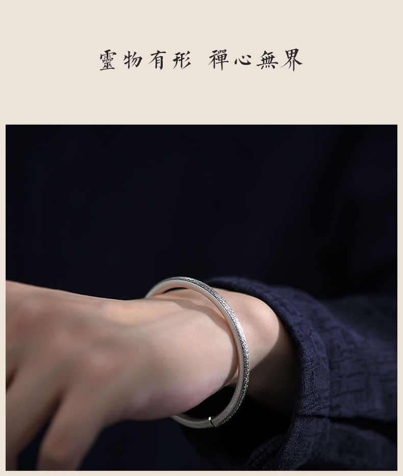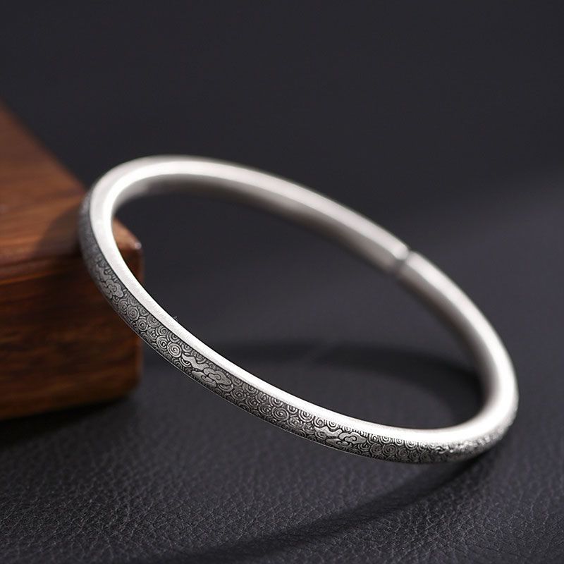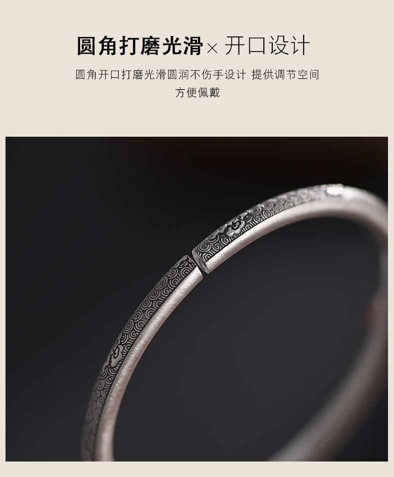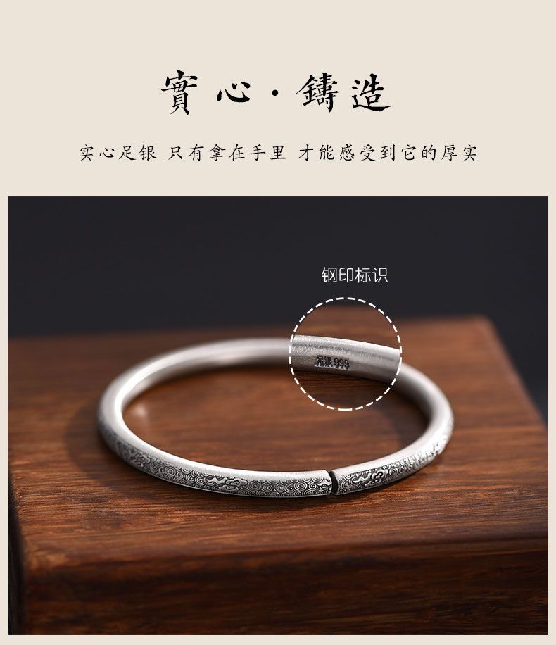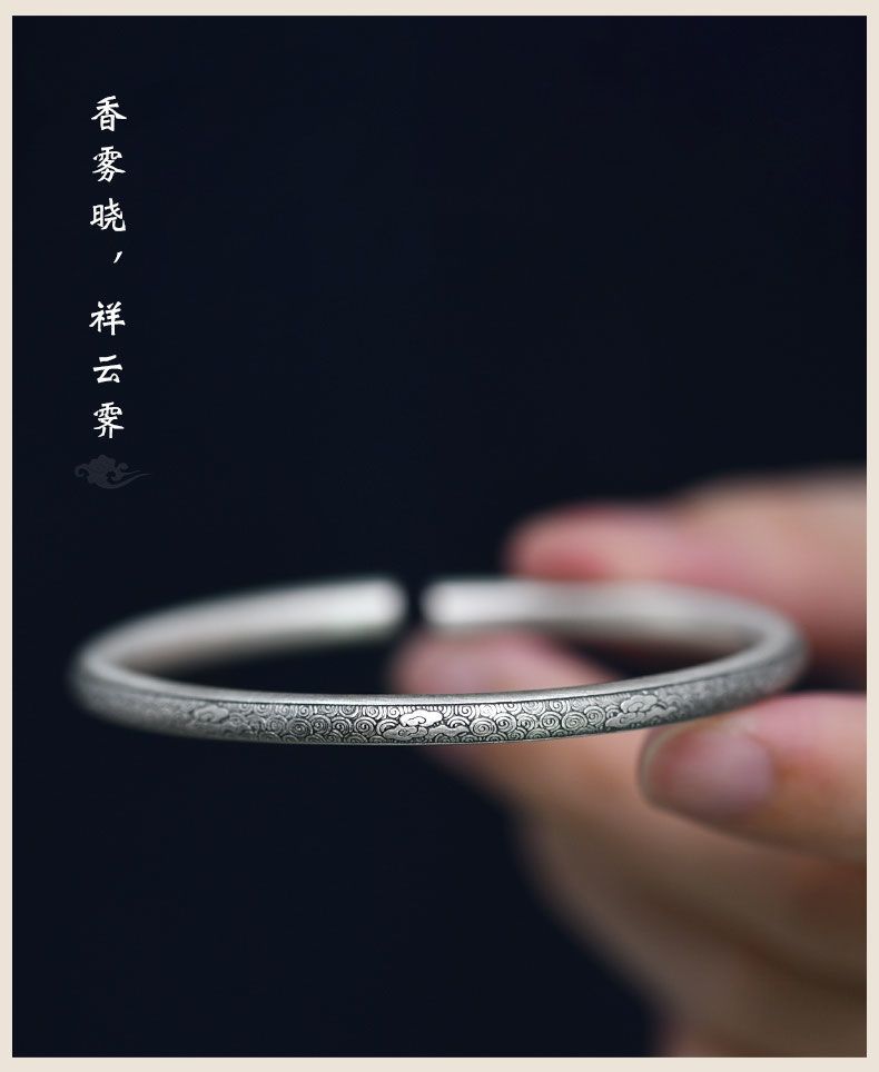 绝尘999纯银祥云手镯男女款复古民族风实心开口镯子情人节礼物