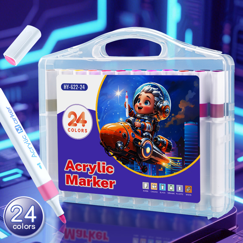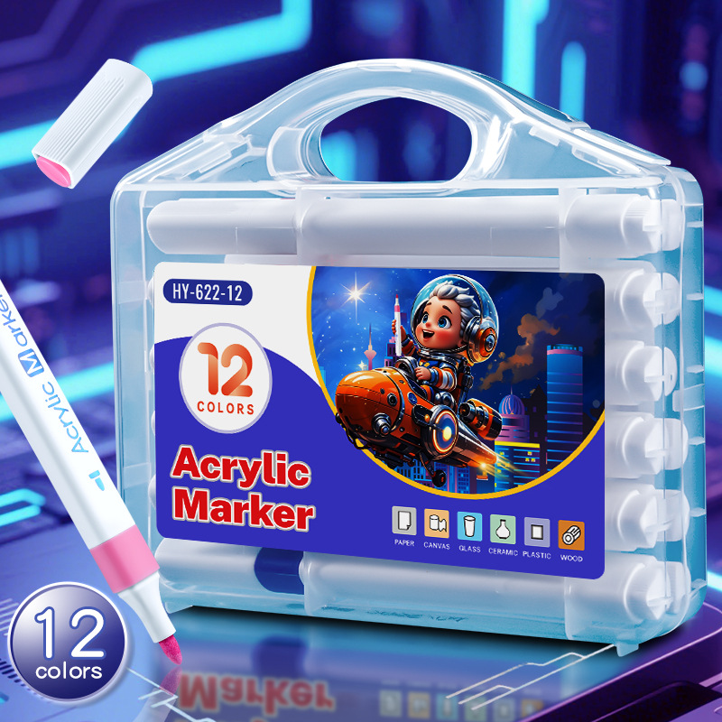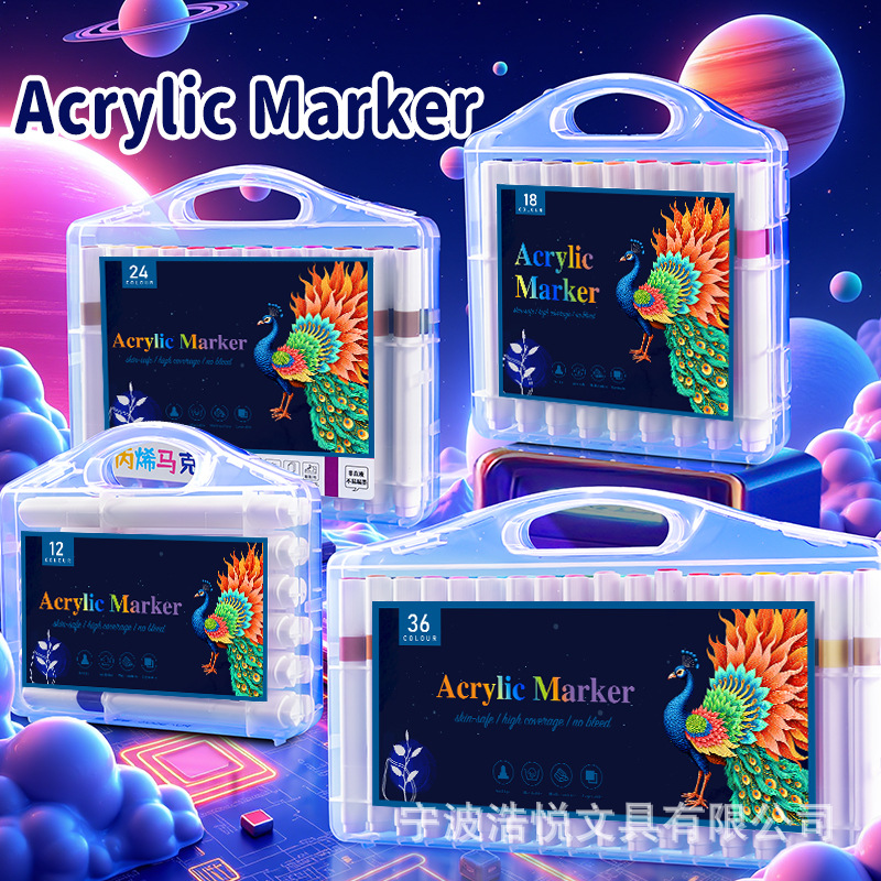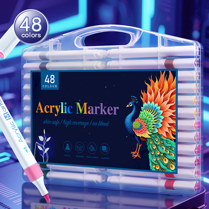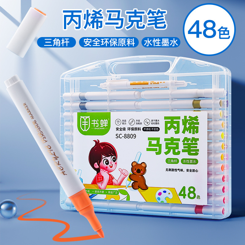 12/24/36/48色可洗记号笔三角杆丙烯马克笔绘画可叠色儿童记号笔
