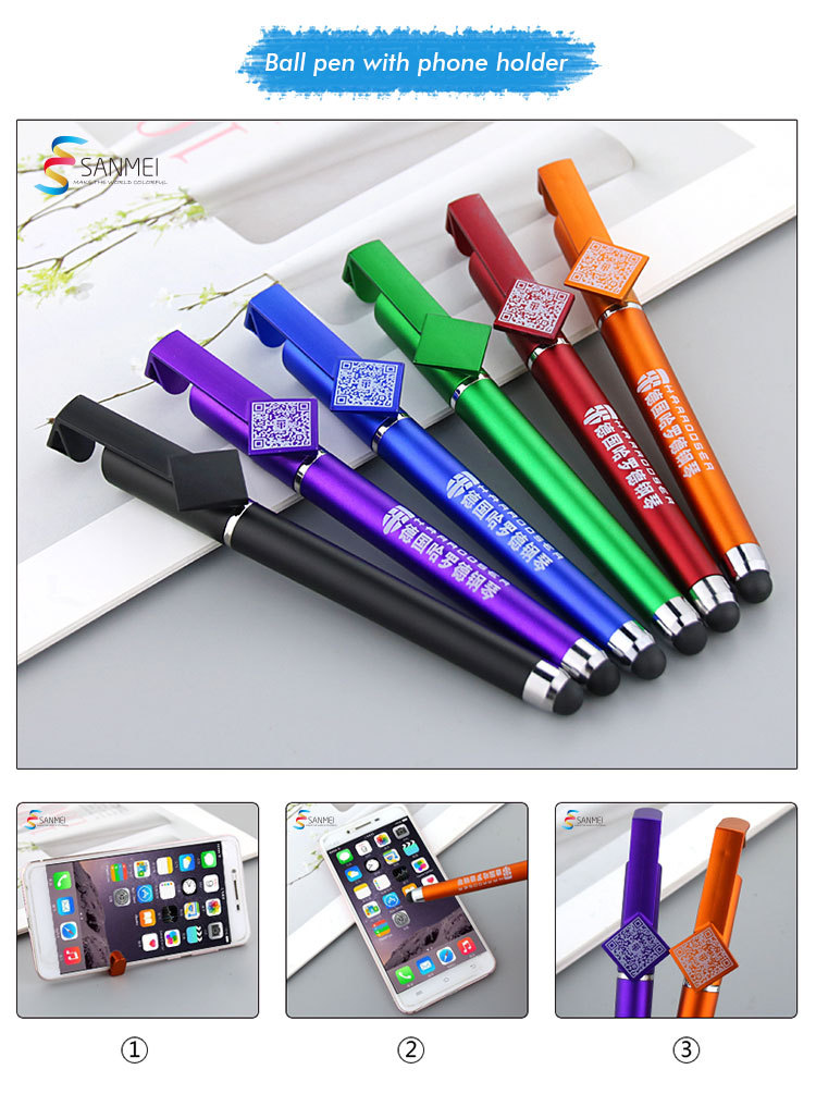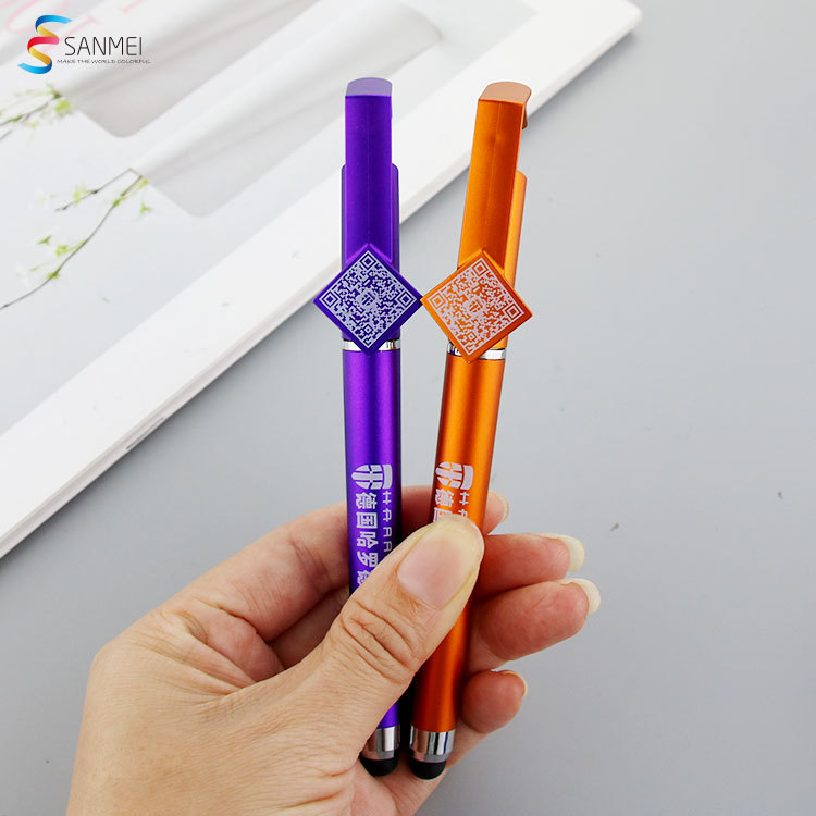 外贸多功能二维码中性笔批发定制logo触控头手机支架广告水笔定做