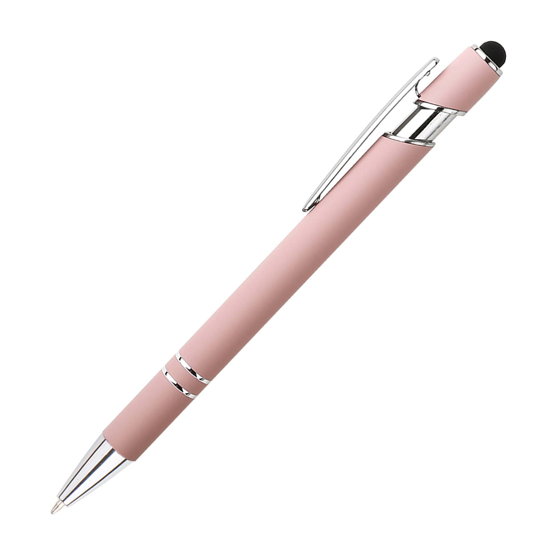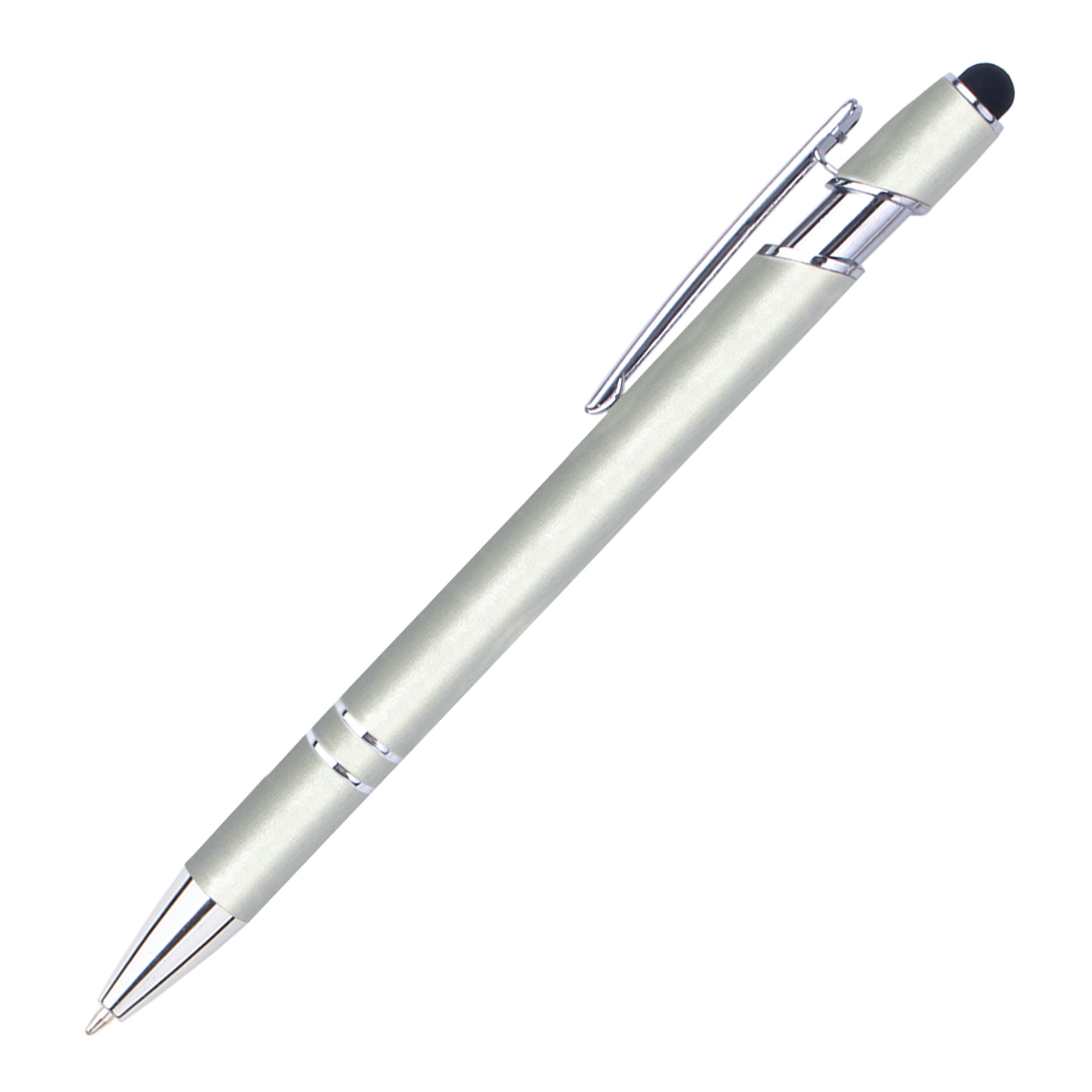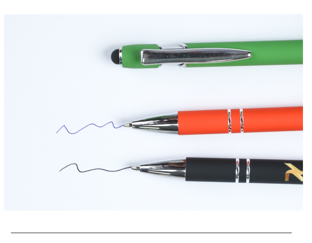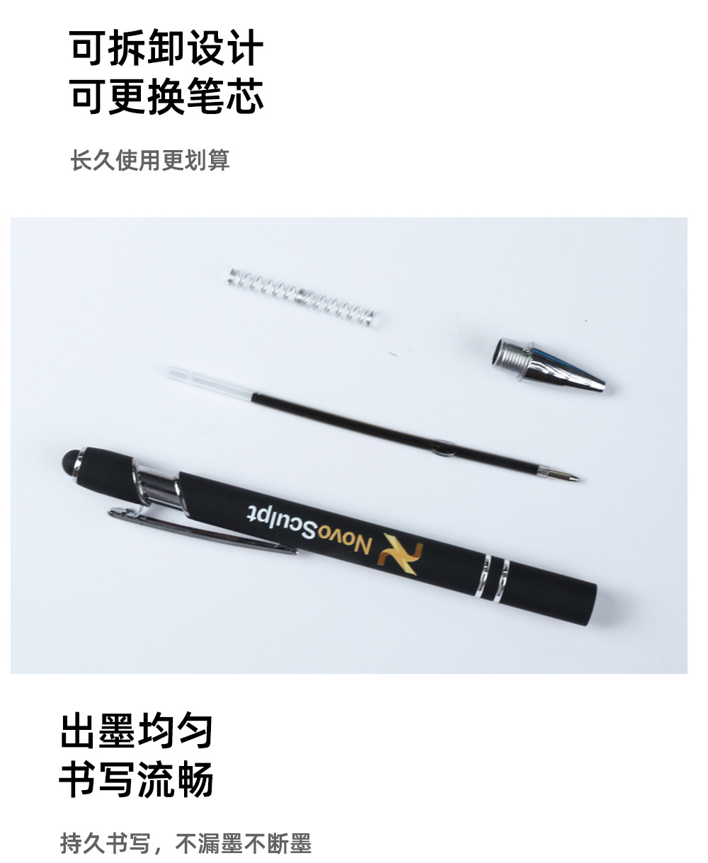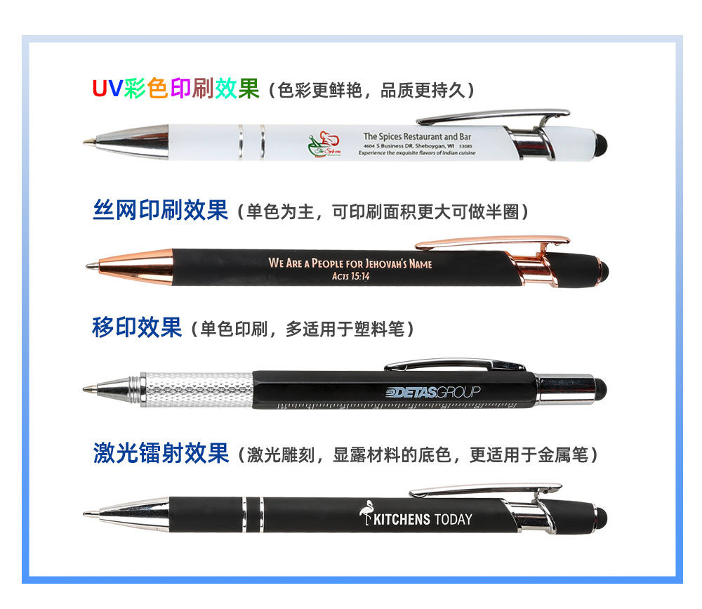现货按动美极笔跨境金属铝杆喷胶圆珠笔批发可印刷logo触屏广告笔