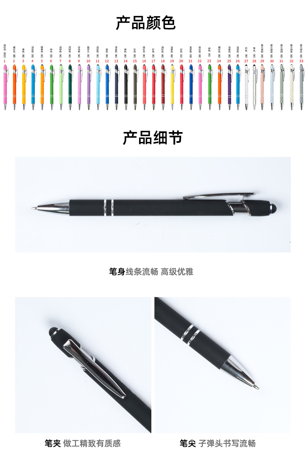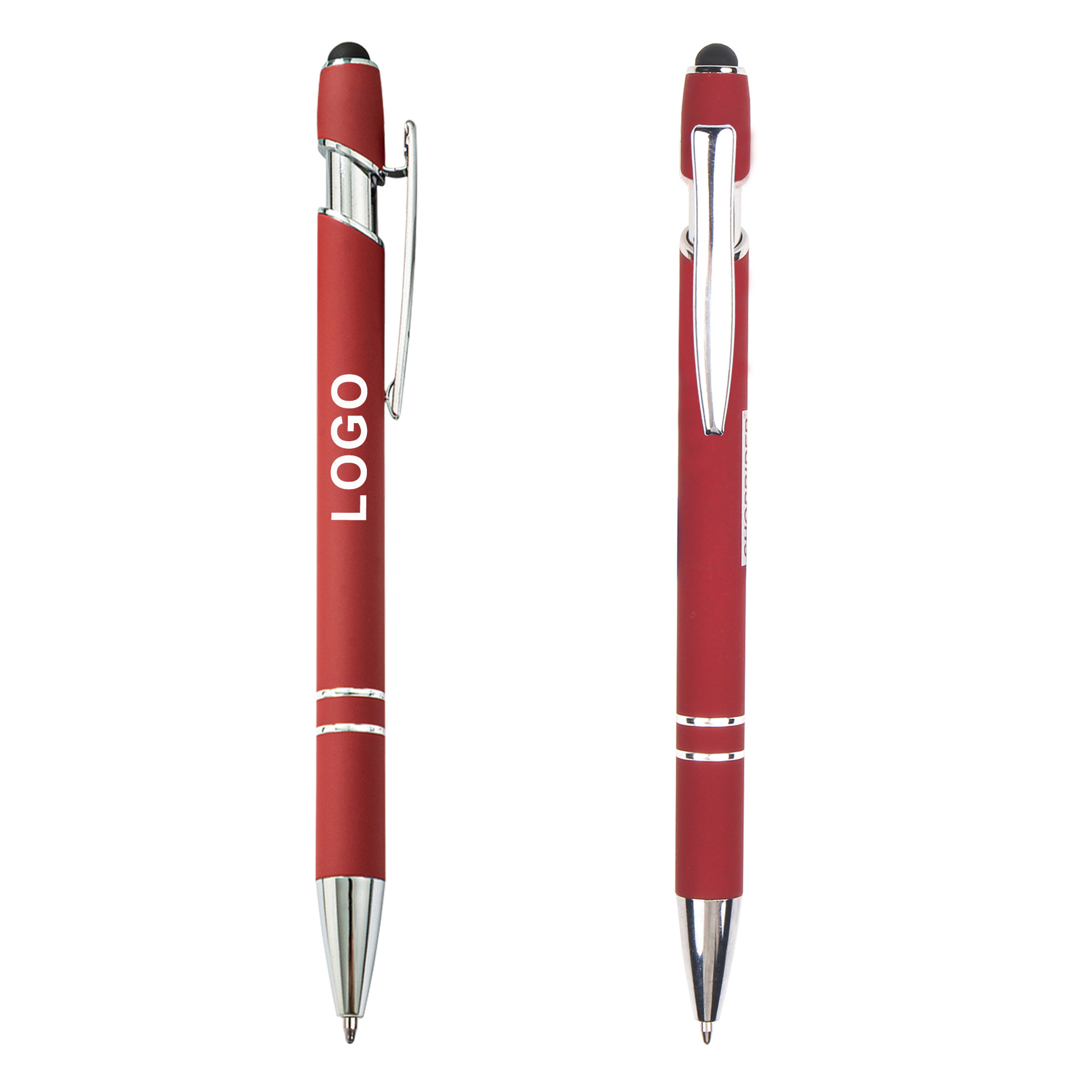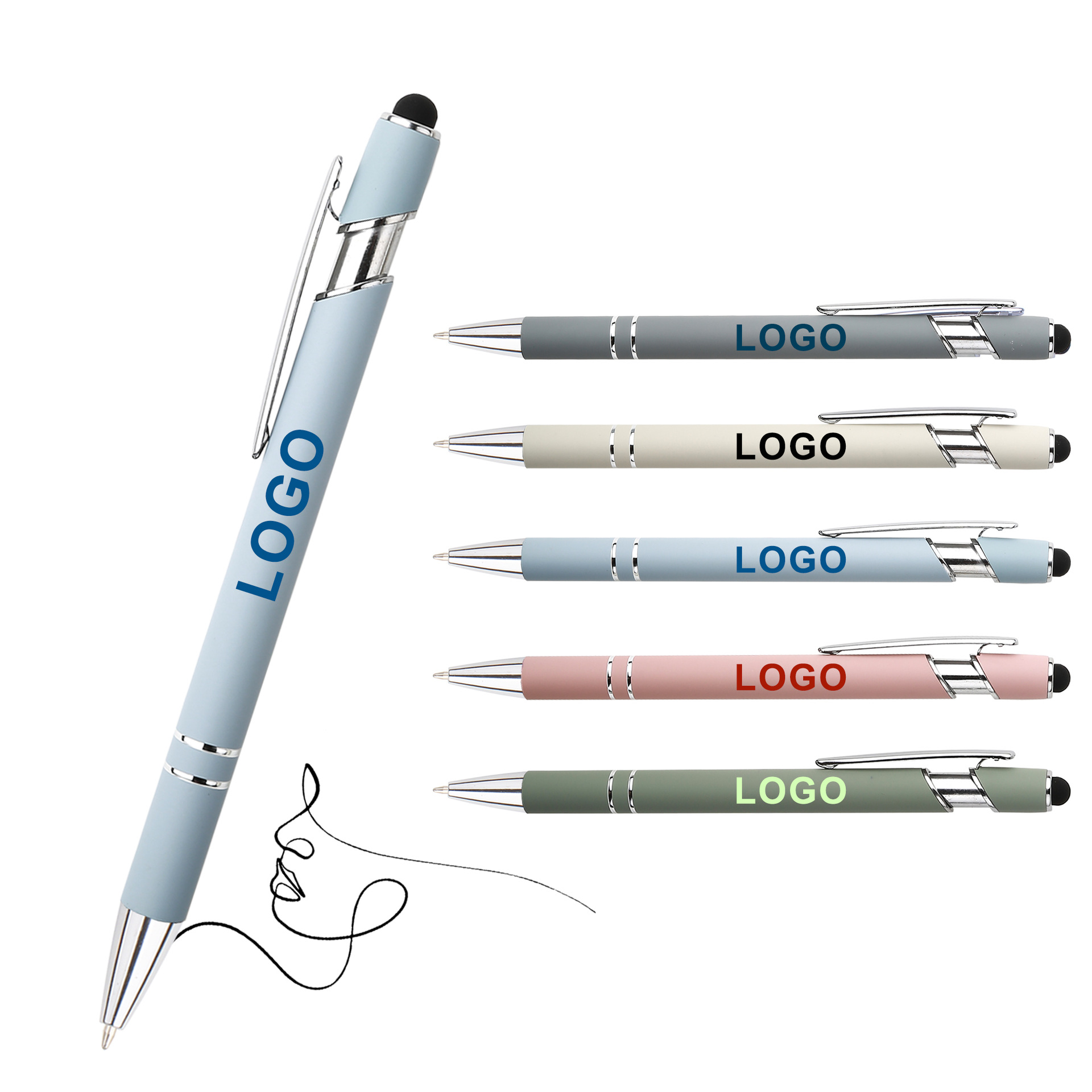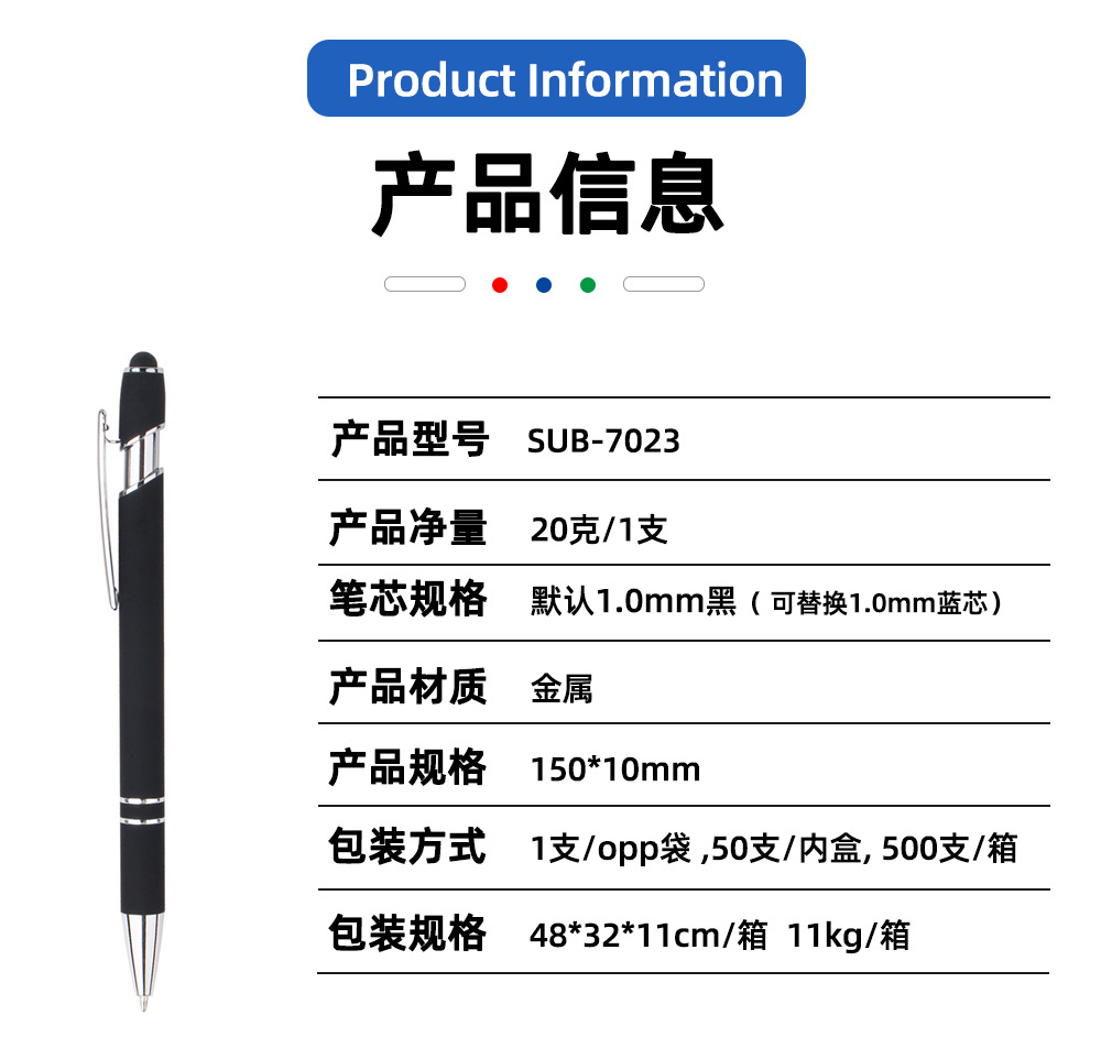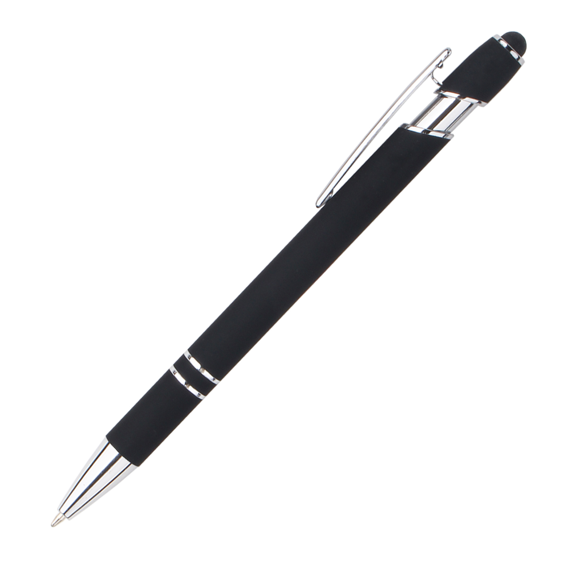 现货按动美极笔跨境金属铝杆喷胶圆珠笔批发可印刷logo触屏广告笔