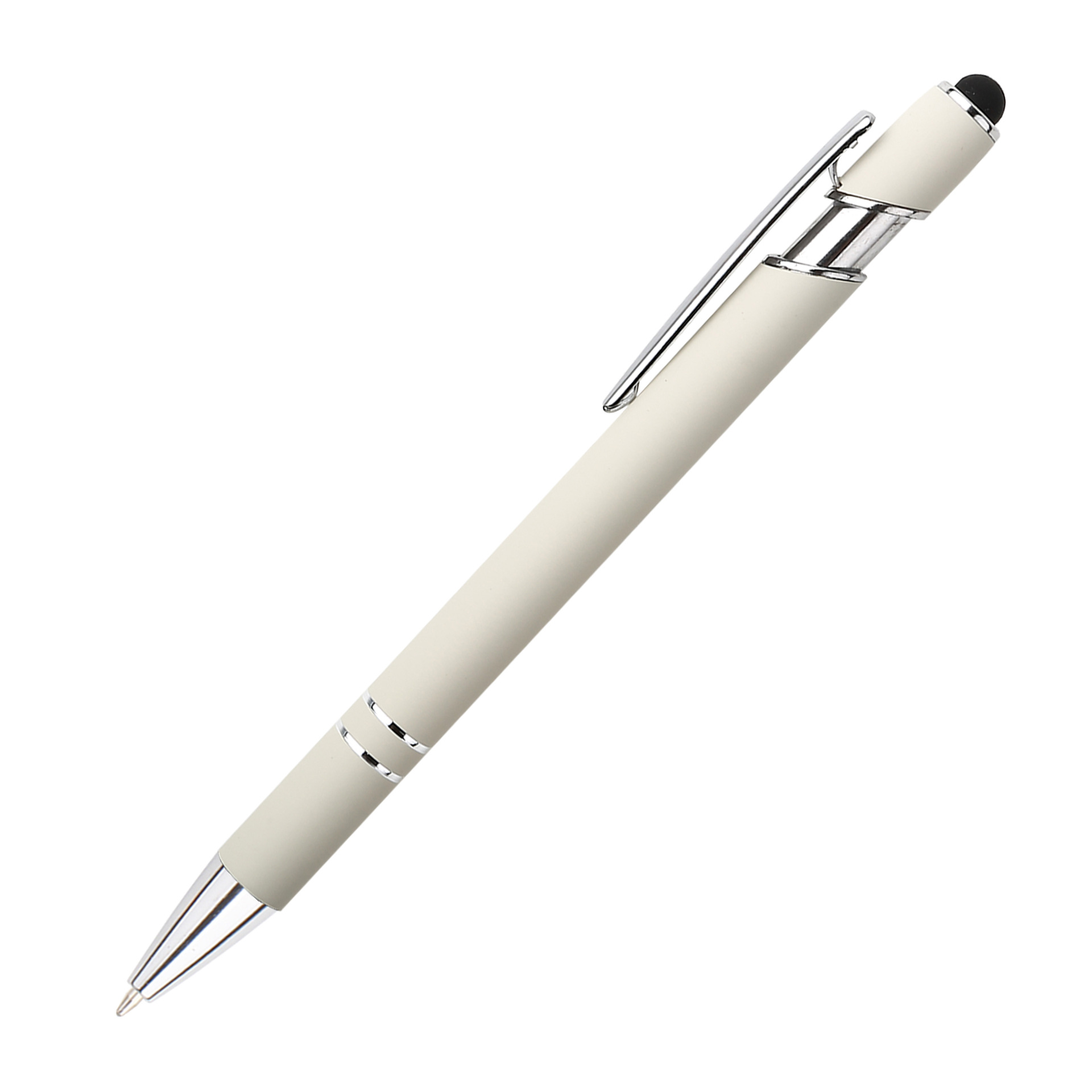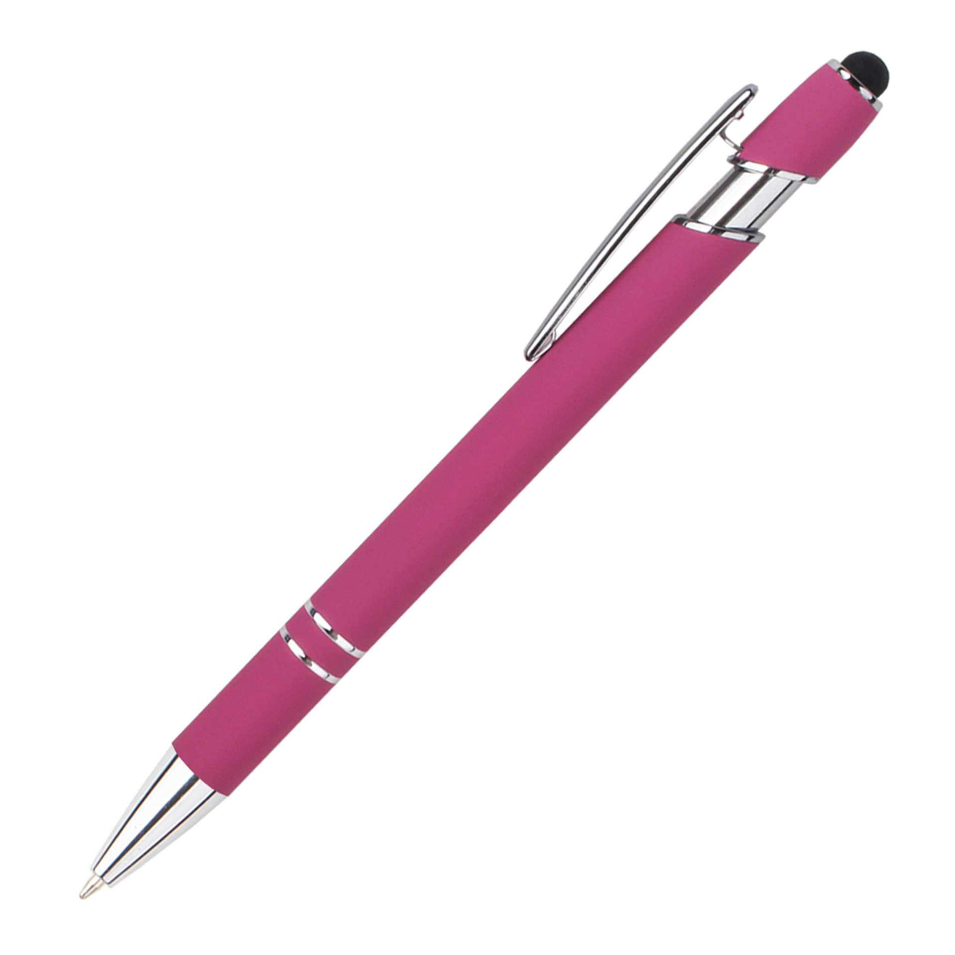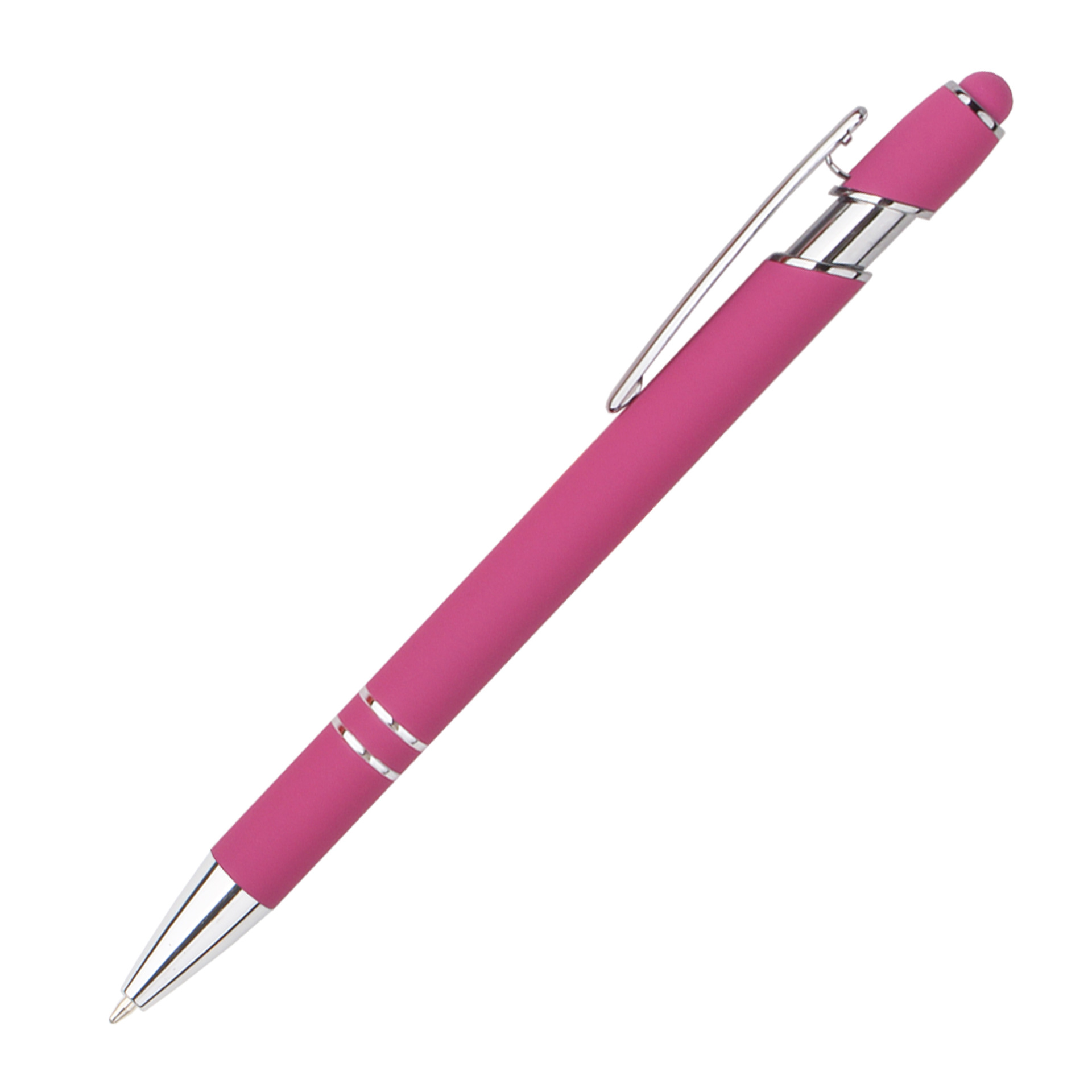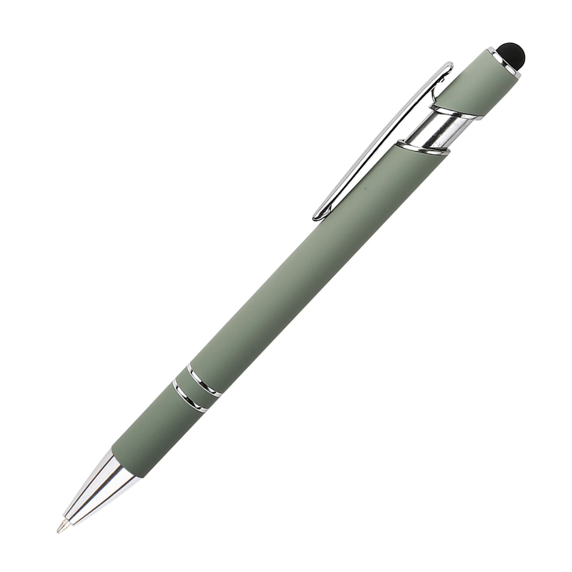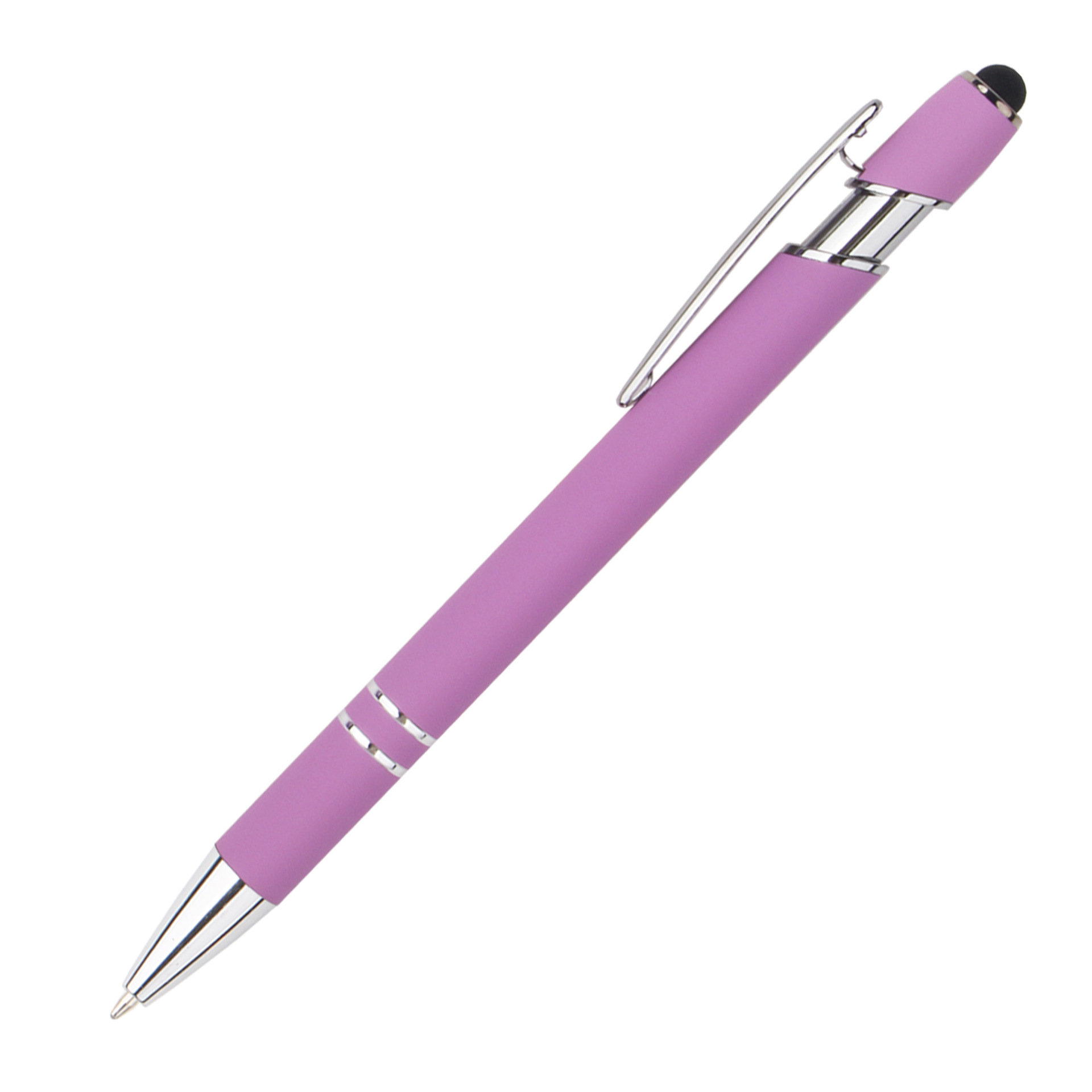 现货按动美极笔跨境金属铝杆喷胶圆珠笔批发可印刷logo触屏广告笔