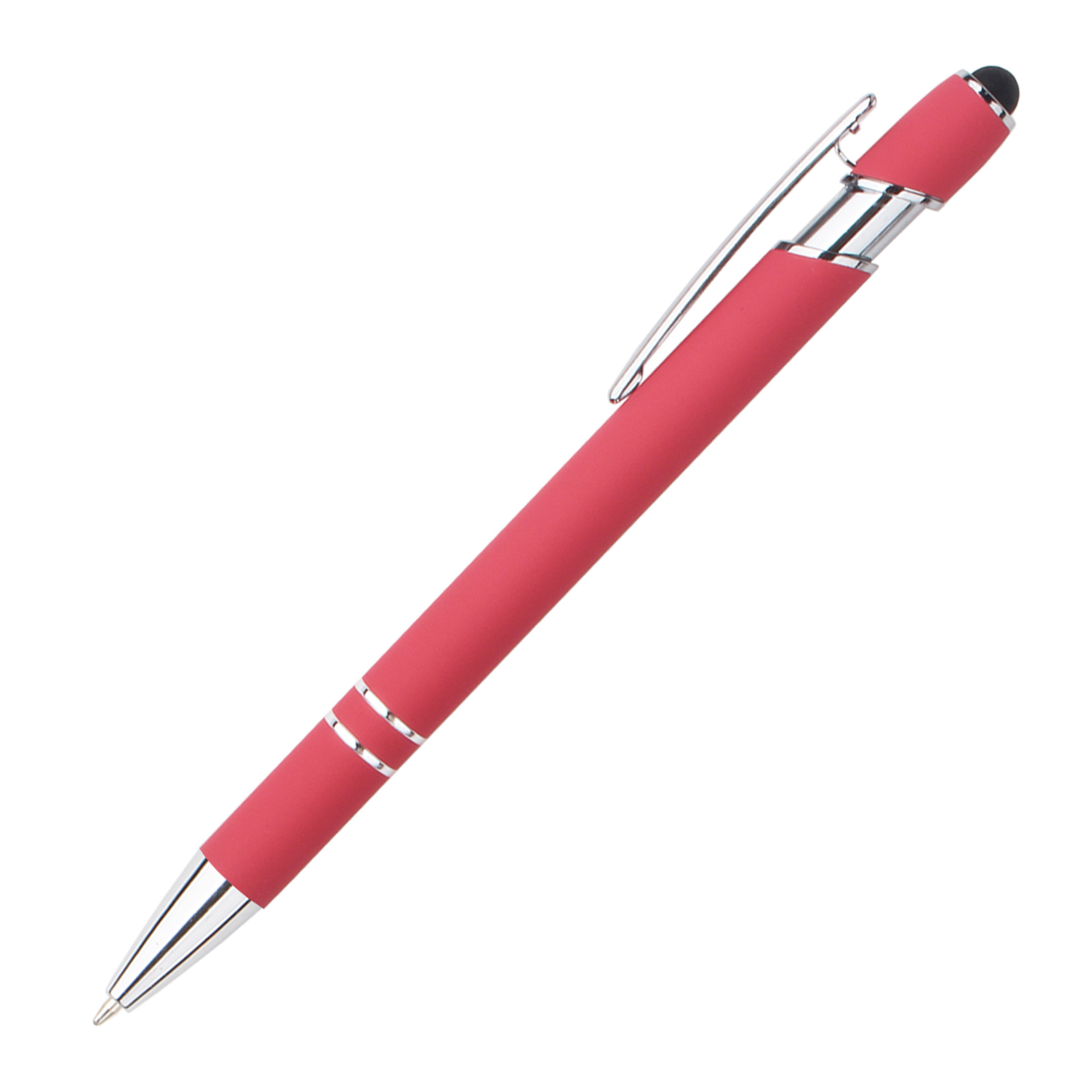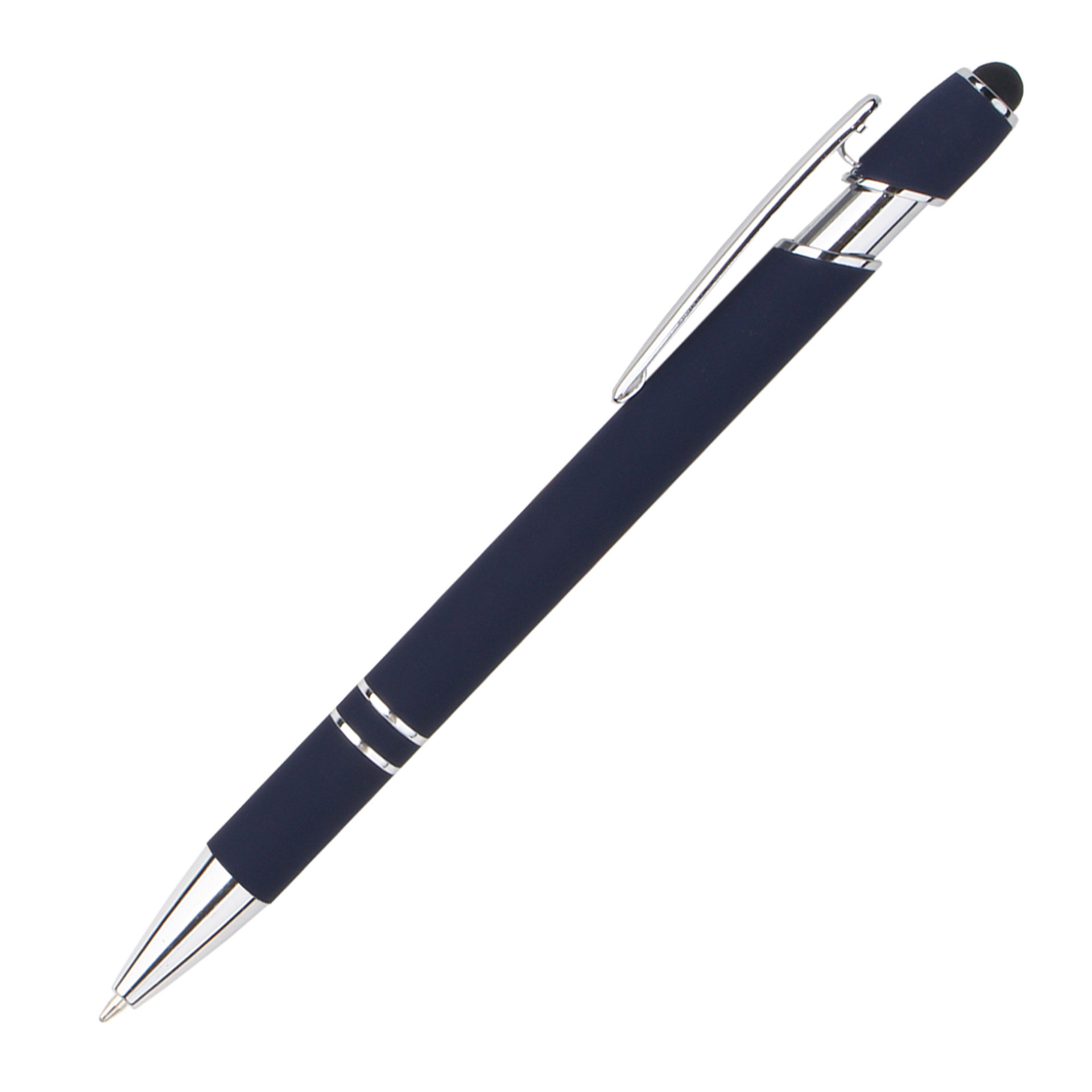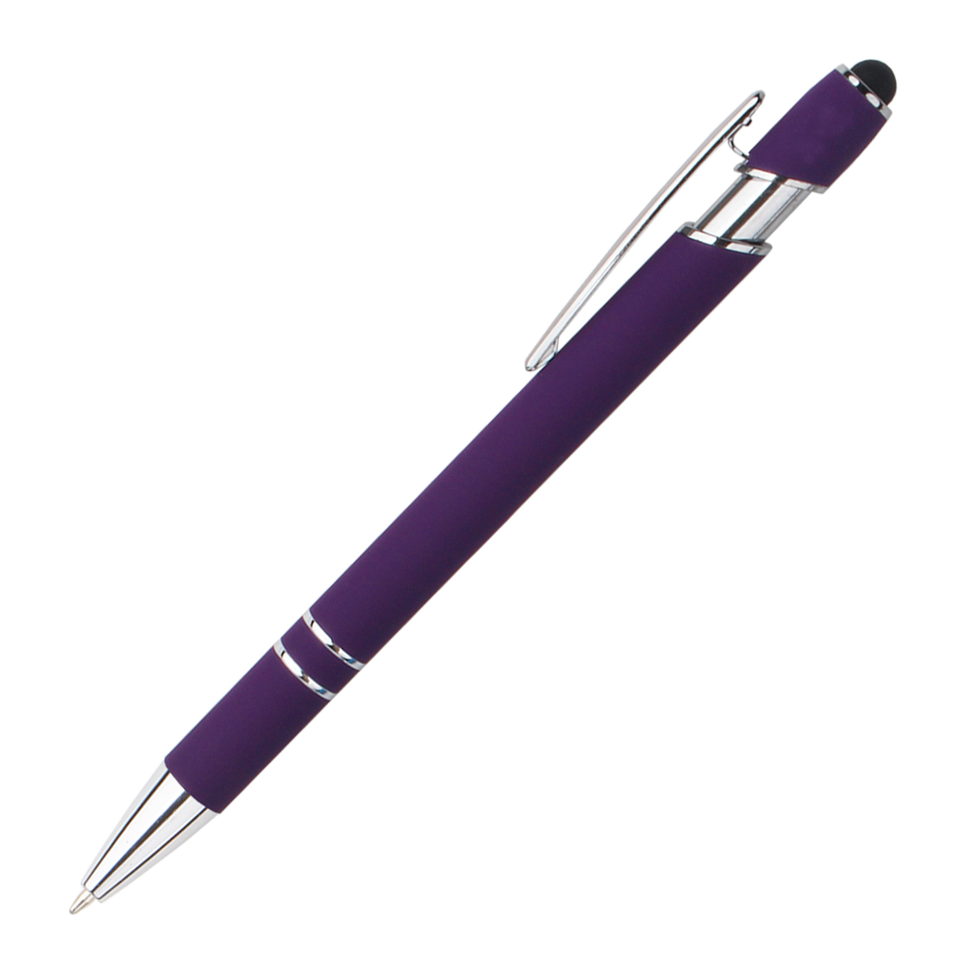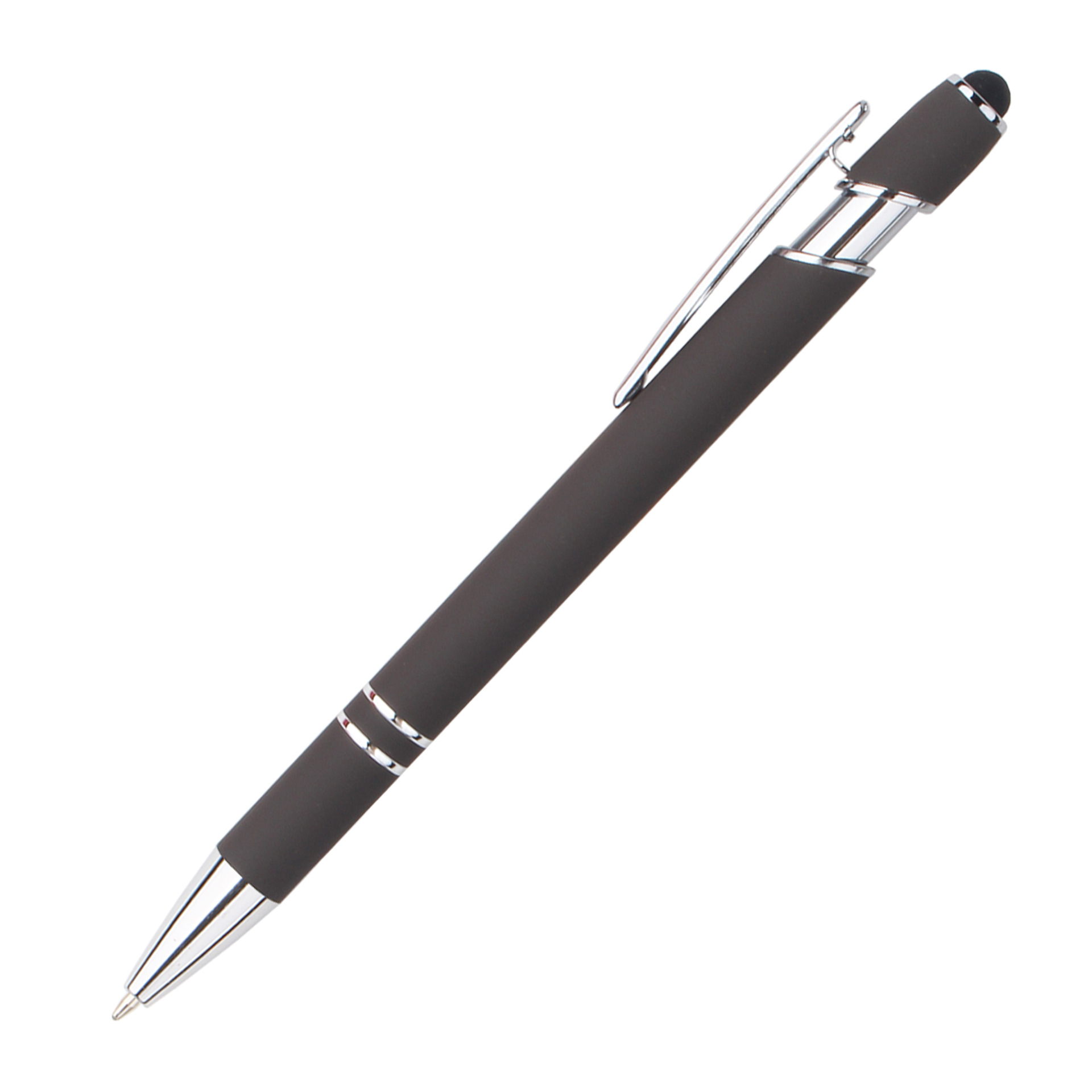 现货按动美极笔跨境金属铝杆喷胶圆珠笔批发可印刷logo触屏广告笔