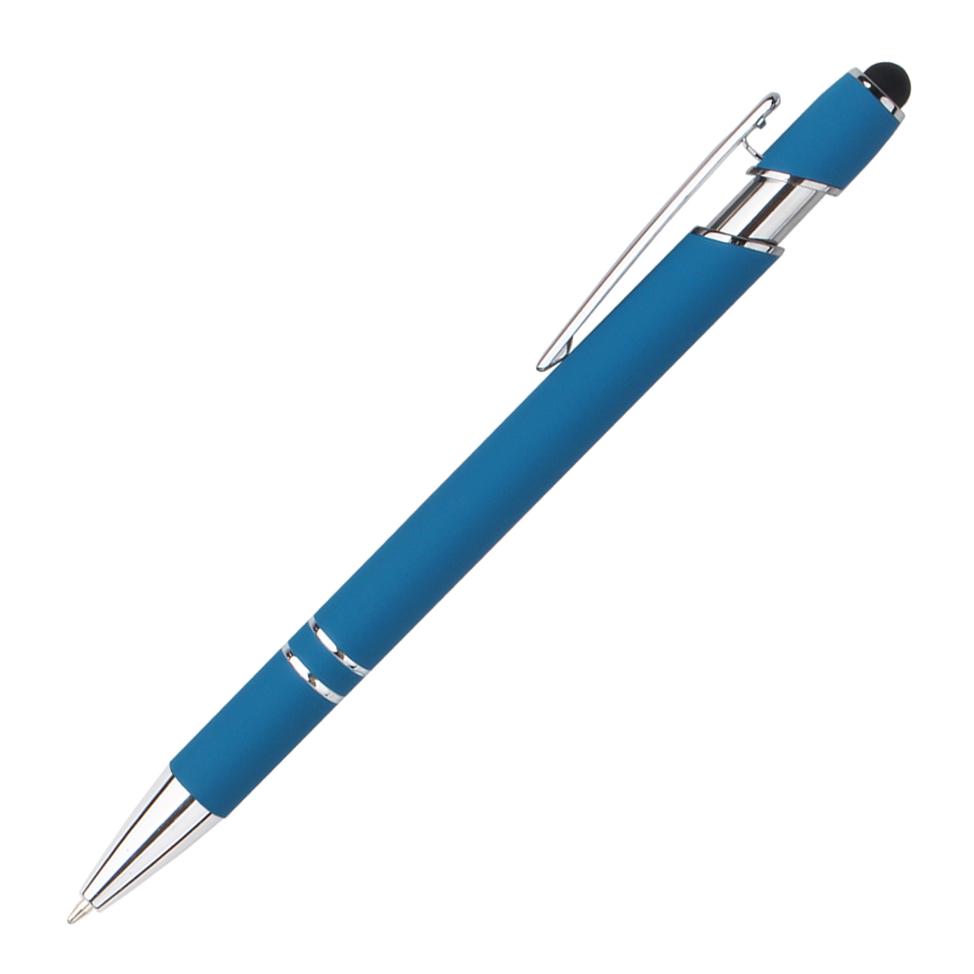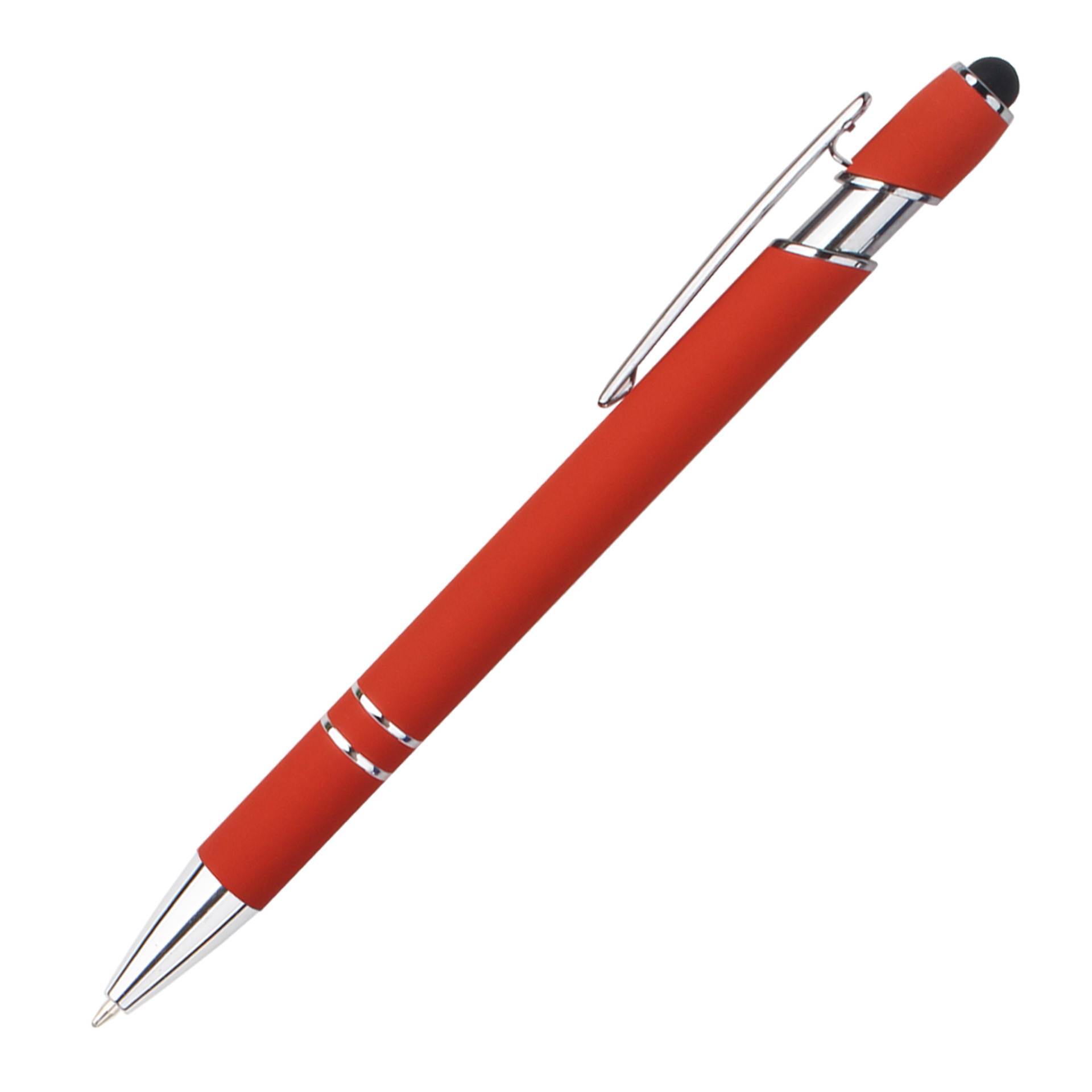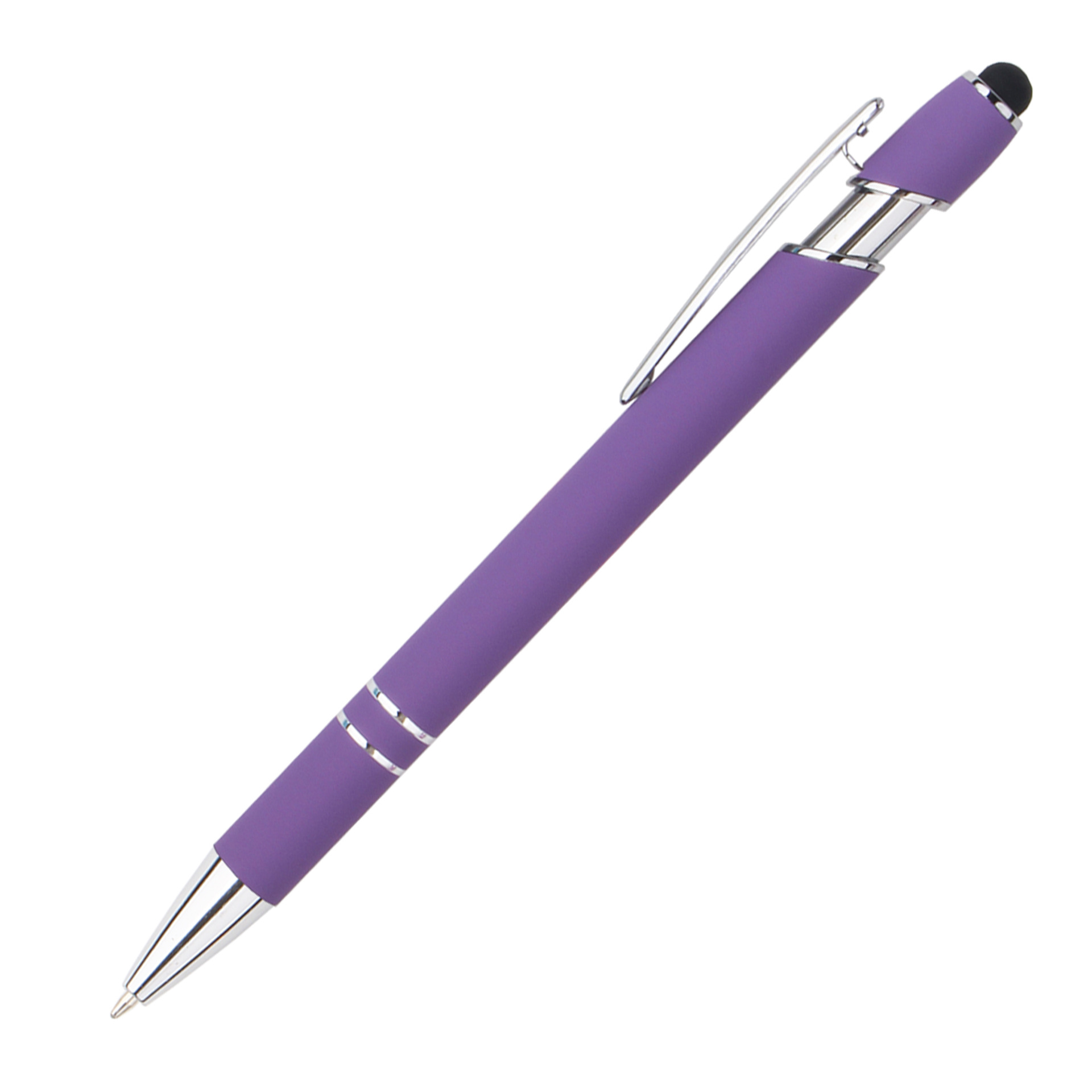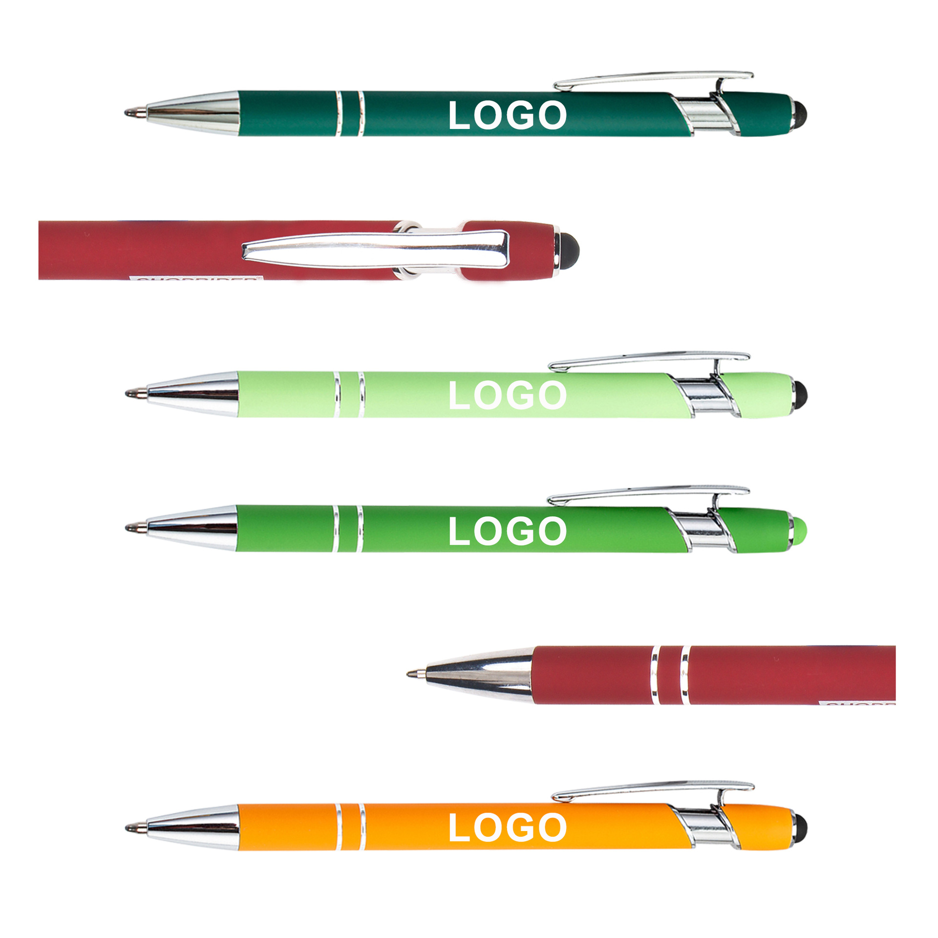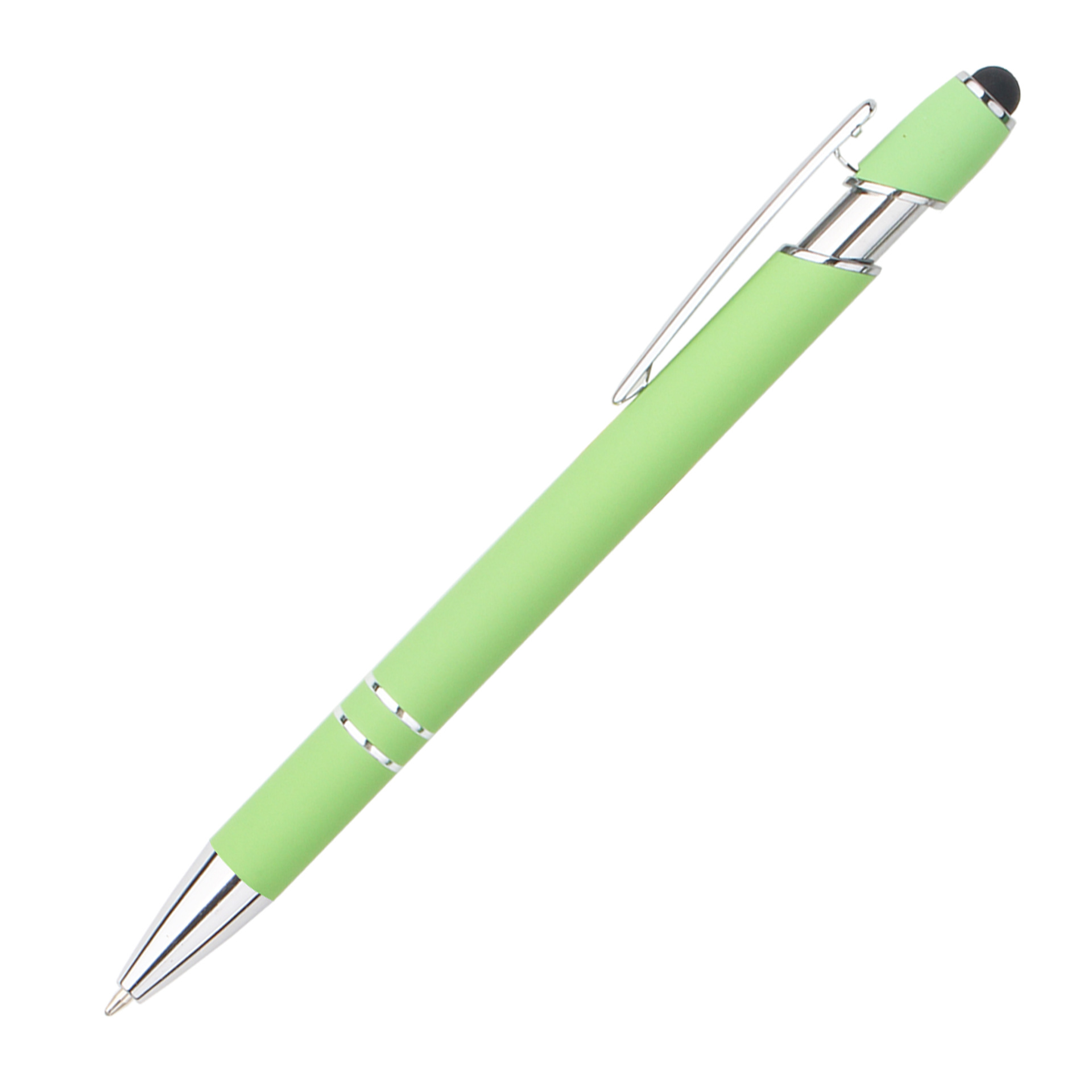 现货按动美极笔跨境金属铝杆喷胶圆珠笔批发可印刷logo触屏广告笔