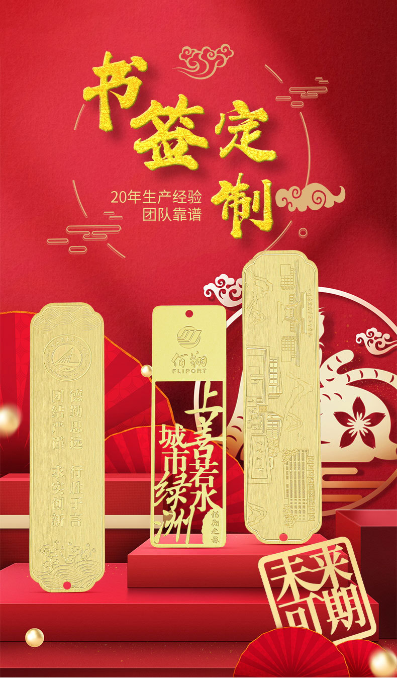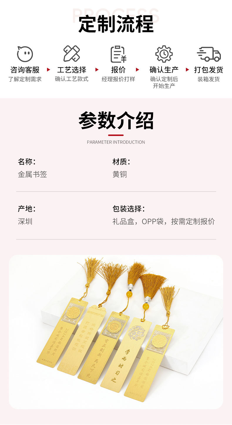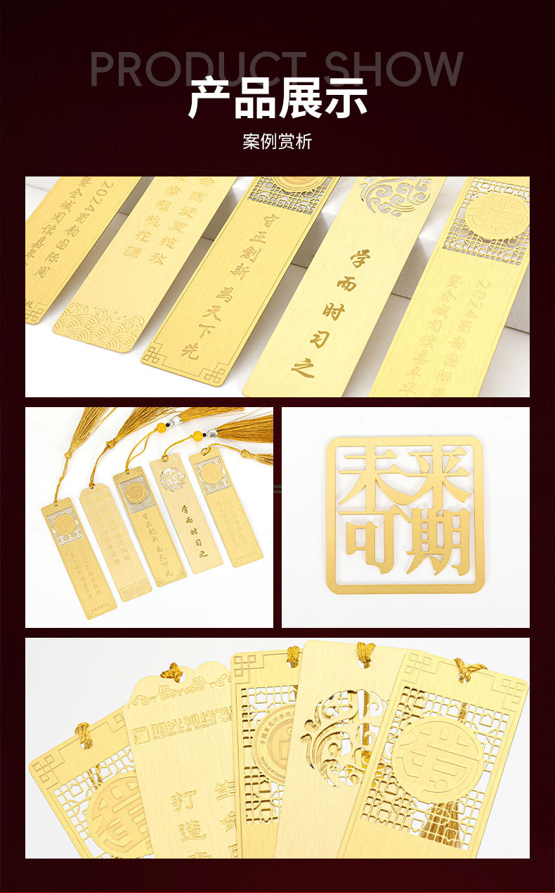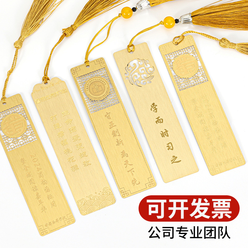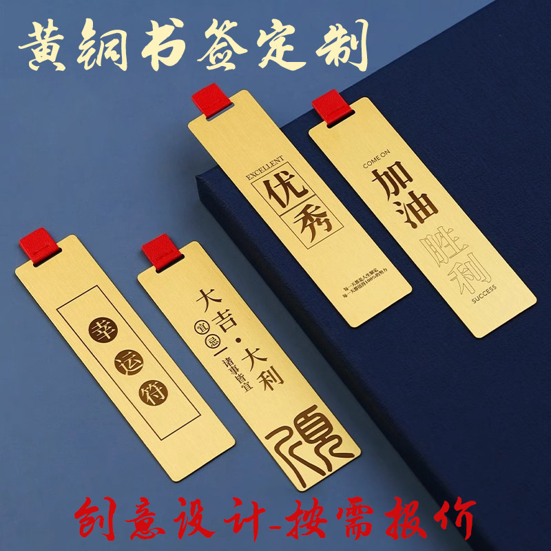 黄铜金属书签定制企业学校活动logo刻字镂空彩色订制礼盒书签定做