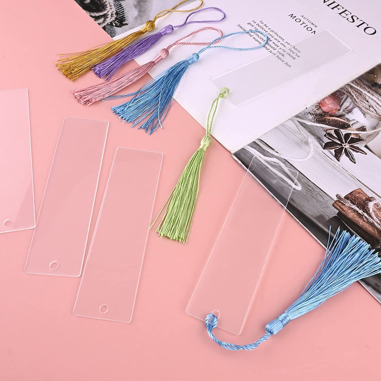 DIY未完成矩形空白跨境亚克力书签矩形空白彩色流苏挂牌派对装