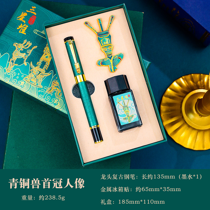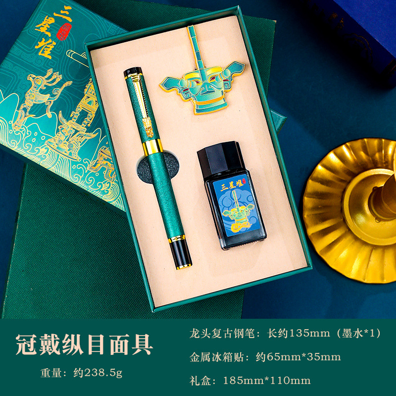 三星堆钢笔礼盒套装实用练字笔伴手礼中国古风徽章冰箱贴文创礼品