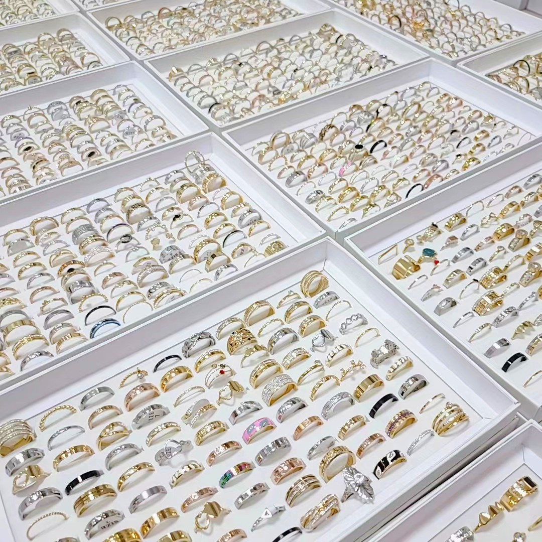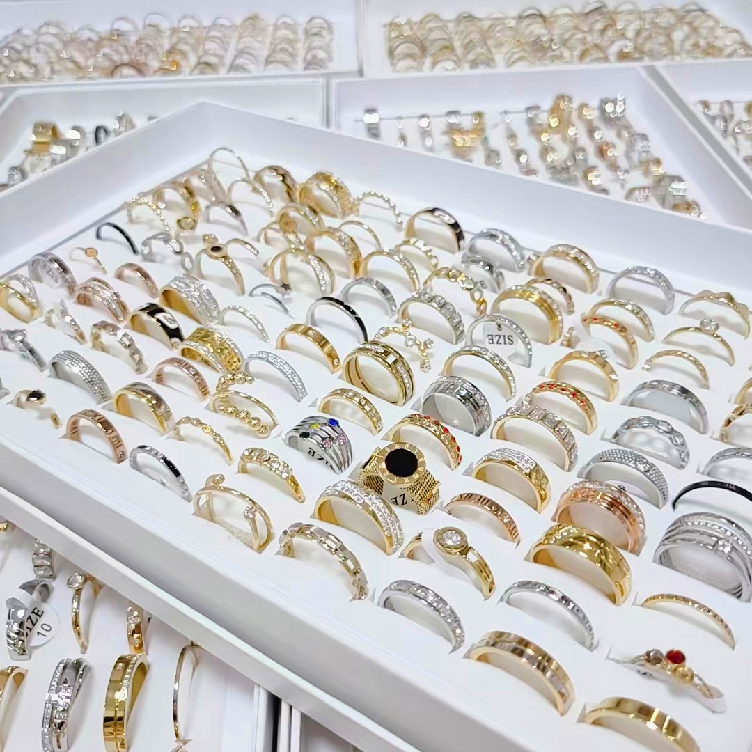 钛钢时尚网红戒指女金色玫瑰金混三色简约不锈钢戒指饰品混款批发