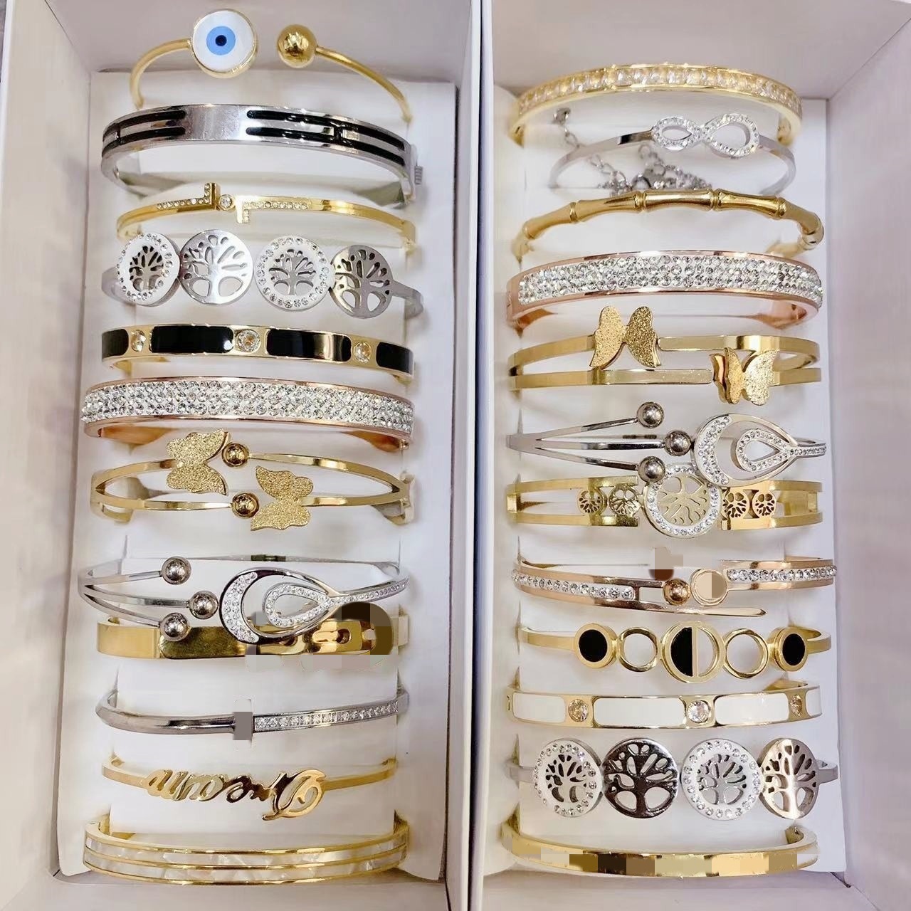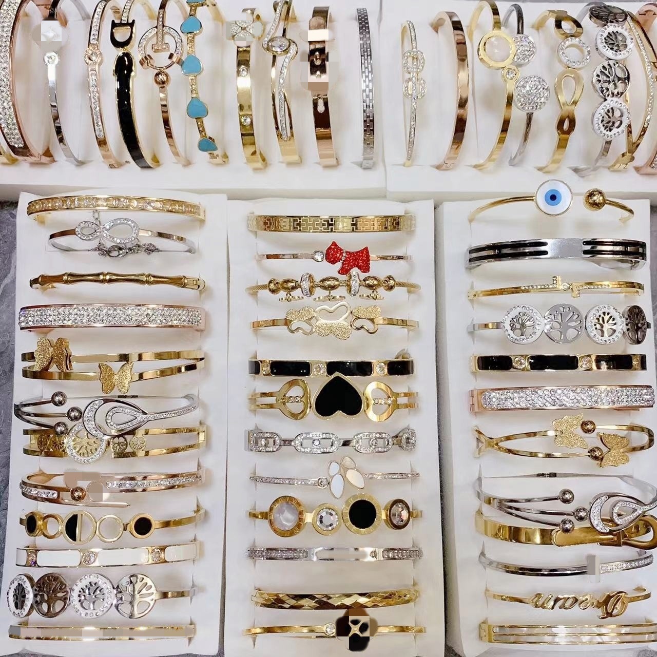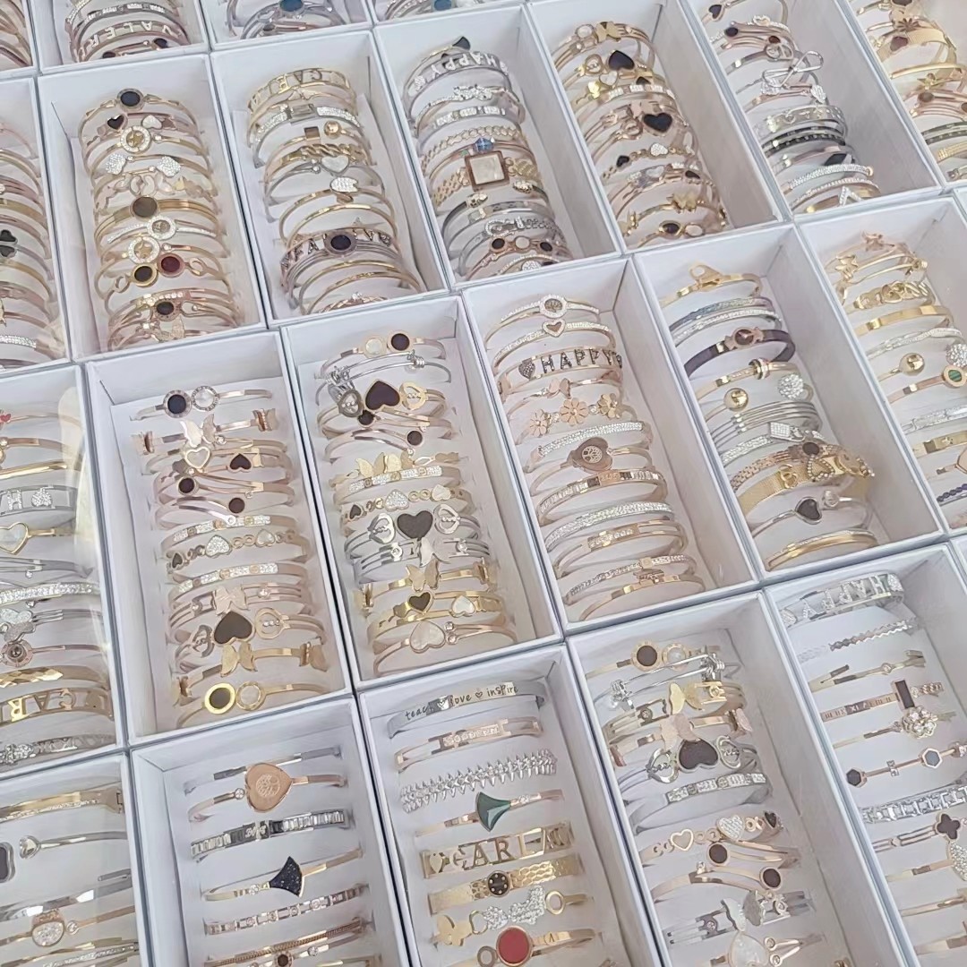 钛钢高品质保色时尚镶钻手镯不锈钢混款批发玫瑰金钢色金色手环女