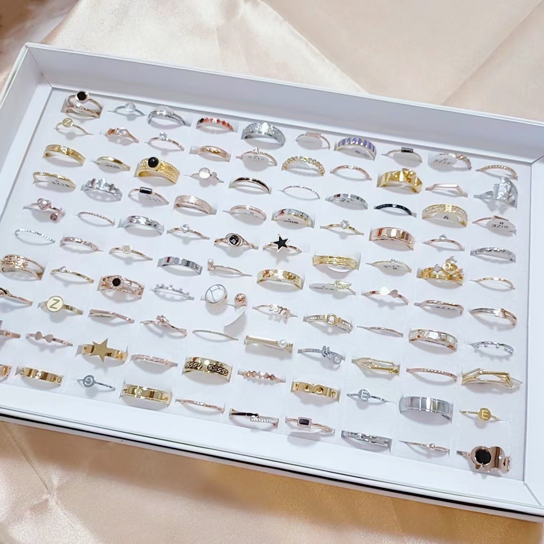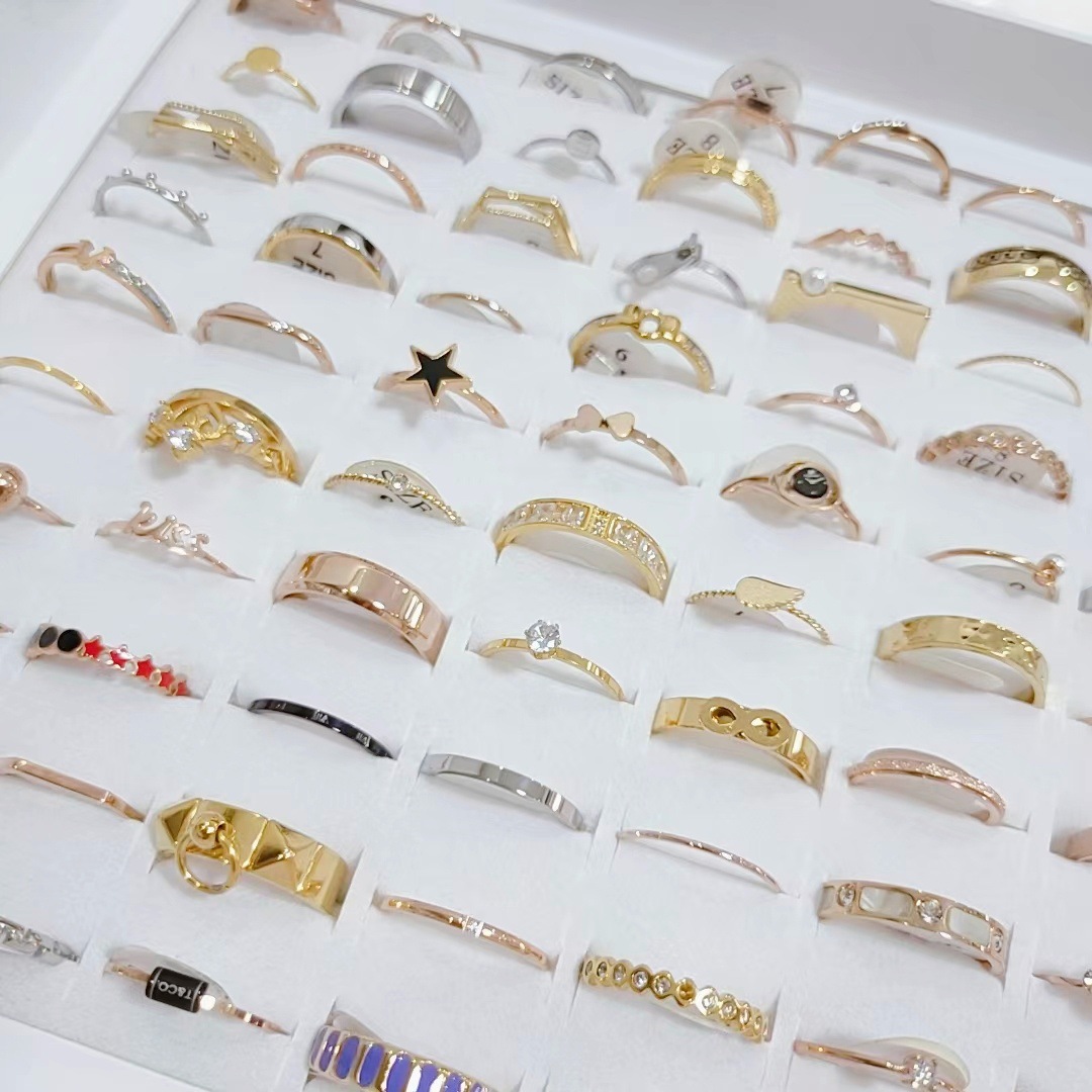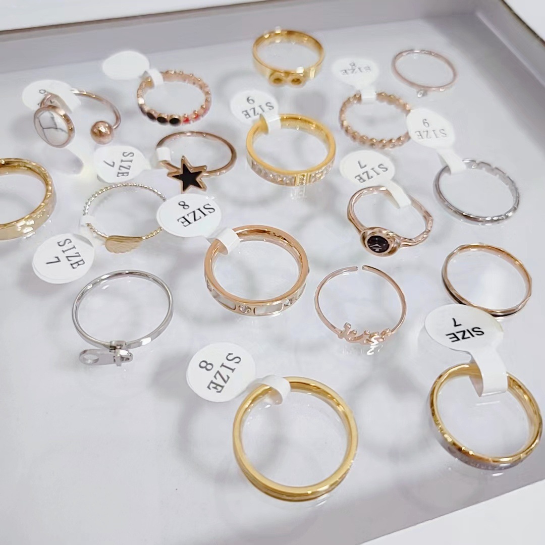 钛钢时尚网红戒指金色钢色微钻不锈钢高品质保色素圈戒指混款批发