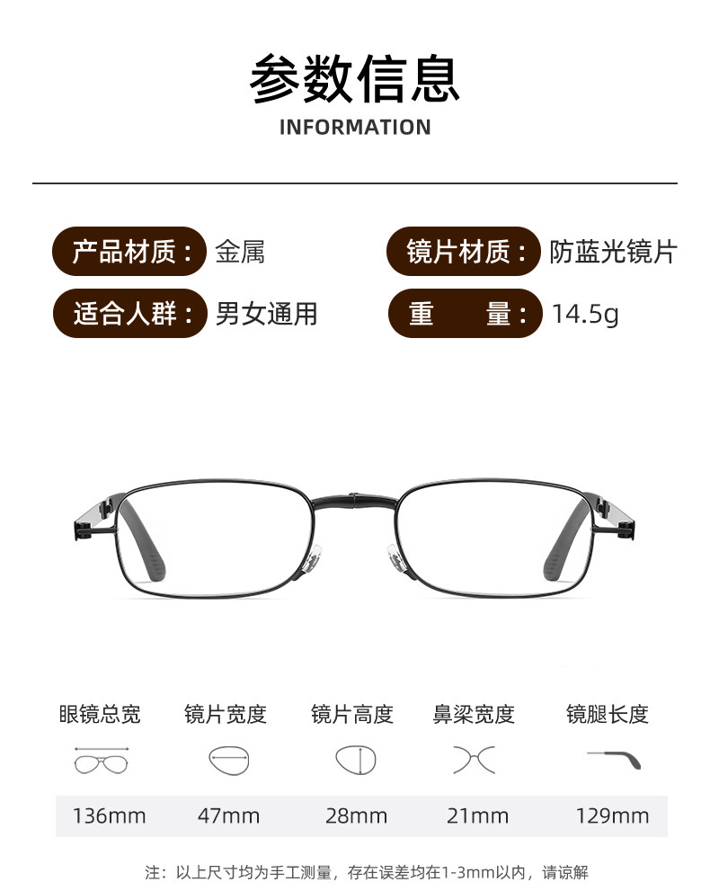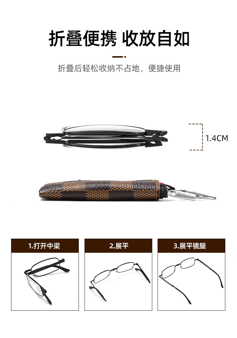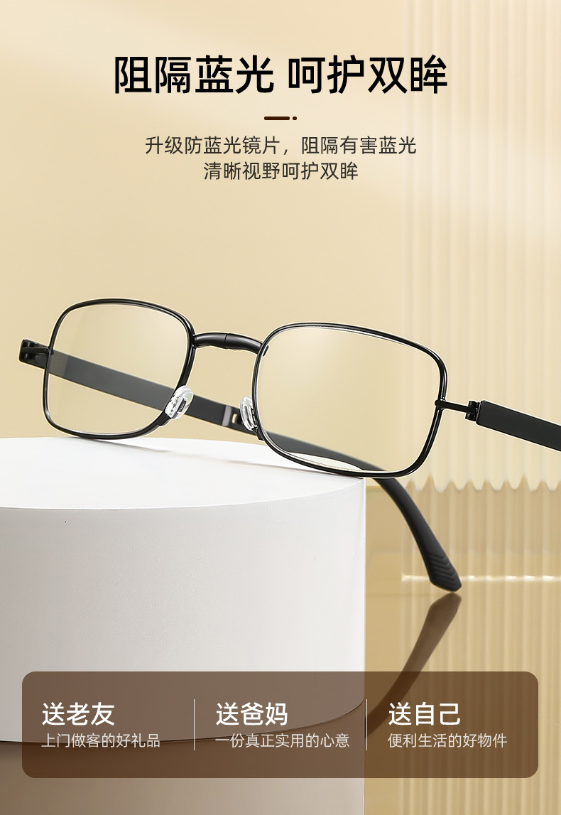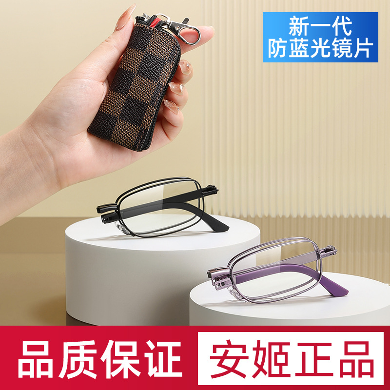 安姬品牌新款便携式折叠老花镜男女款高清防蓝光时尚超轻超薄眼镜