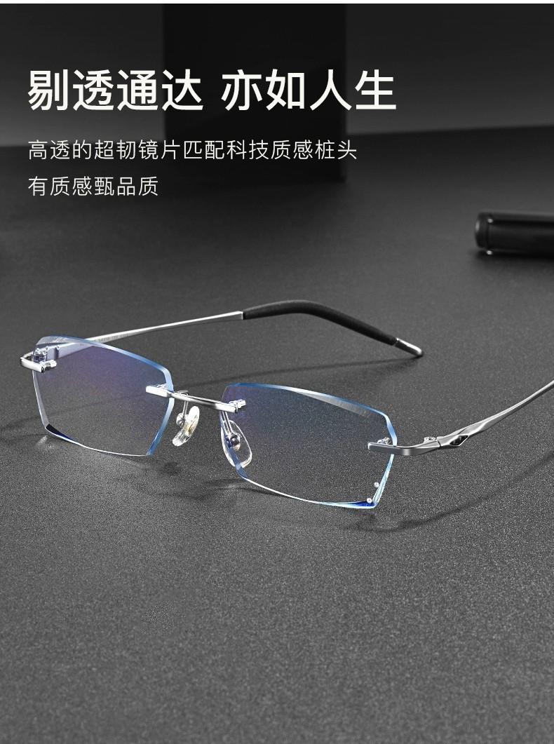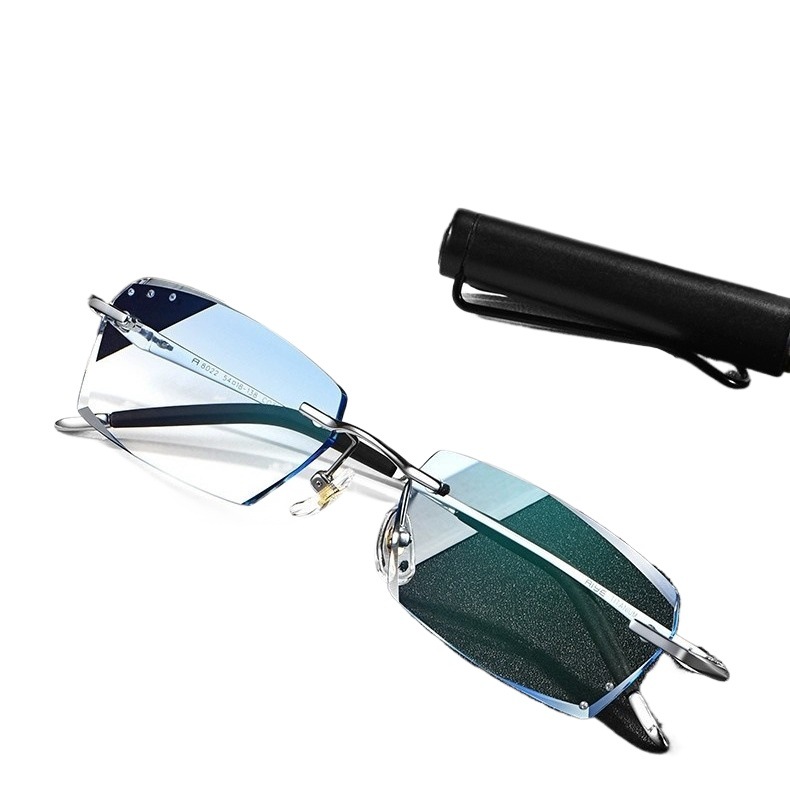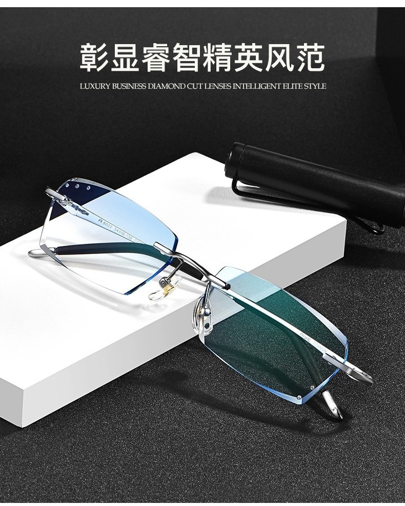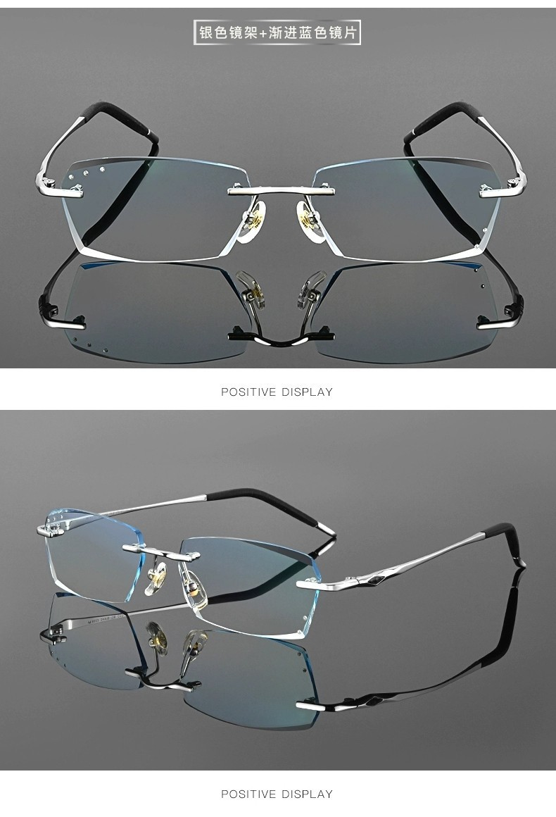 时尚钻石切边老花镜男士近视眼镜银色商务渐进防蓝光老花国风设计