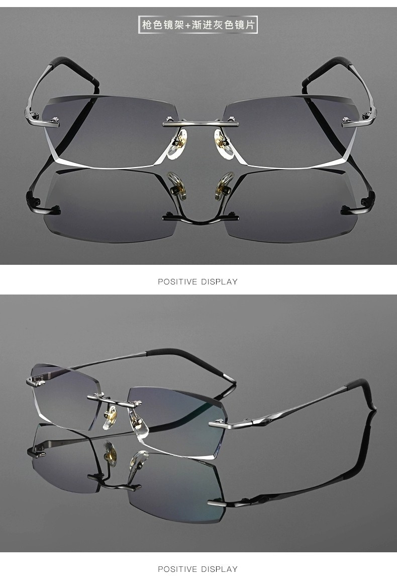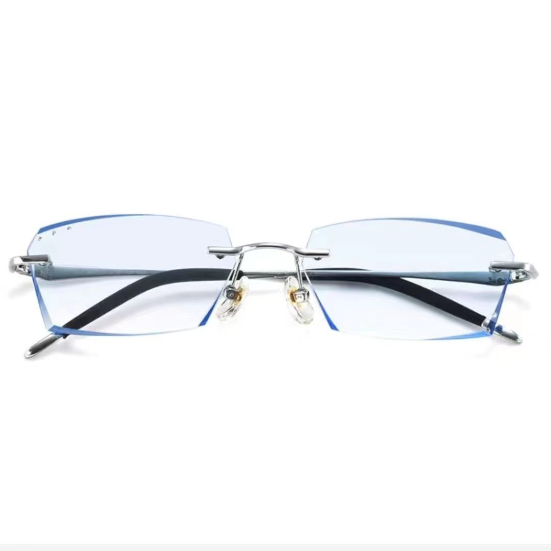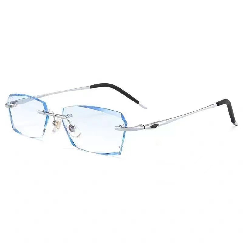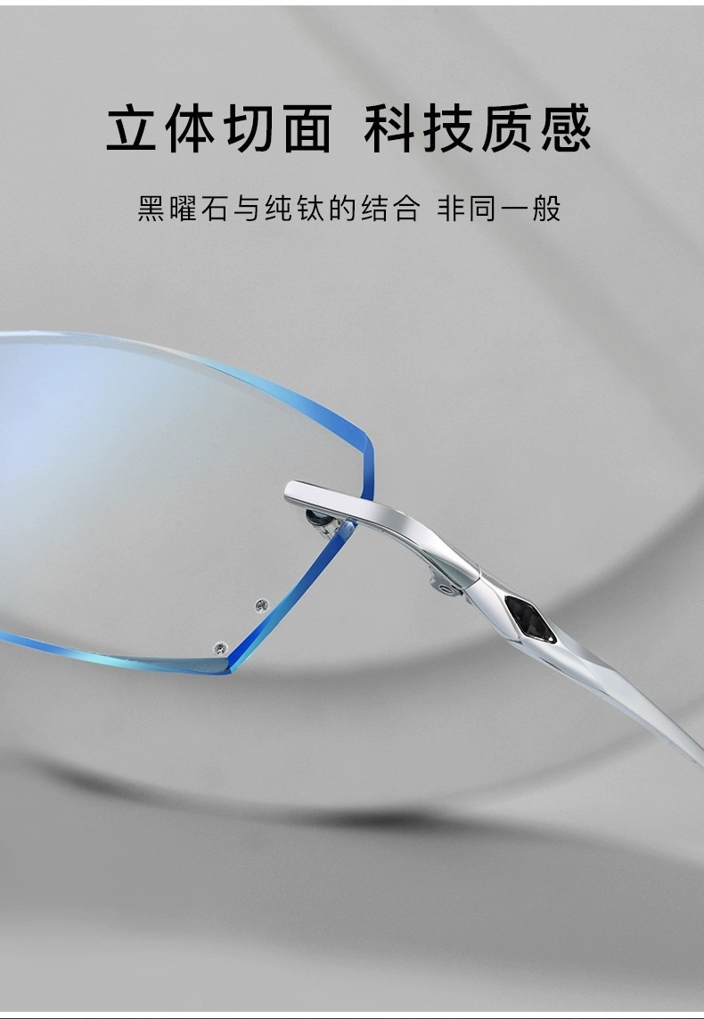时尚钻石切边老花镜男士近视眼镜银色商务渐进防蓝光老花国风设计