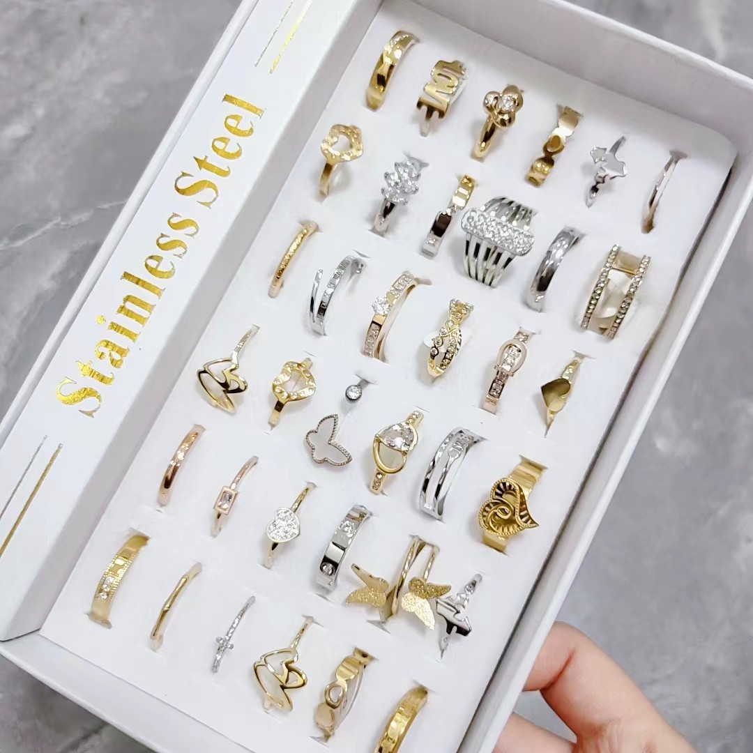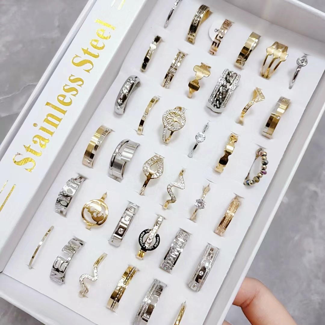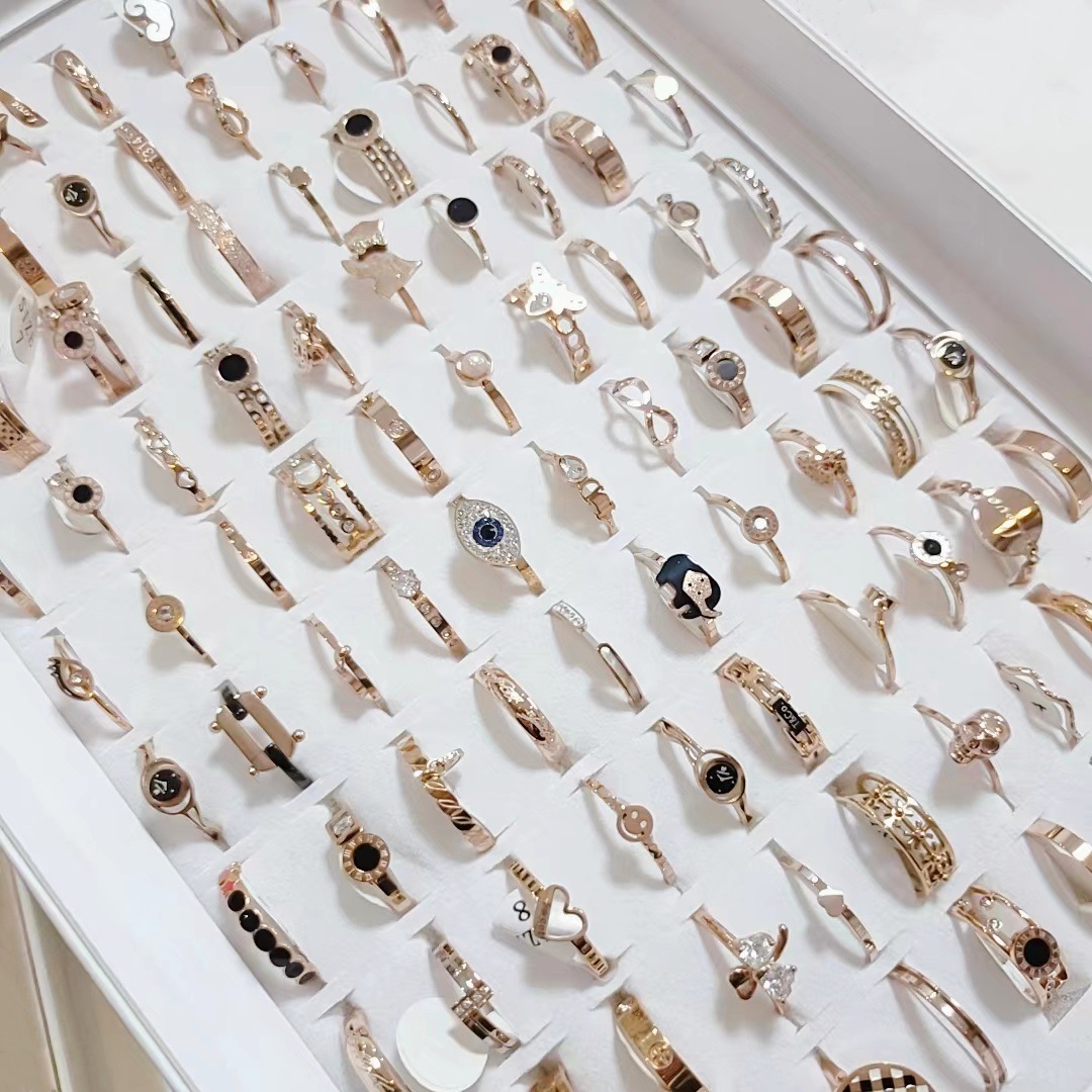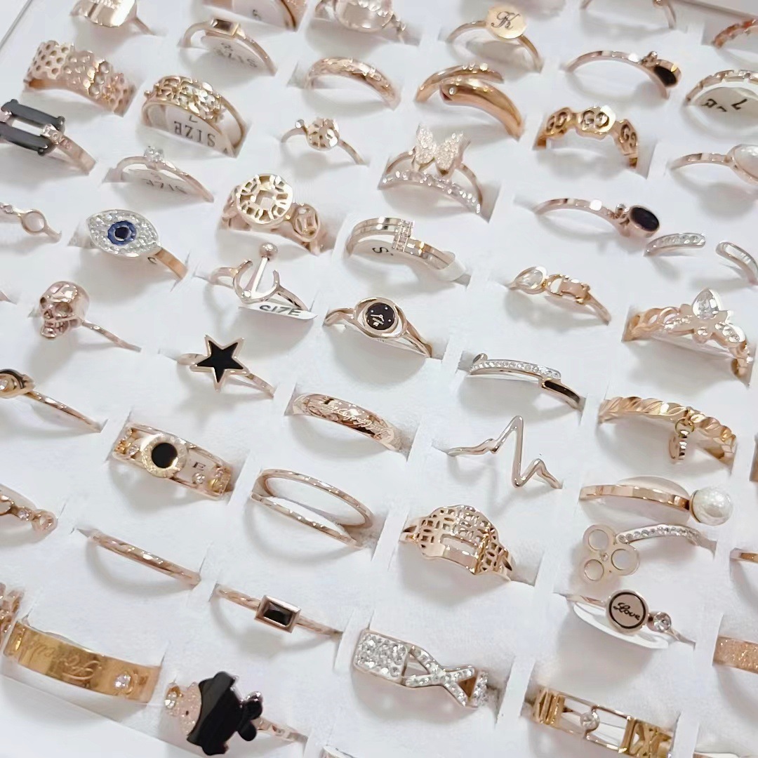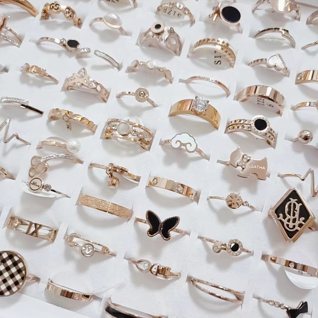 钛钢时尚高品质保色戒指女尾戒 简约不锈钢戒指饰品货源混款批发