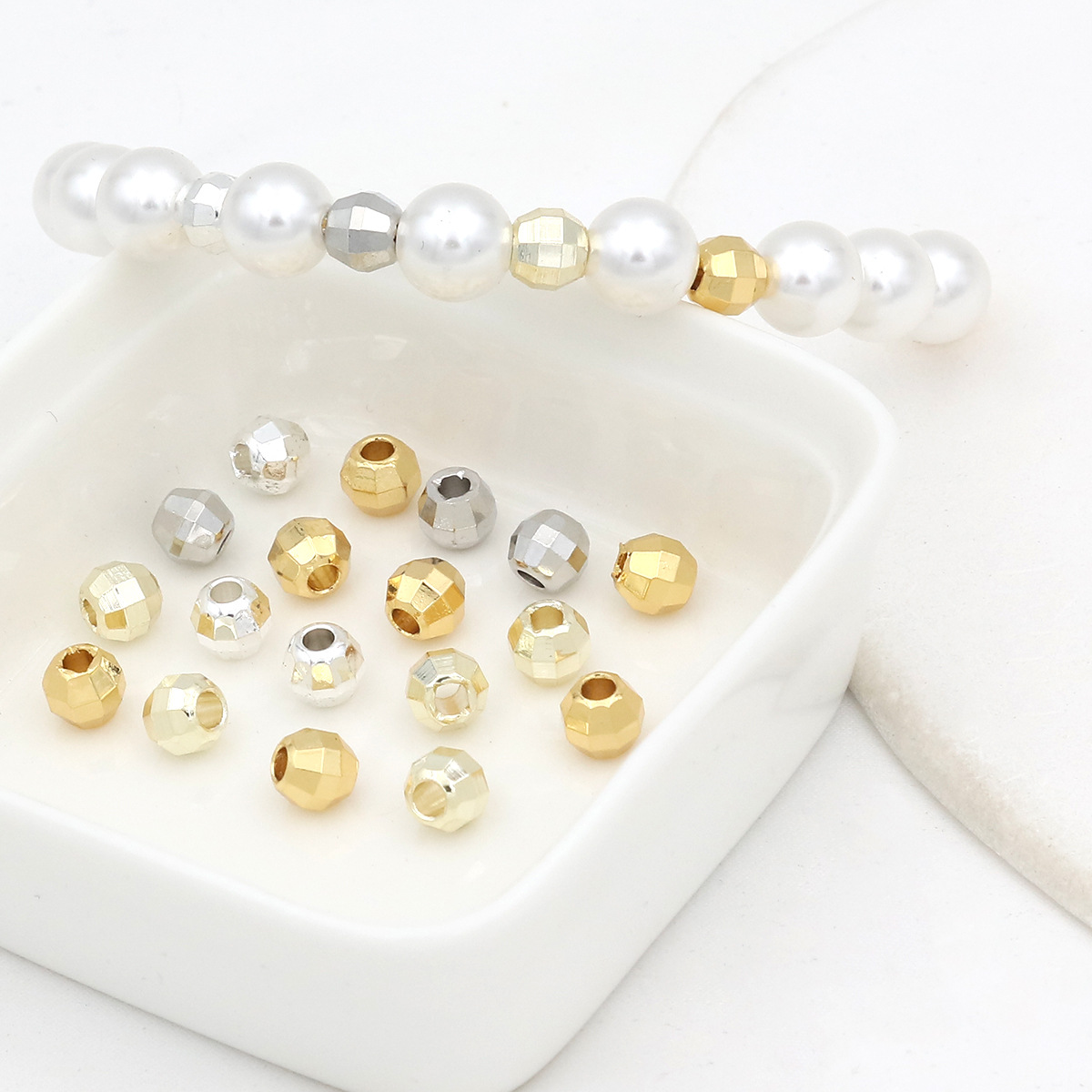 铜镀18K真金菱形镭射花纹珠 diy金珠串珠14K包金保色手链隔珠D13