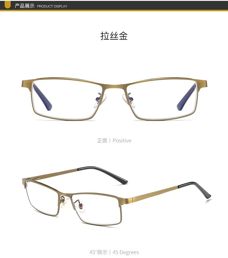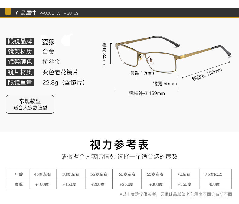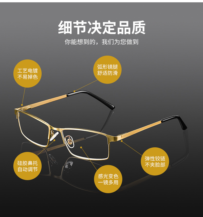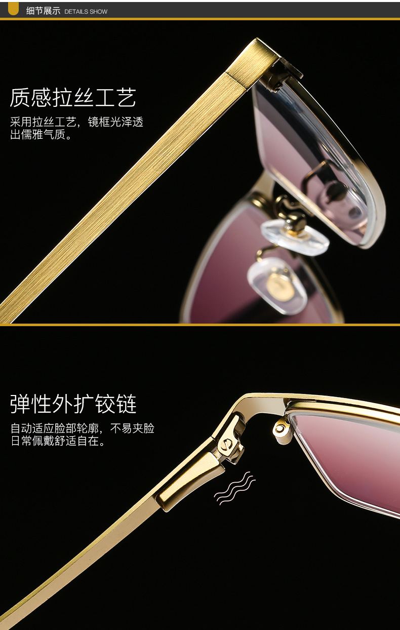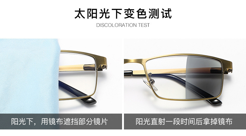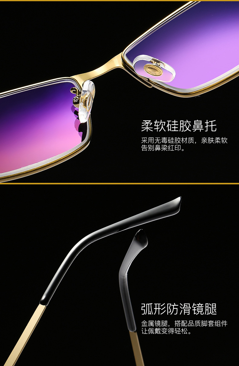 男女金属古铜护眼防蓝光老人眼镜智能变色远近两用多交点老花镜