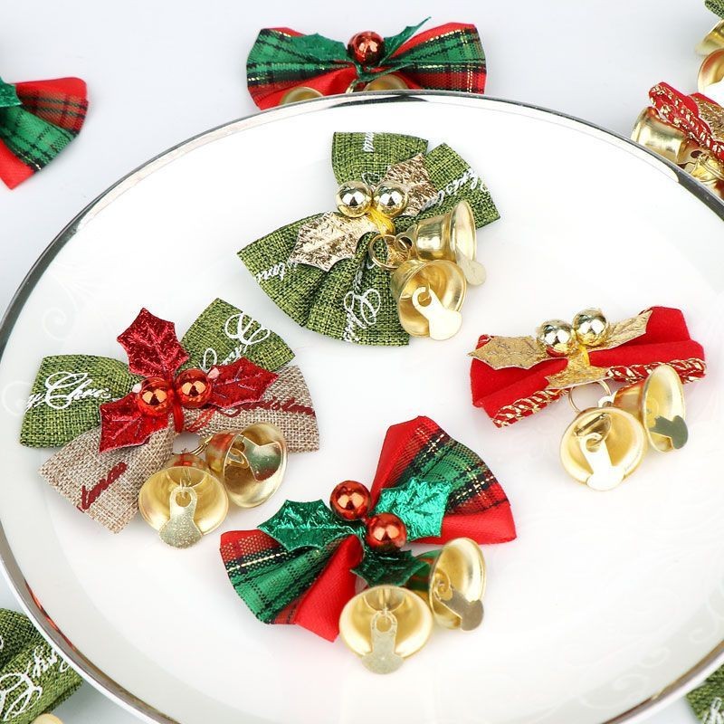 麻布铃铛装饰圣诞树蝴蝶结扎带礼品礼盒发饰手工娃娃玩具材料配件