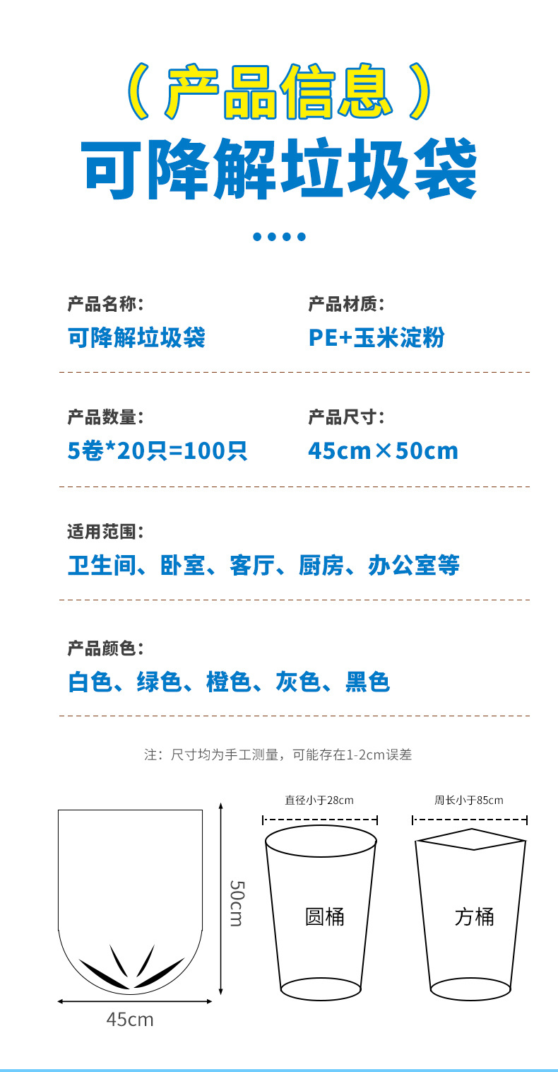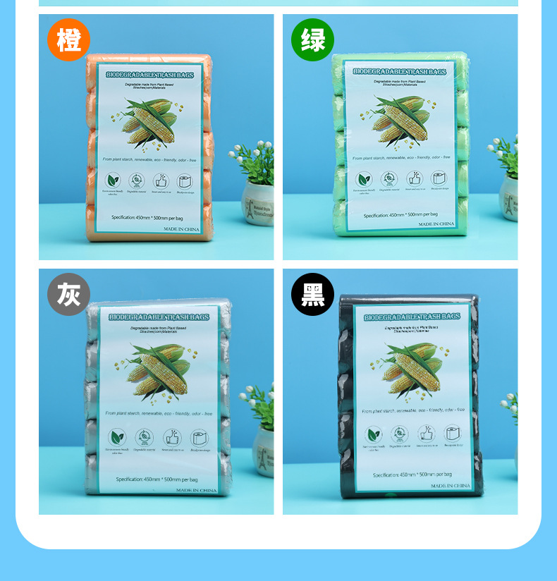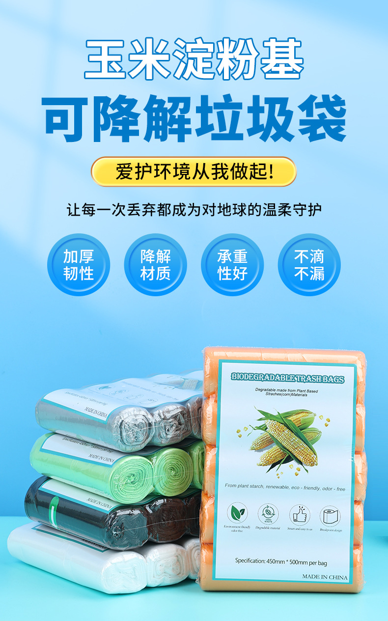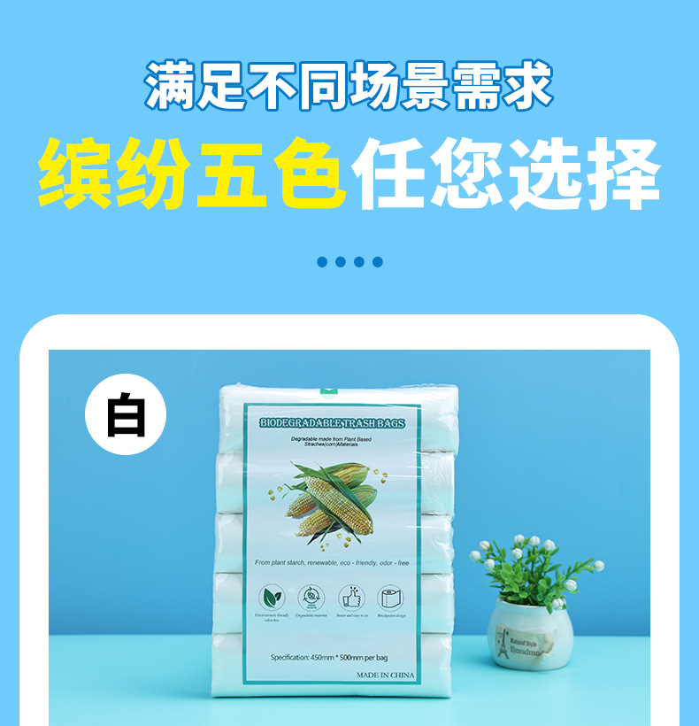 跨境生物可降解垃圾袋加厚加大淀粉基白色清洁袋批发点断式收纳袋