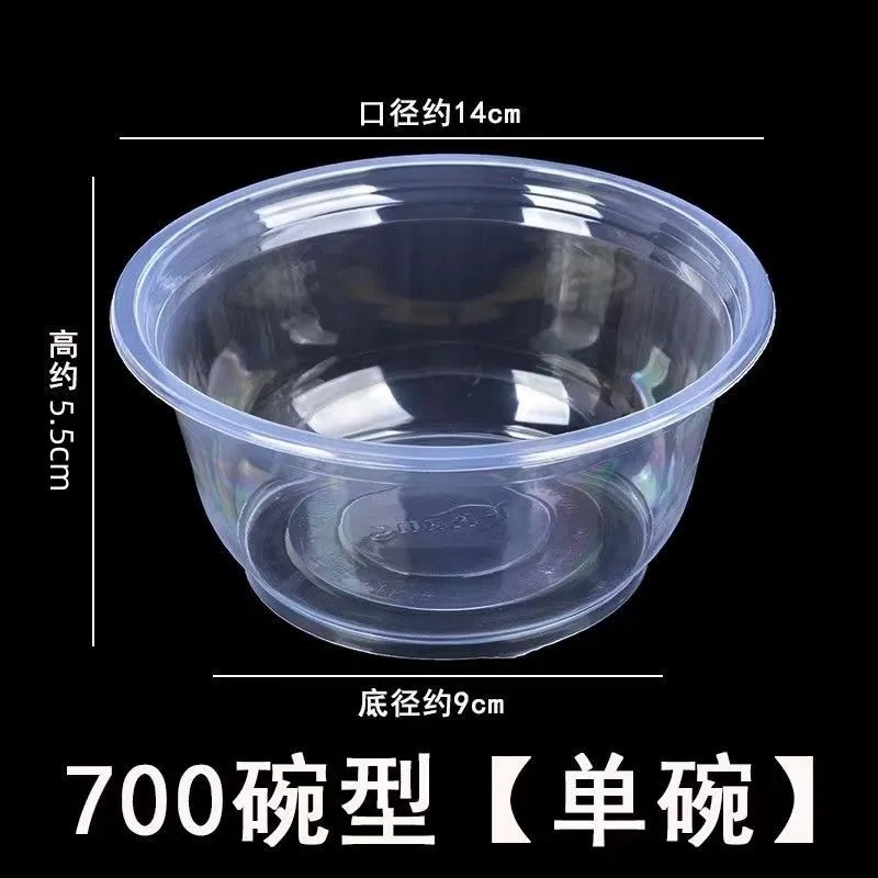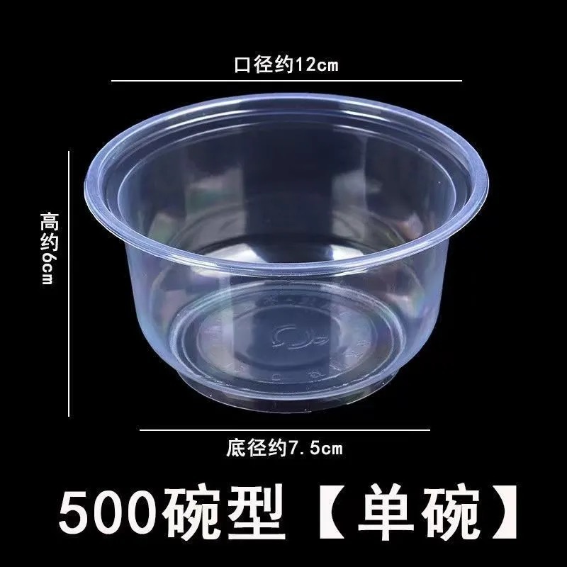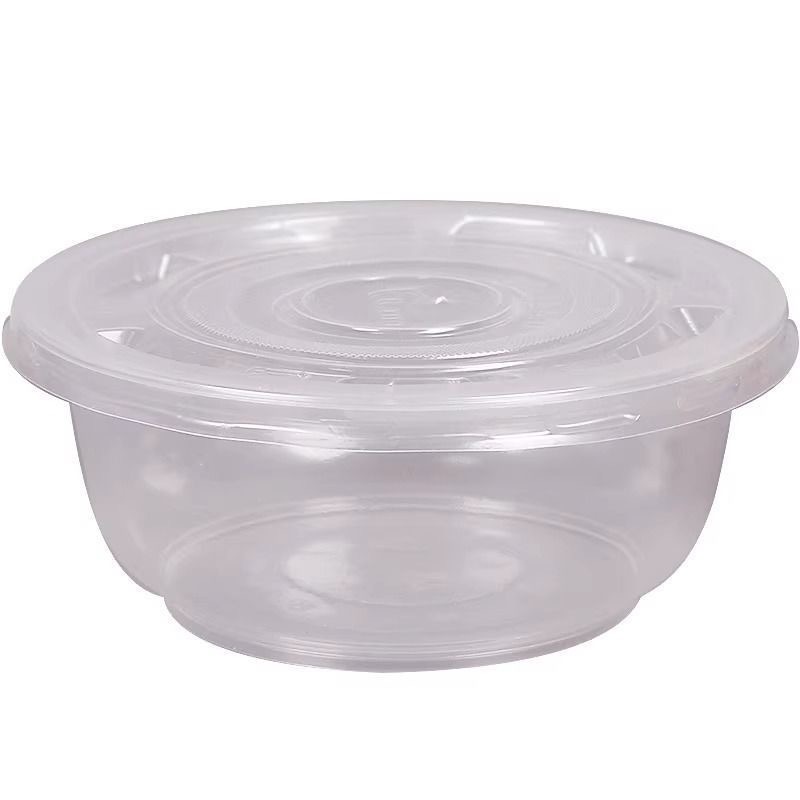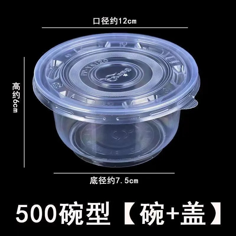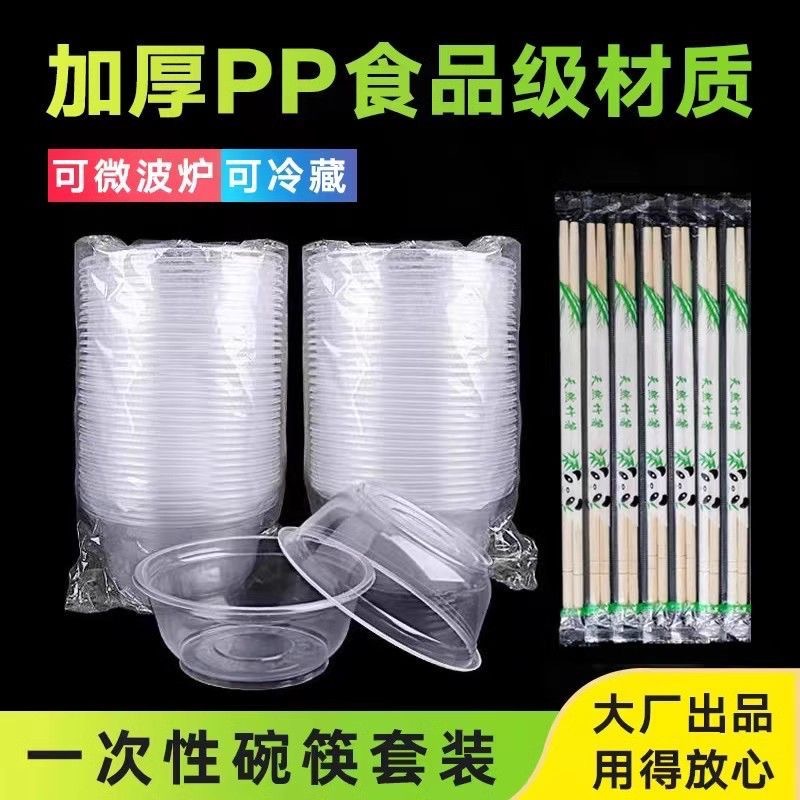 一次性饭碗餐具餐圆形碗碗筷透明加厚塑料碗外卖打包盒带盖整箱