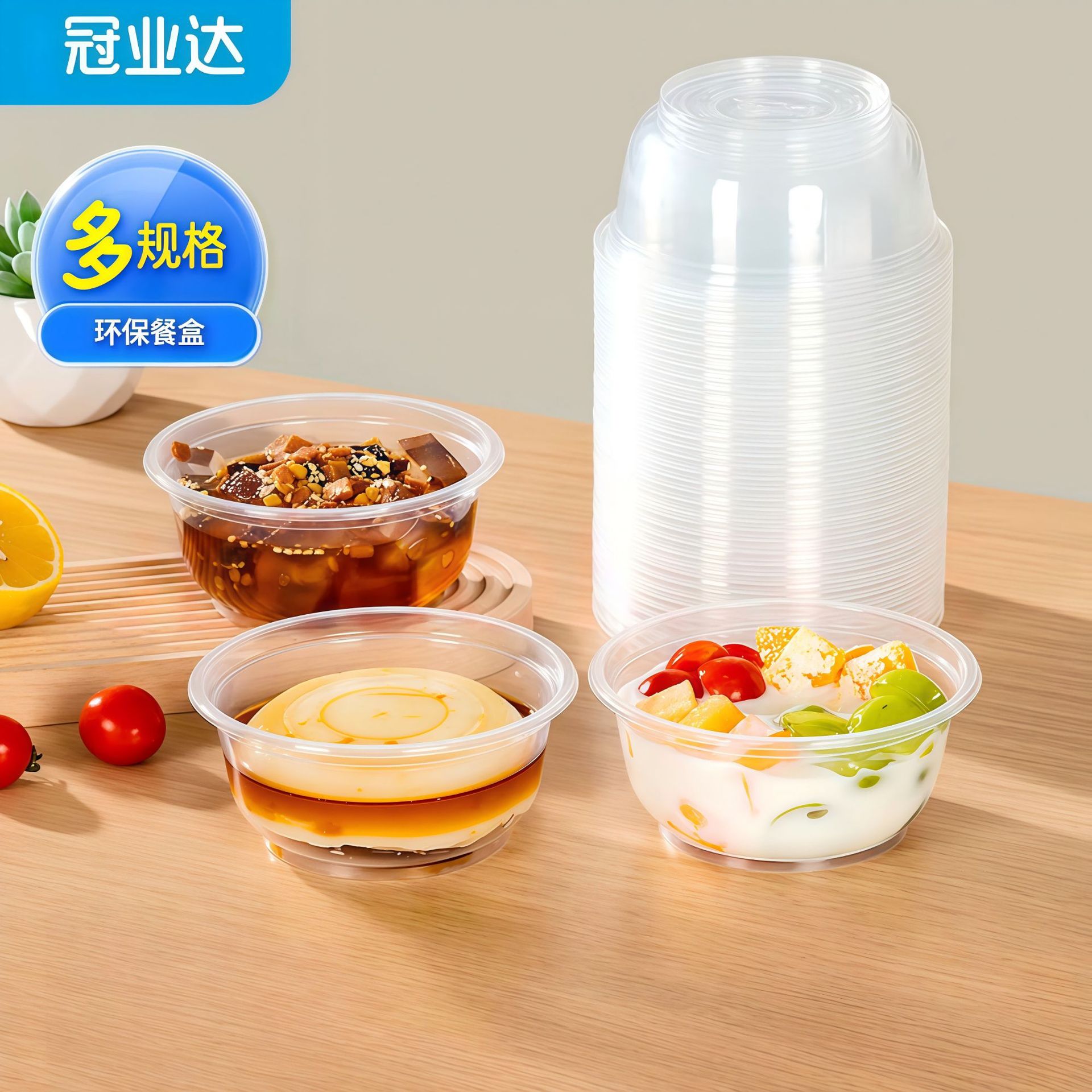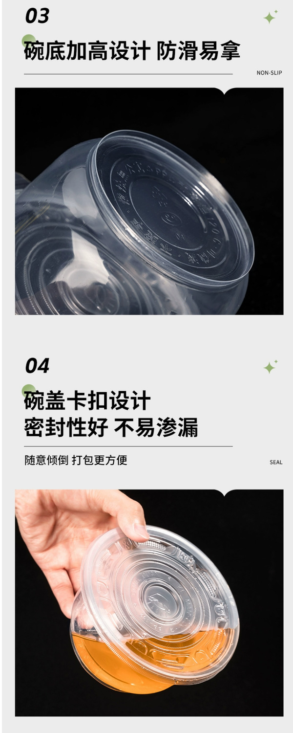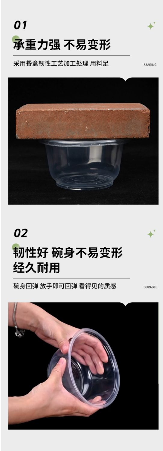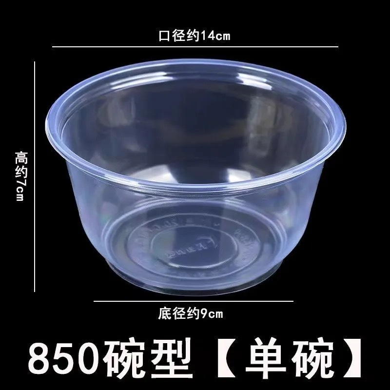 一次性饭碗餐具餐圆形碗碗筷透明加厚塑料碗外卖打包盒带盖整箱