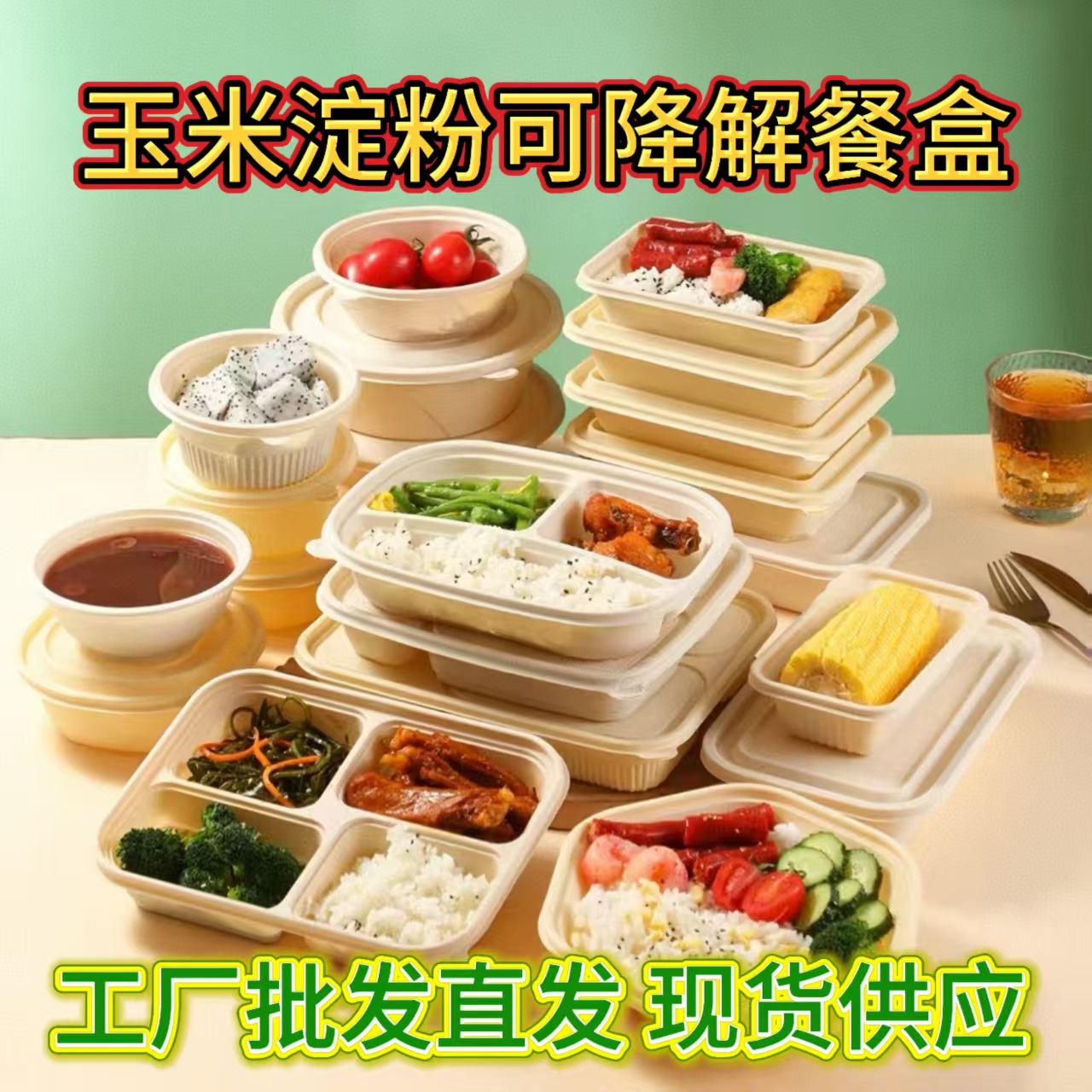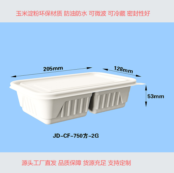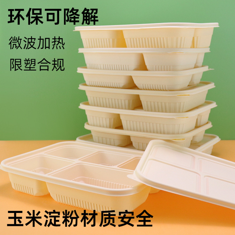 玉米淀粉餐盒外卖打包盒多格盒长方形盒沙拉盒可降解一次性餐盒