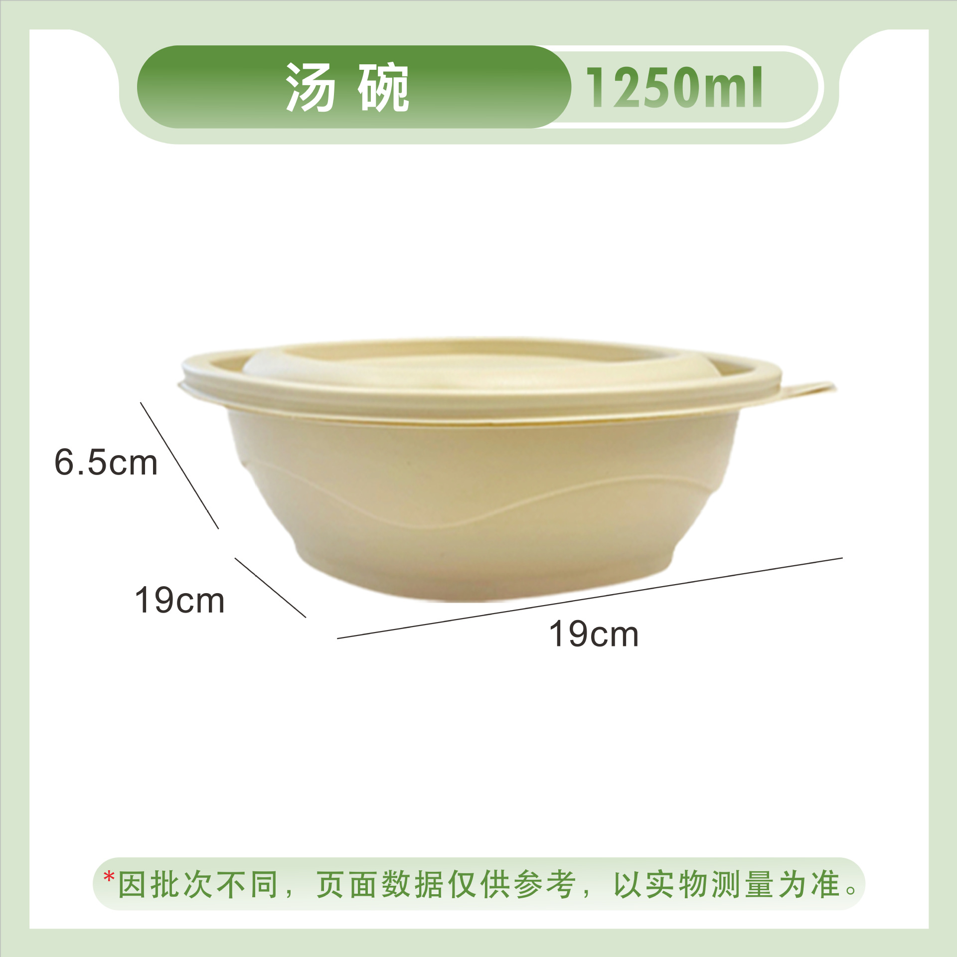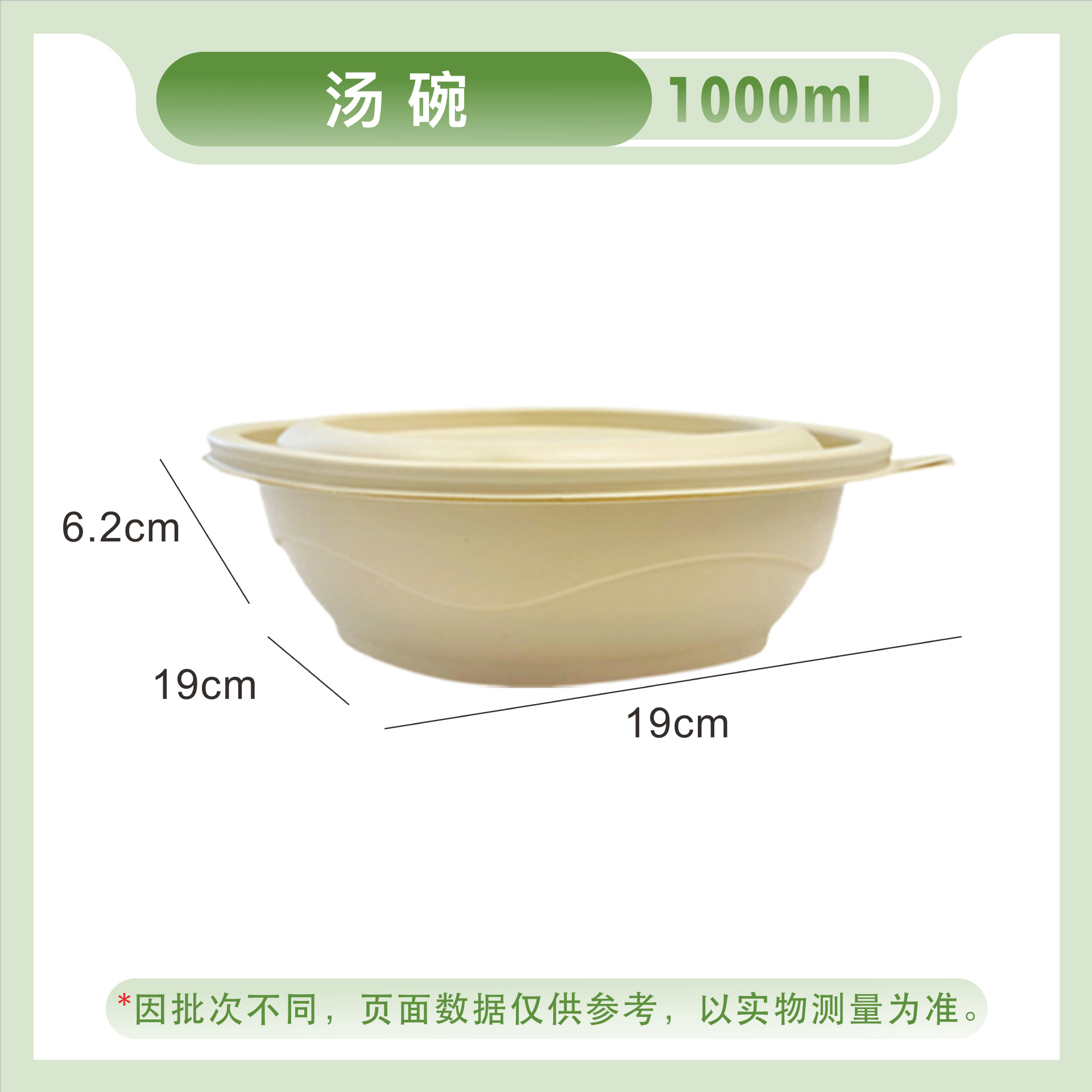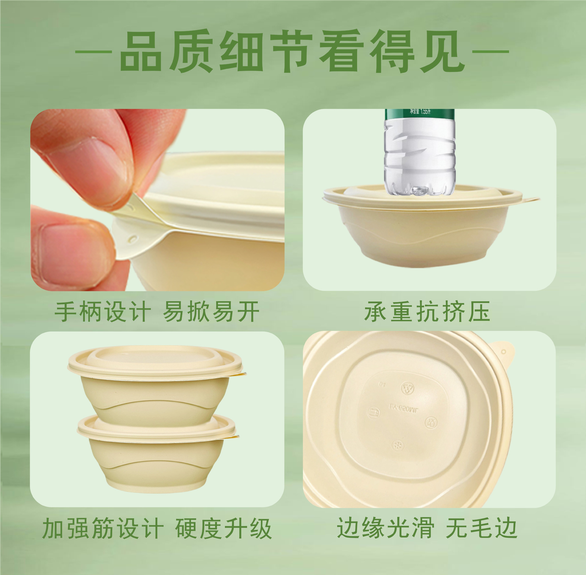 竹粉可降解圆形汤碗一次性打包盒外卖轻食快餐盒粉丝汤面分离碗