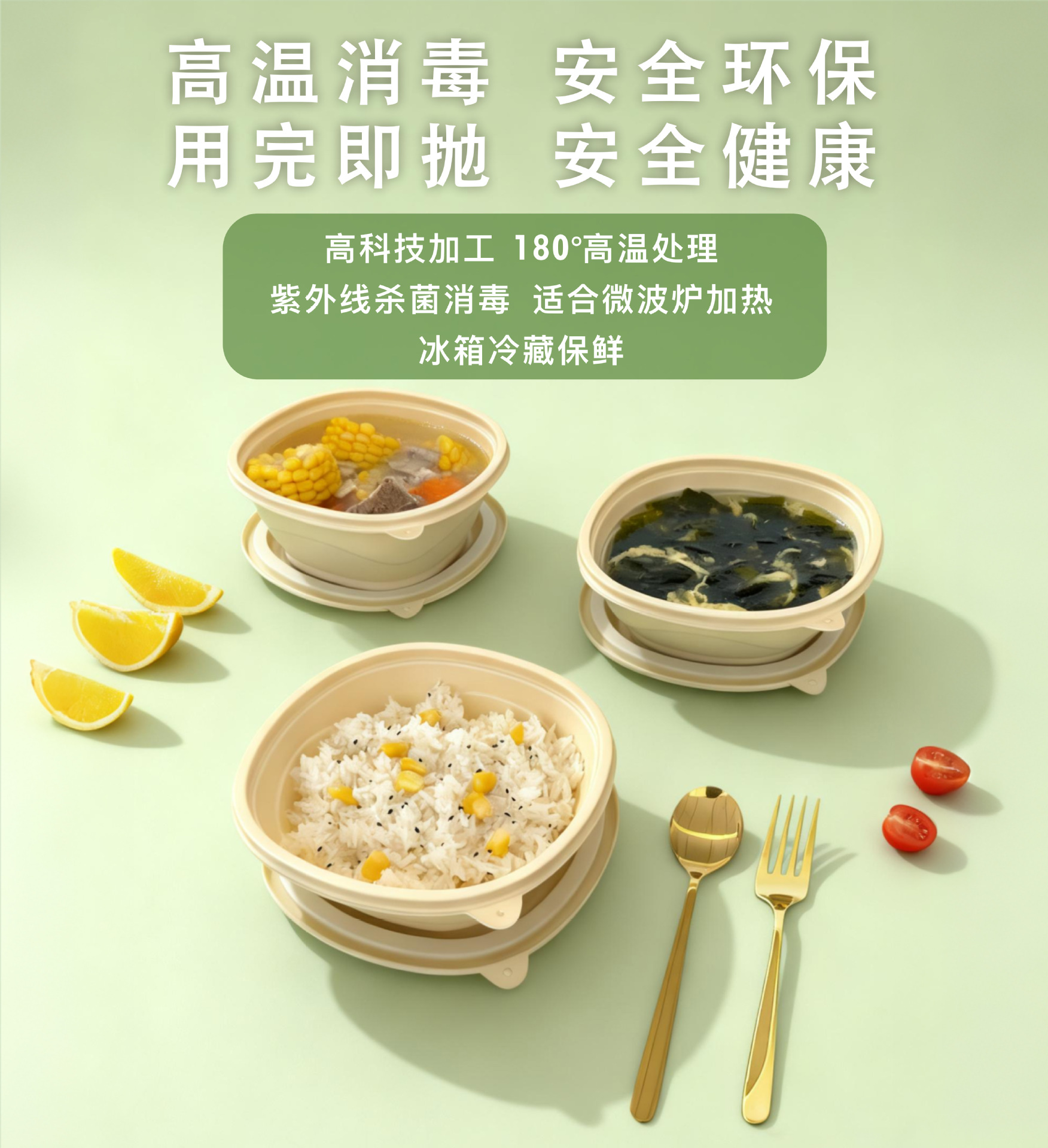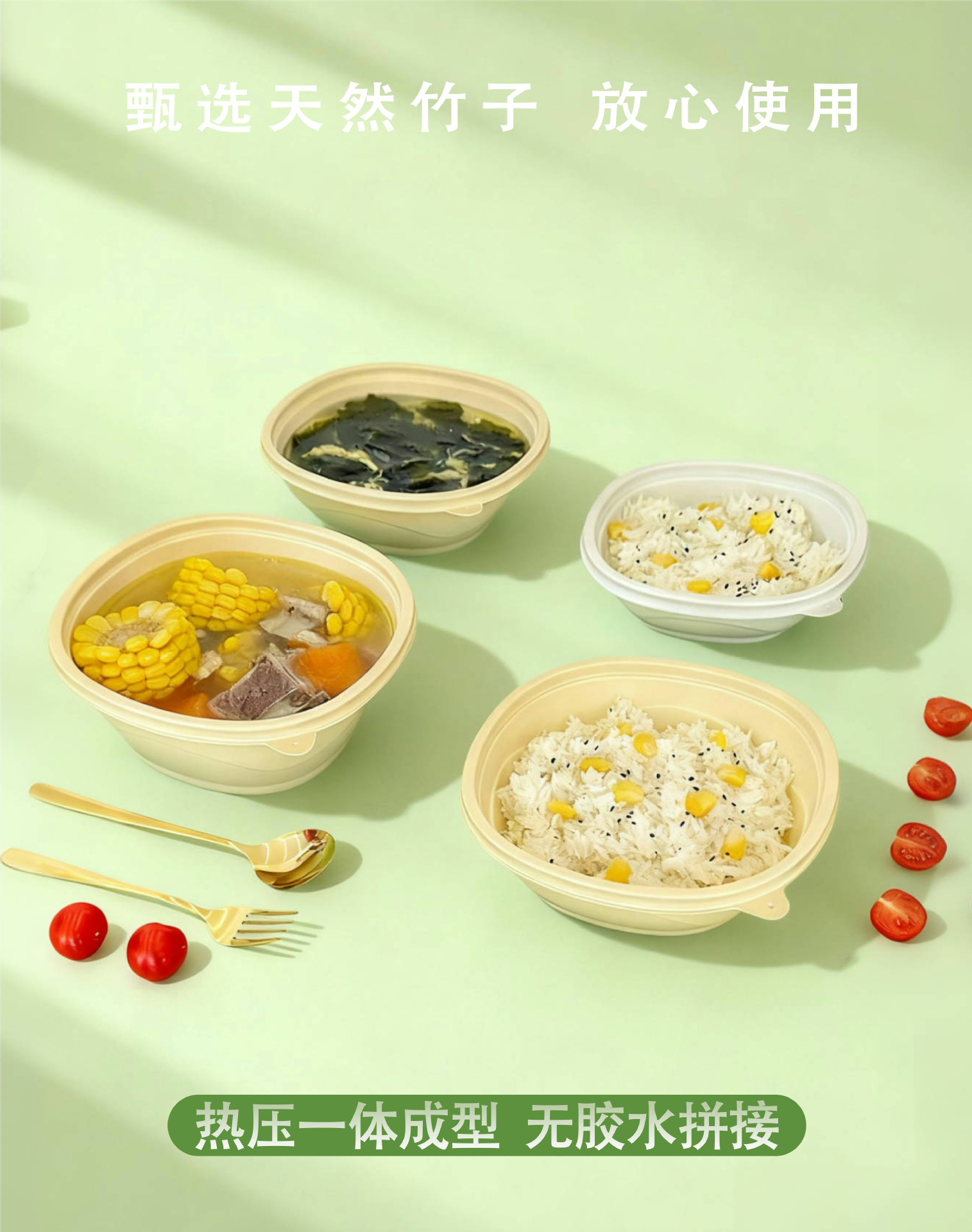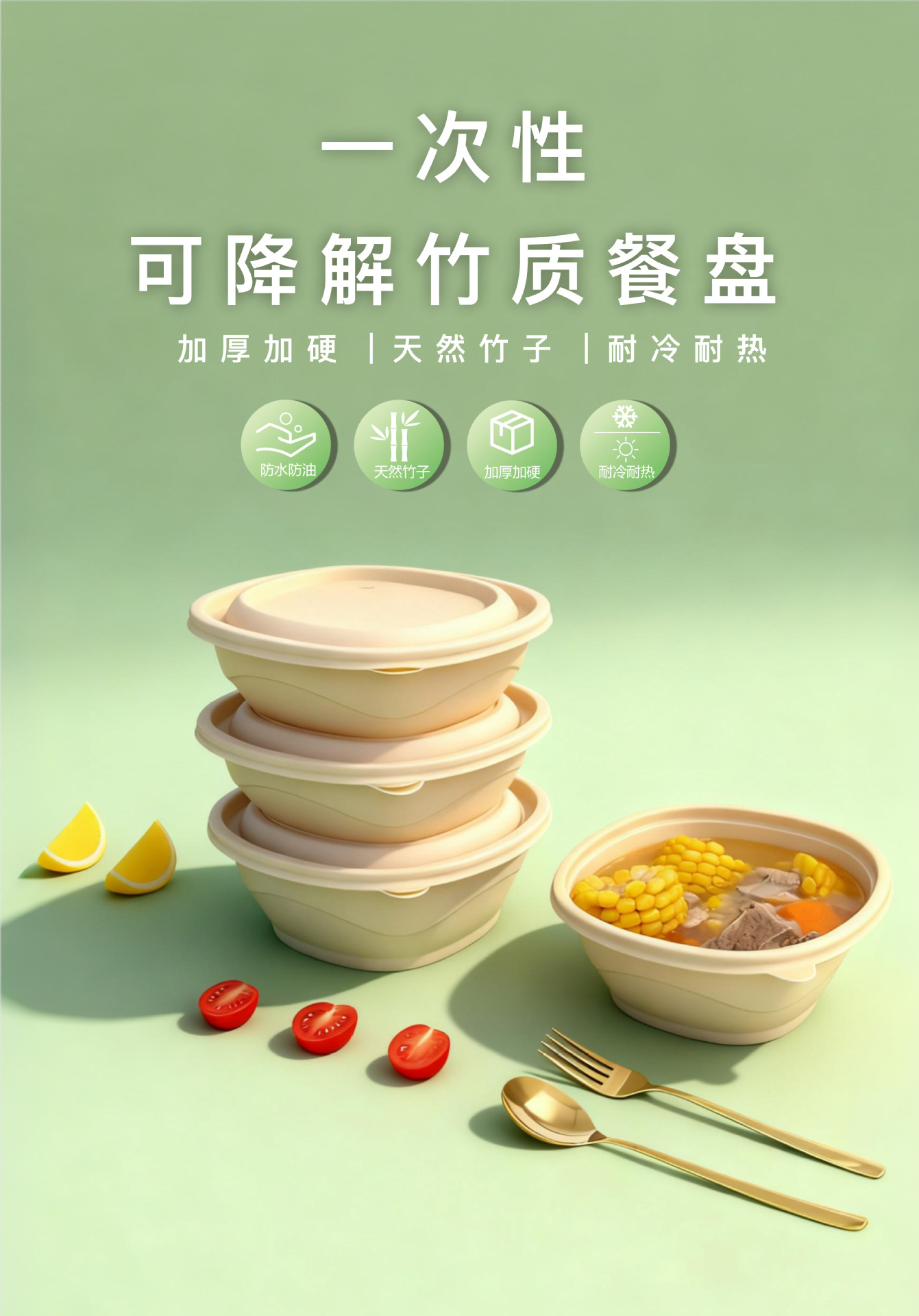 竹粉可降解圆形汤碗一次性打包盒外卖轻食快餐盒粉丝汤面分离碗