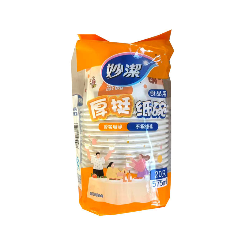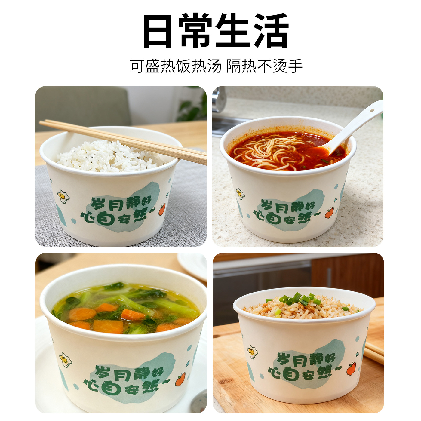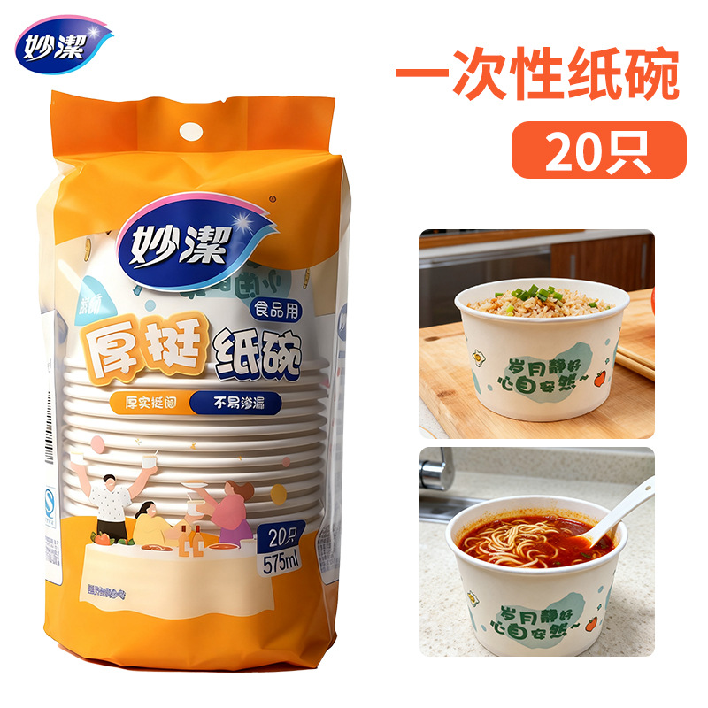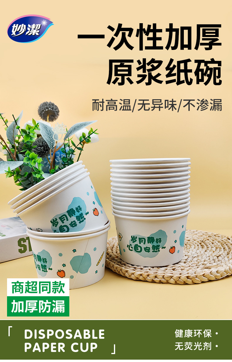 妙洁一次性纸碗圆形餐盒商用加厚打包盒汤碗饭碗无盖家用饭盒餐具