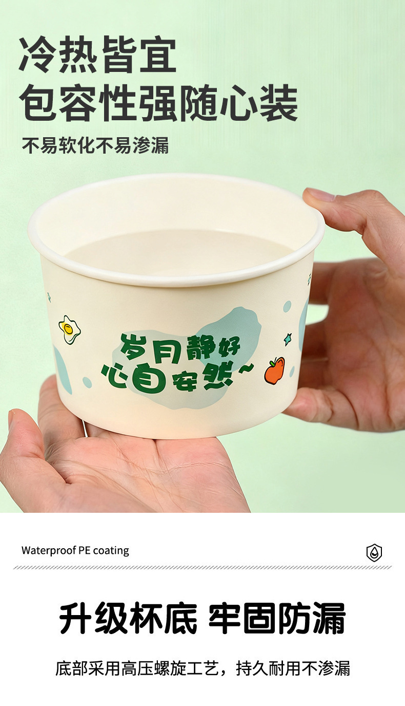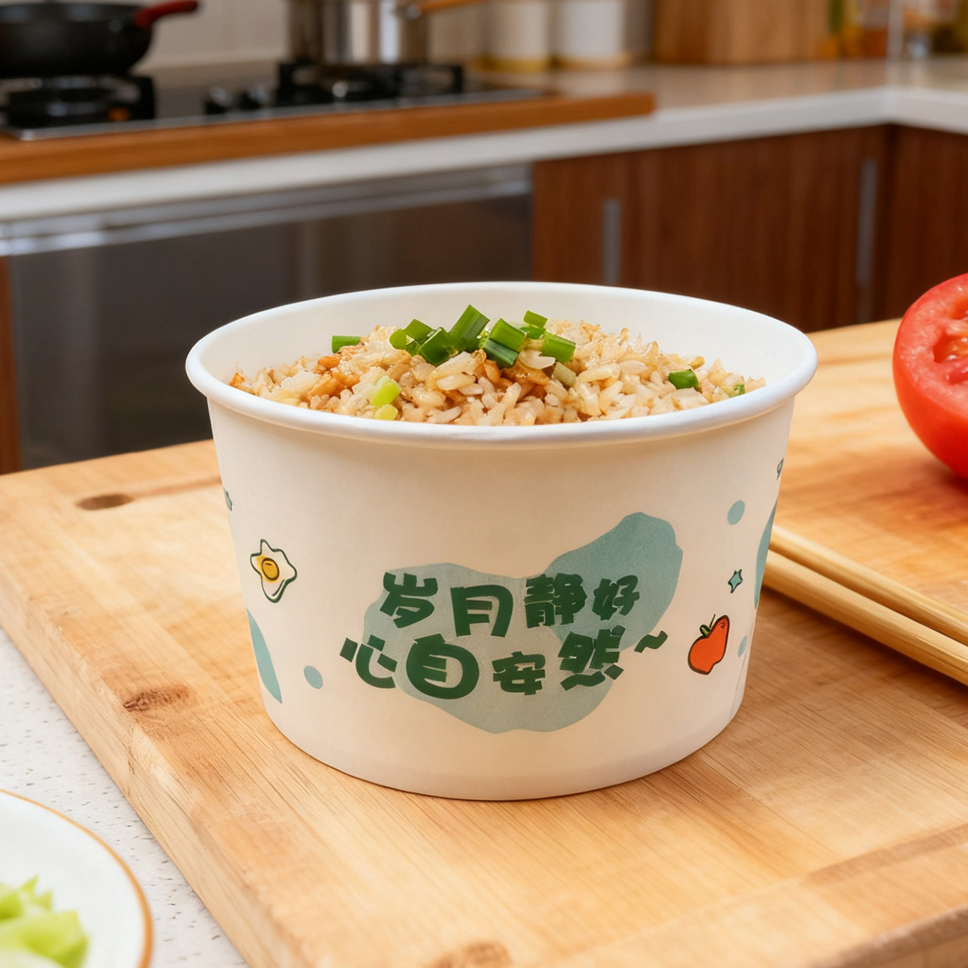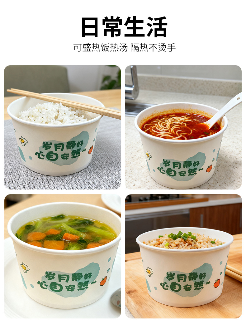 妙洁一次性纸碗圆形餐盒商用加厚打包盒汤碗饭碗无盖家用饭盒餐具