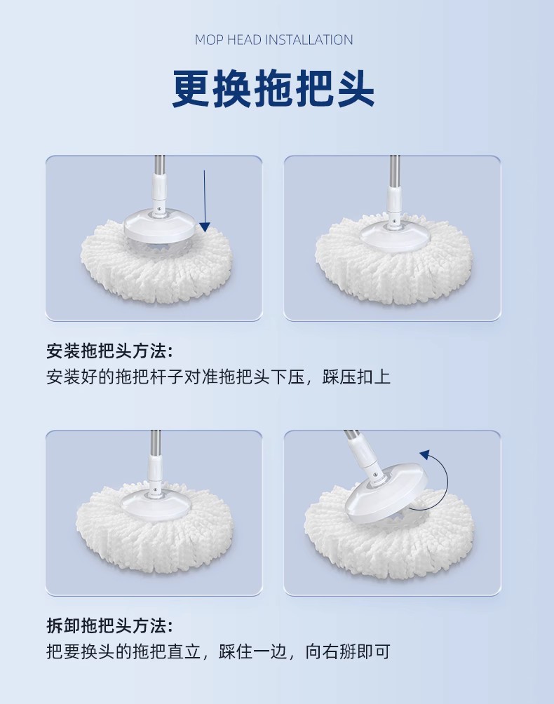 【好媳妇-配件旋转拖把拖头】白色正品超细纤维替换头旋转拖把头