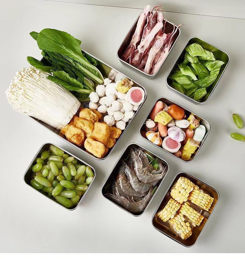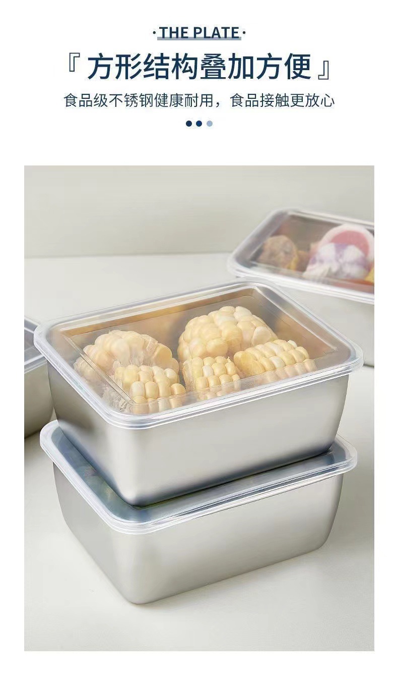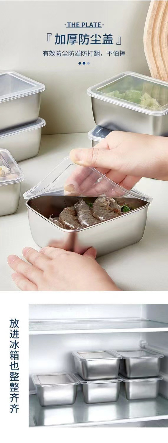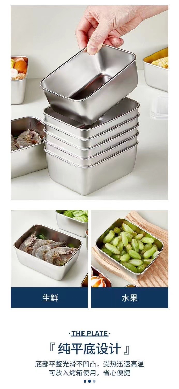 不锈钢日式密封分装盒带盖食品级保鲜盒方形便当盒家用商用味盒
