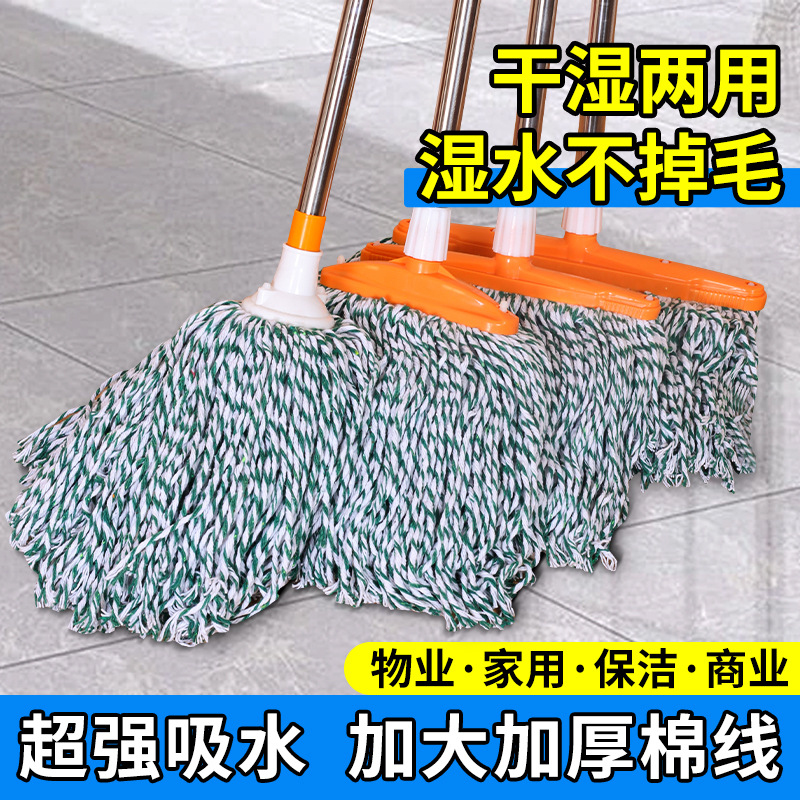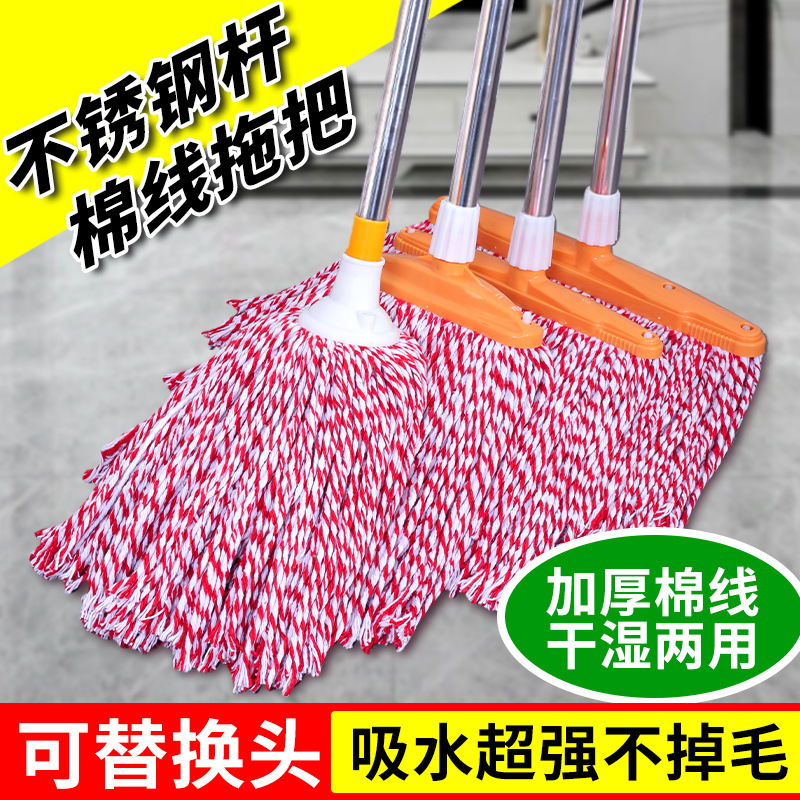 棉线拖把不锈钢杆普通拖布小号通用擦地宽头耐用浴室老款地拖把