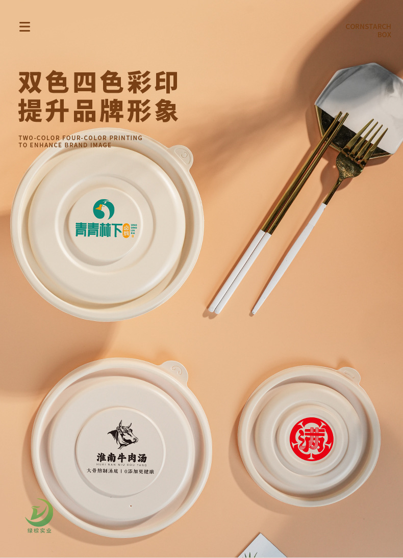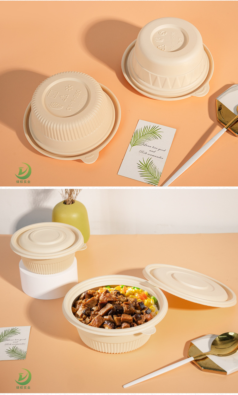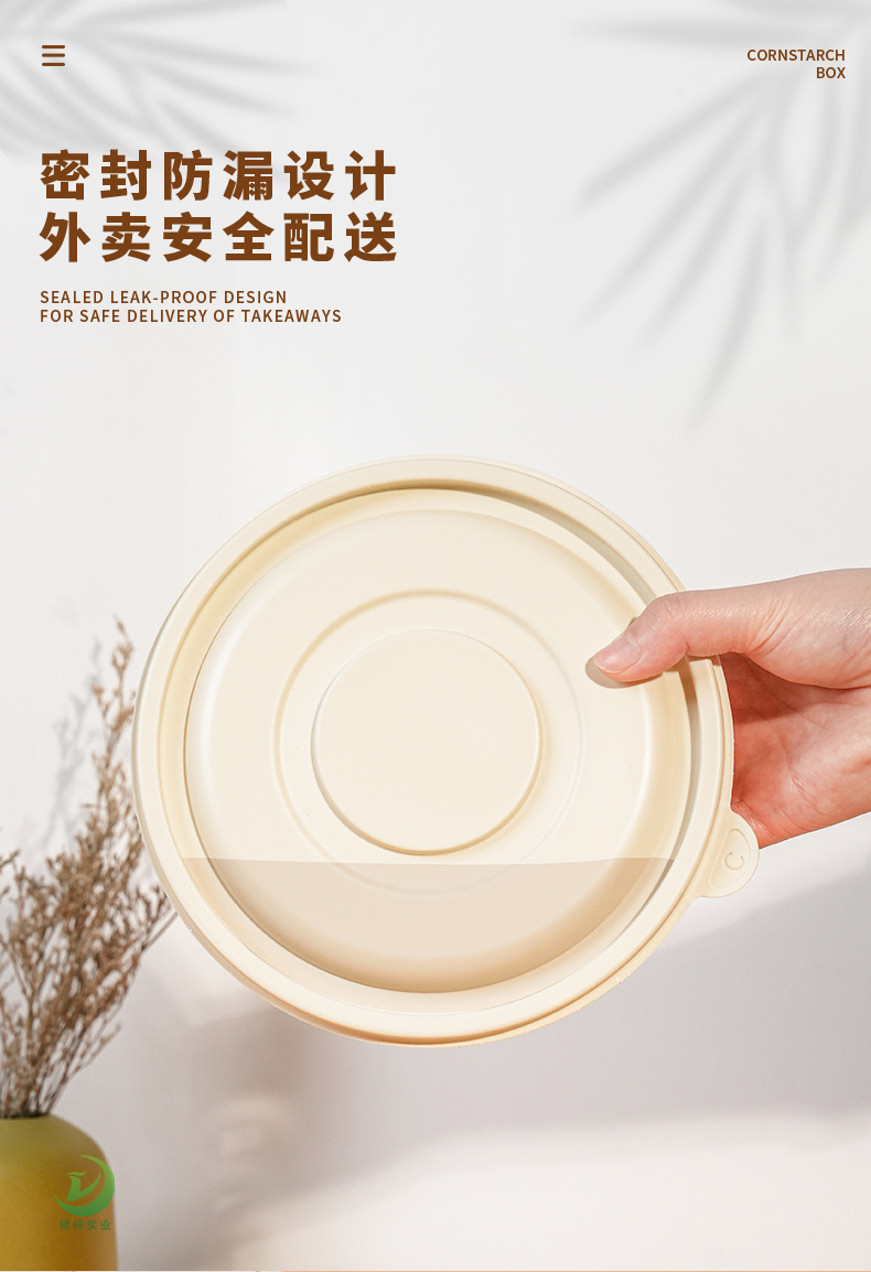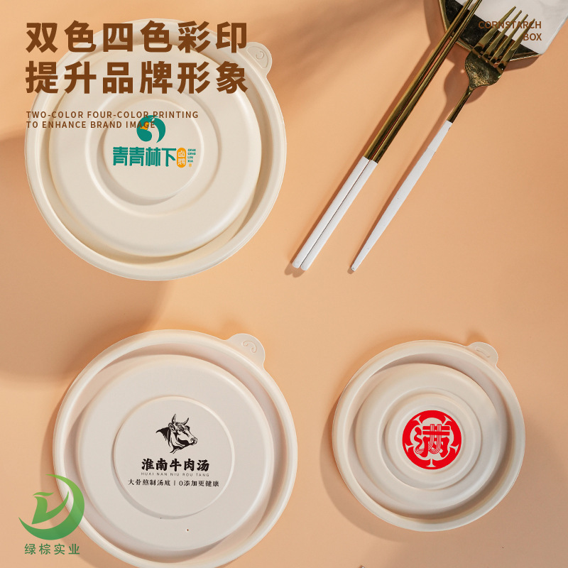 圆形打包碗玉米淀粉餐盒可印刷外卖汤碗可降解一次性环保餐具碗