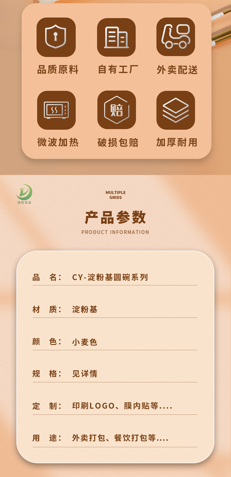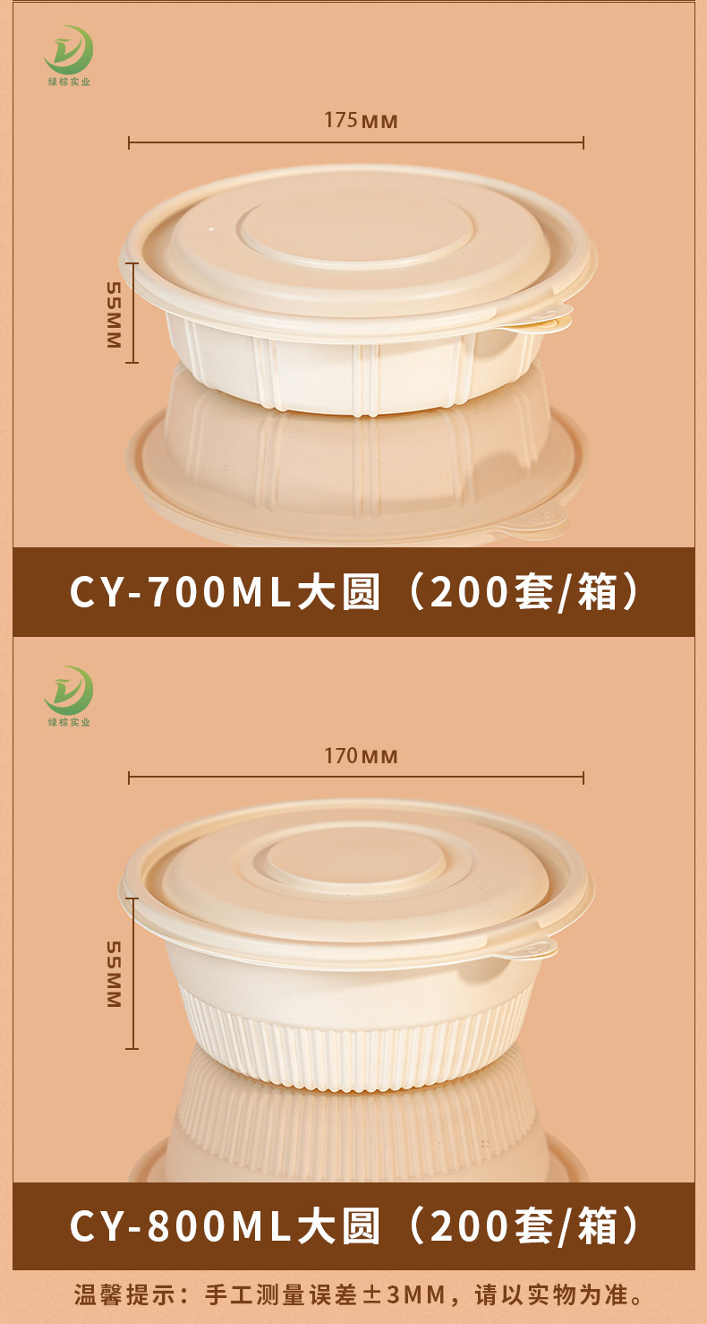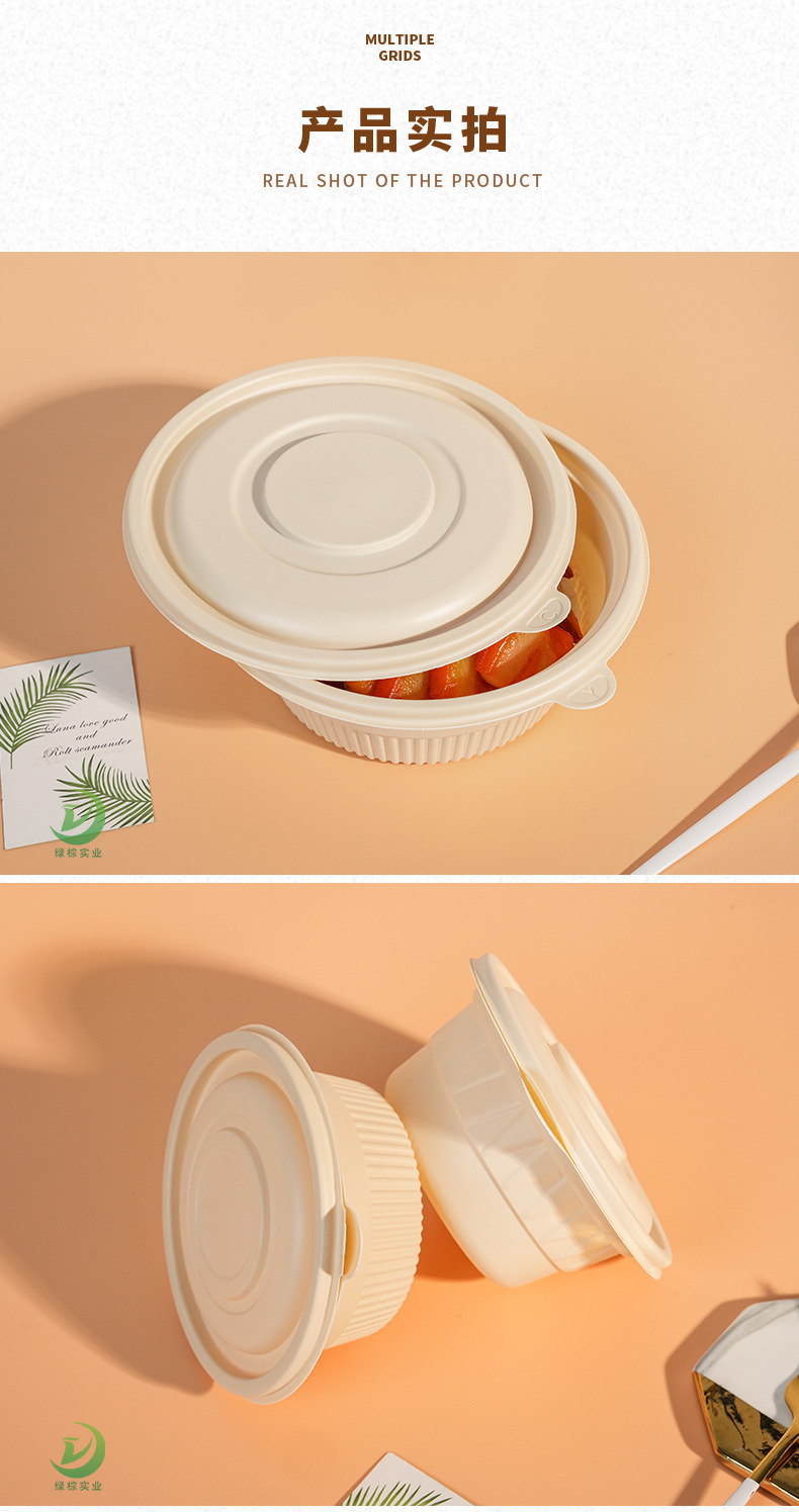 圆形打包碗玉米淀粉餐盒可印刷外卖汤碗可降解一次性环保餐具碗
