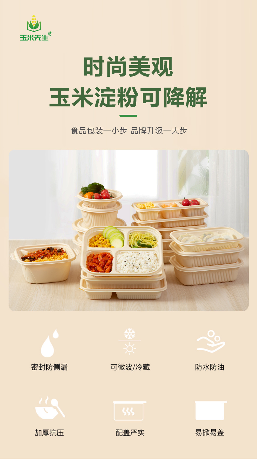 一次性可降解玉米淀粉餐盒环保三格四格外卖打包盒五格六格便当盒