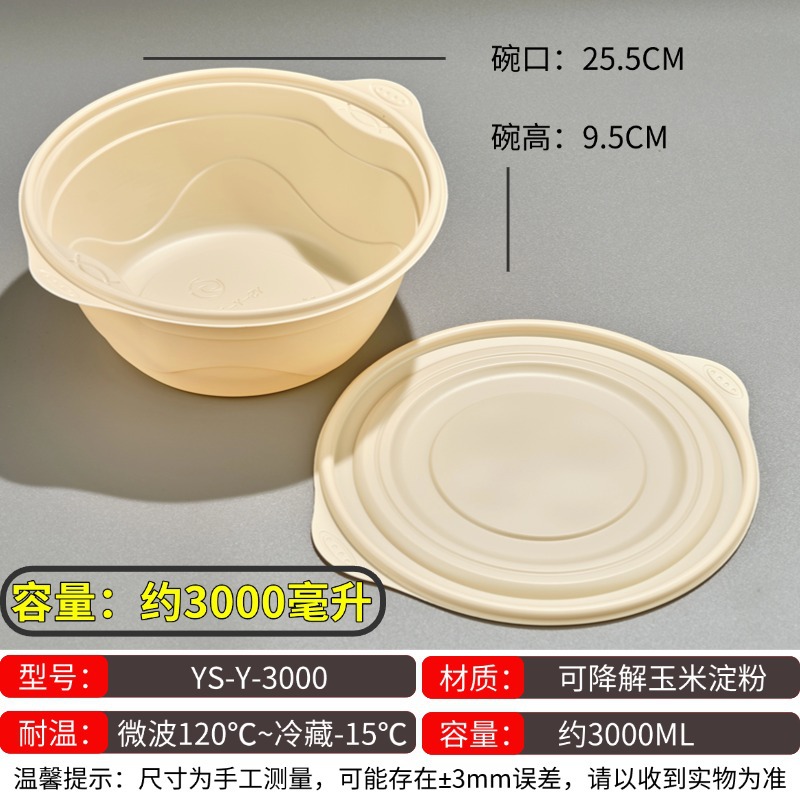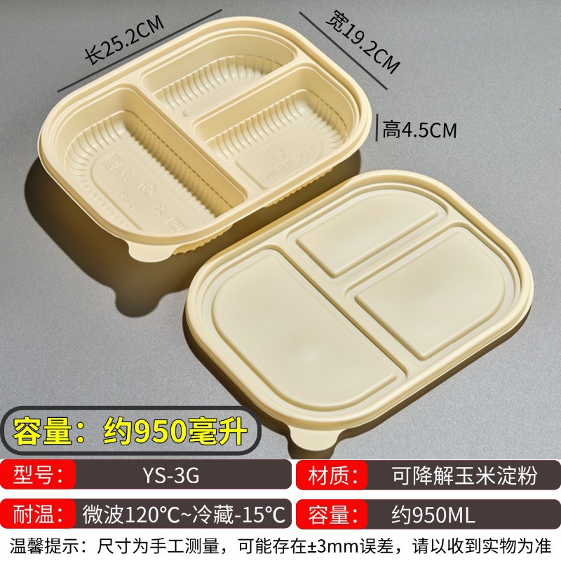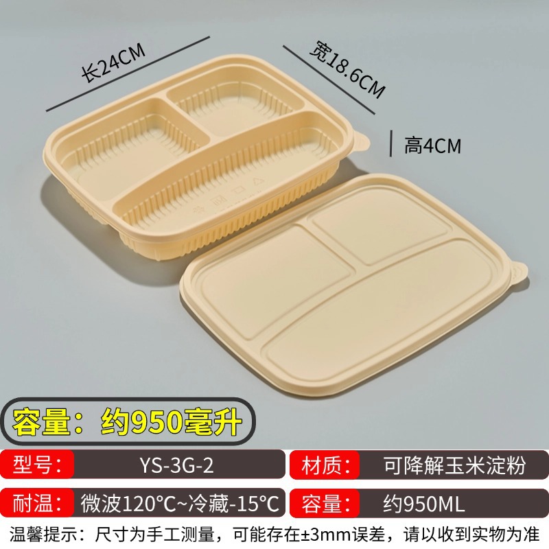 玉米淀粉一次性餐盒可降解饭盒加厚快餐外卖打包盒圆碗长方形分格
