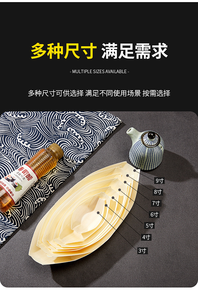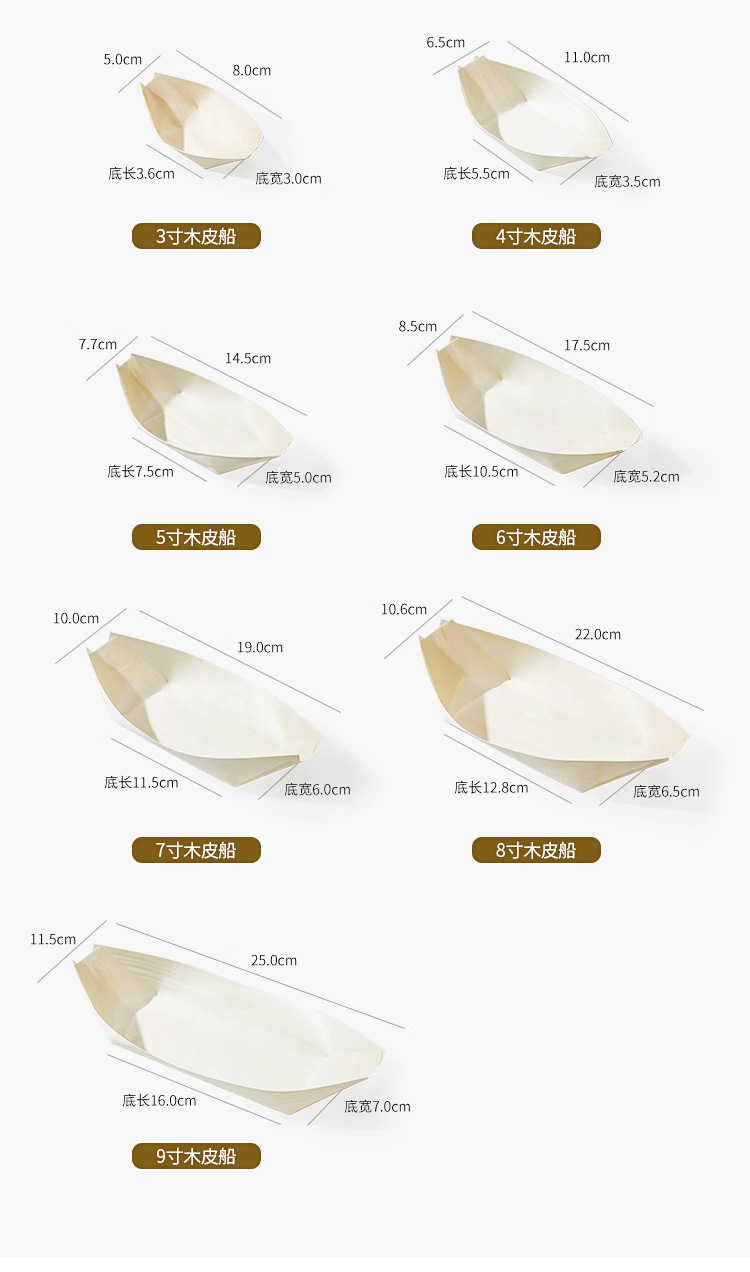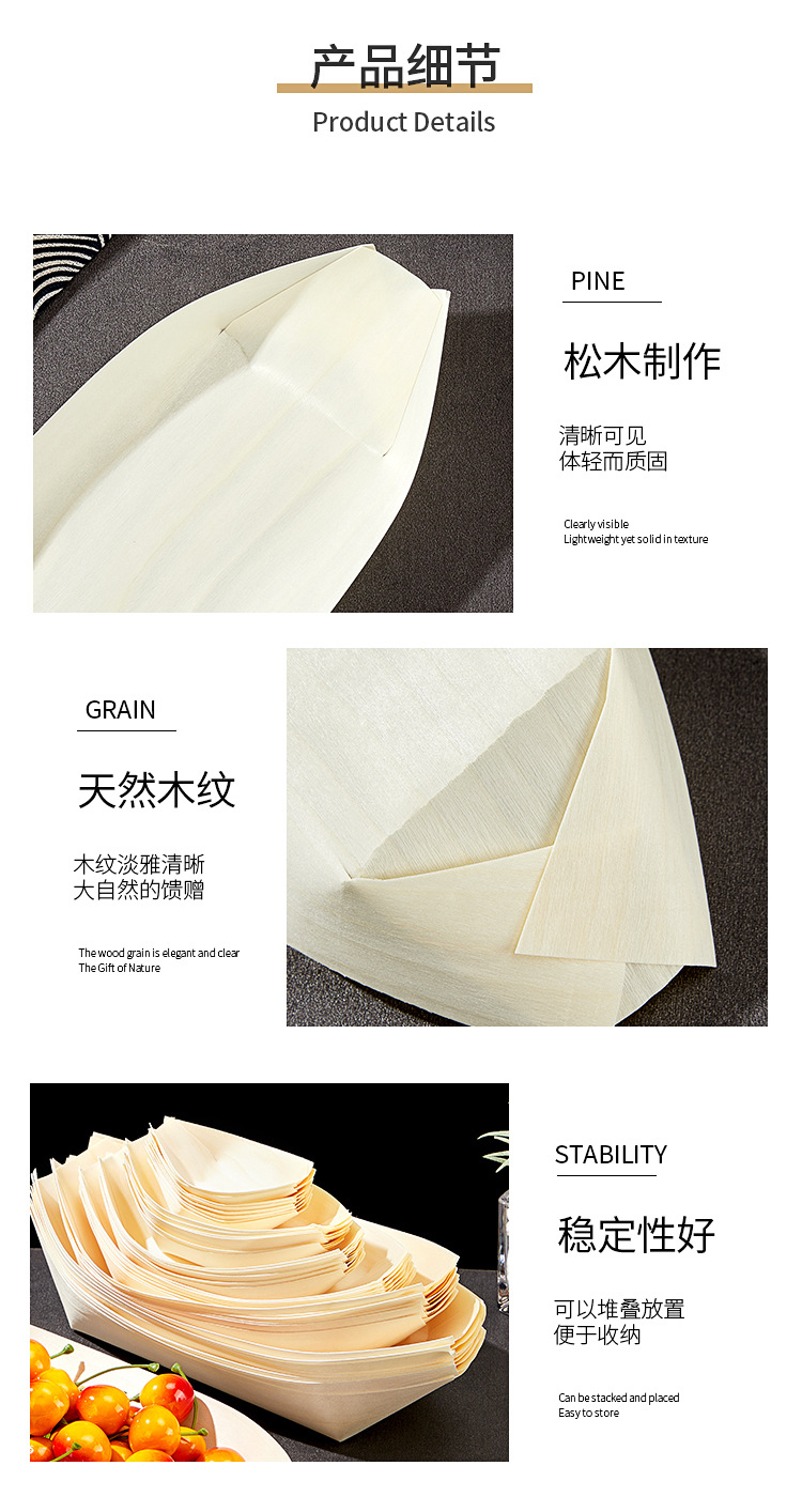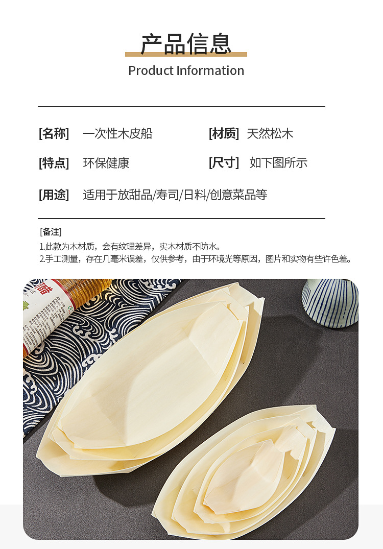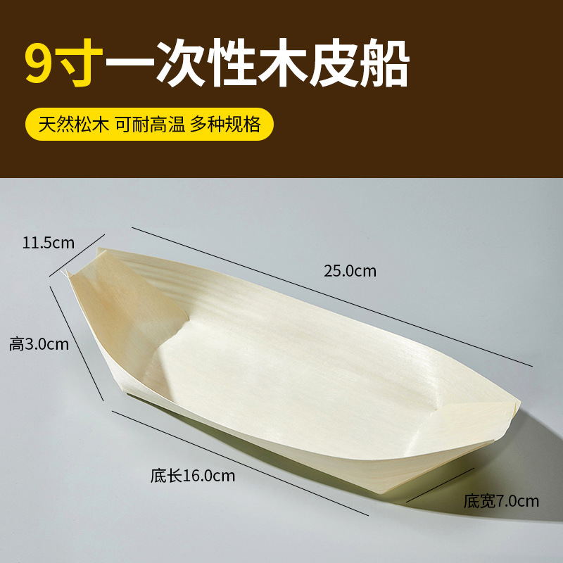 一次性木皮船点心打包盒木舟木船杨木日料餐厅寿司船餐具厂家批发