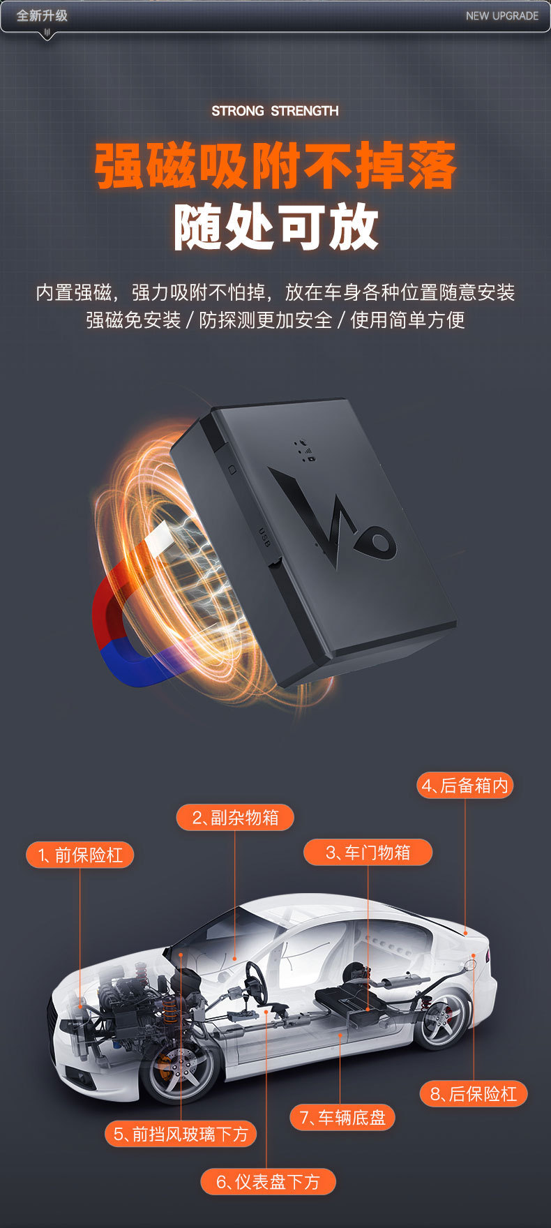 北斗4G强磁车载gps定位器汽车防盗金融免安装宠物定位追踪器智能