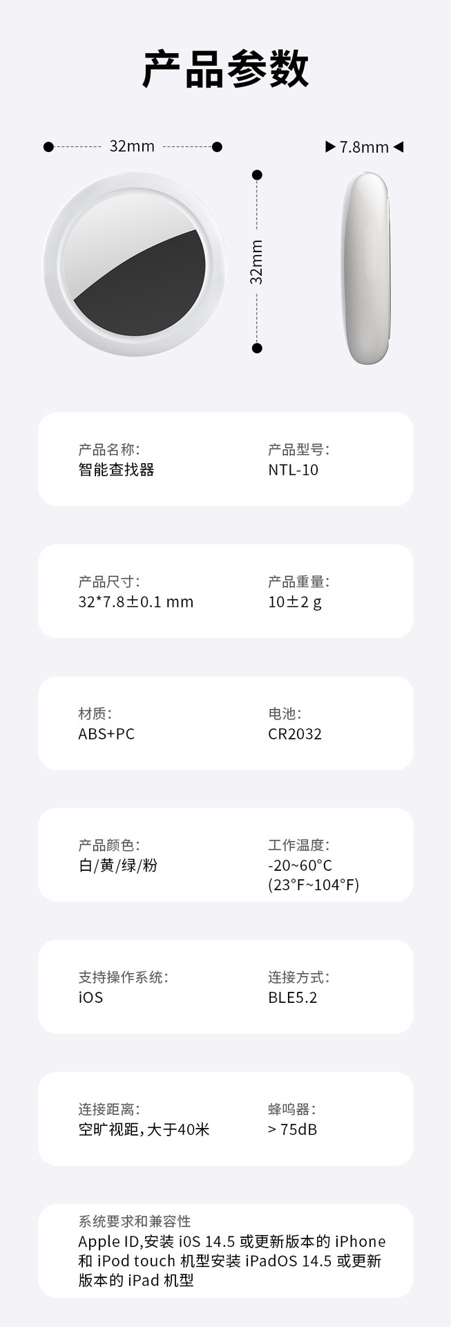 AirTag防丢器宠物定位器儿童老人适用于苹果智能防丢器MFI认证