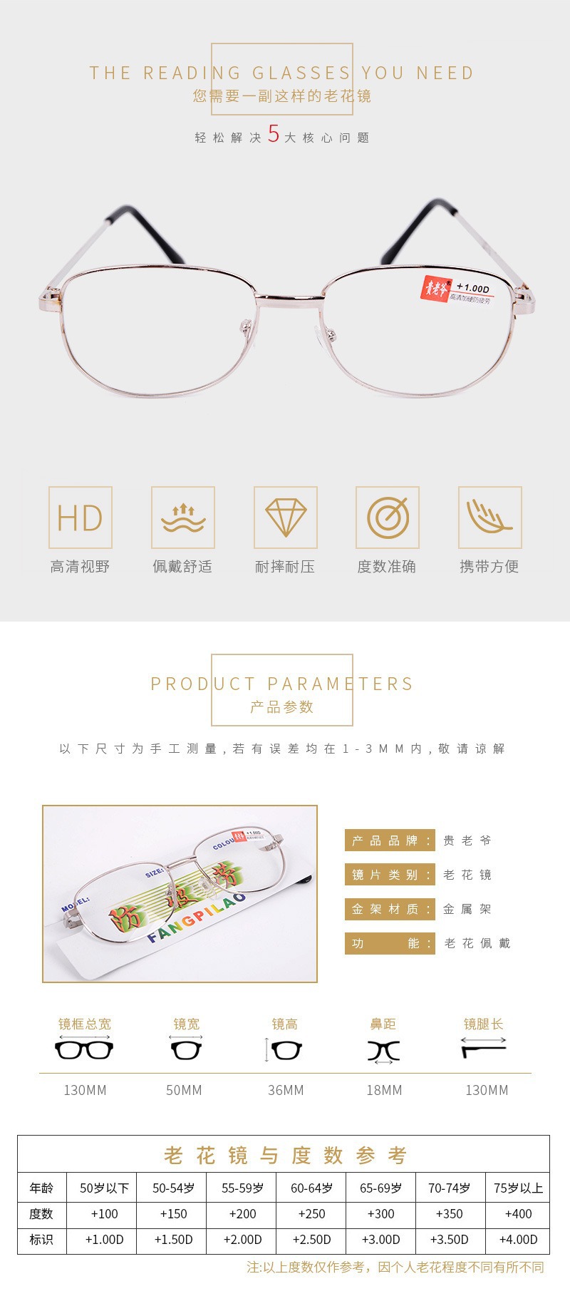 贵老爷金属时尚老花镜批发超轻树脂片男女老花眼镜舒适便携金属