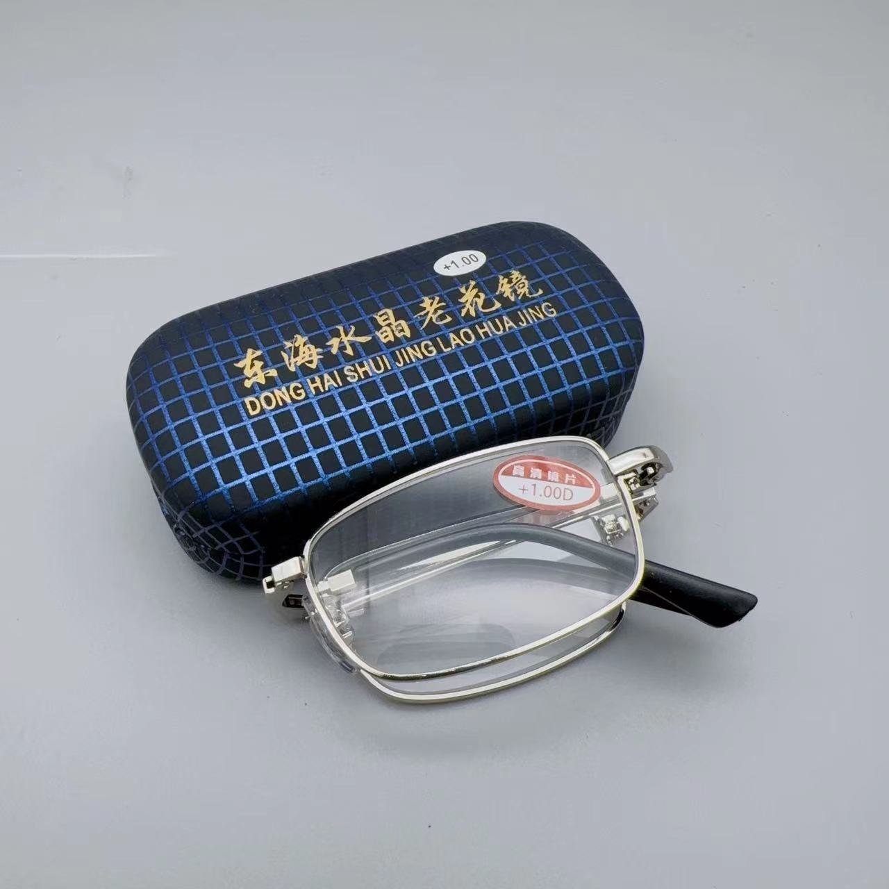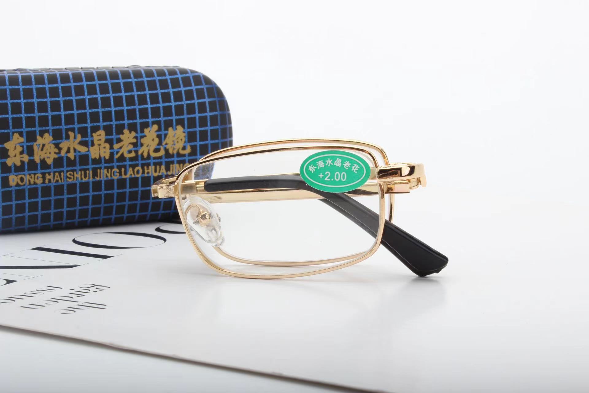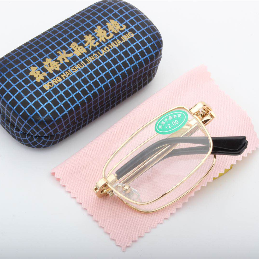 玻璃老花镜折叠老花镜仿东海水晶老花镜地摊铁盒钻不进划不花钻不