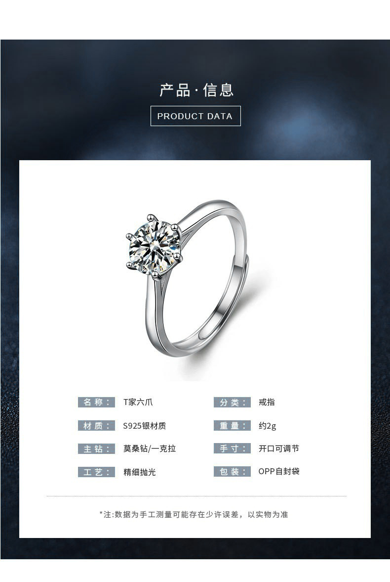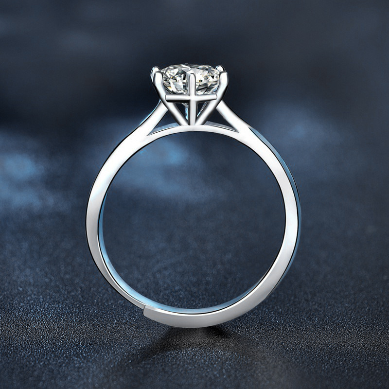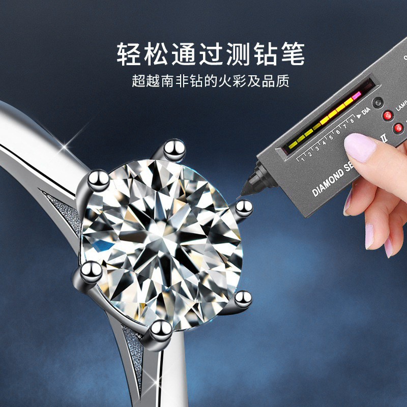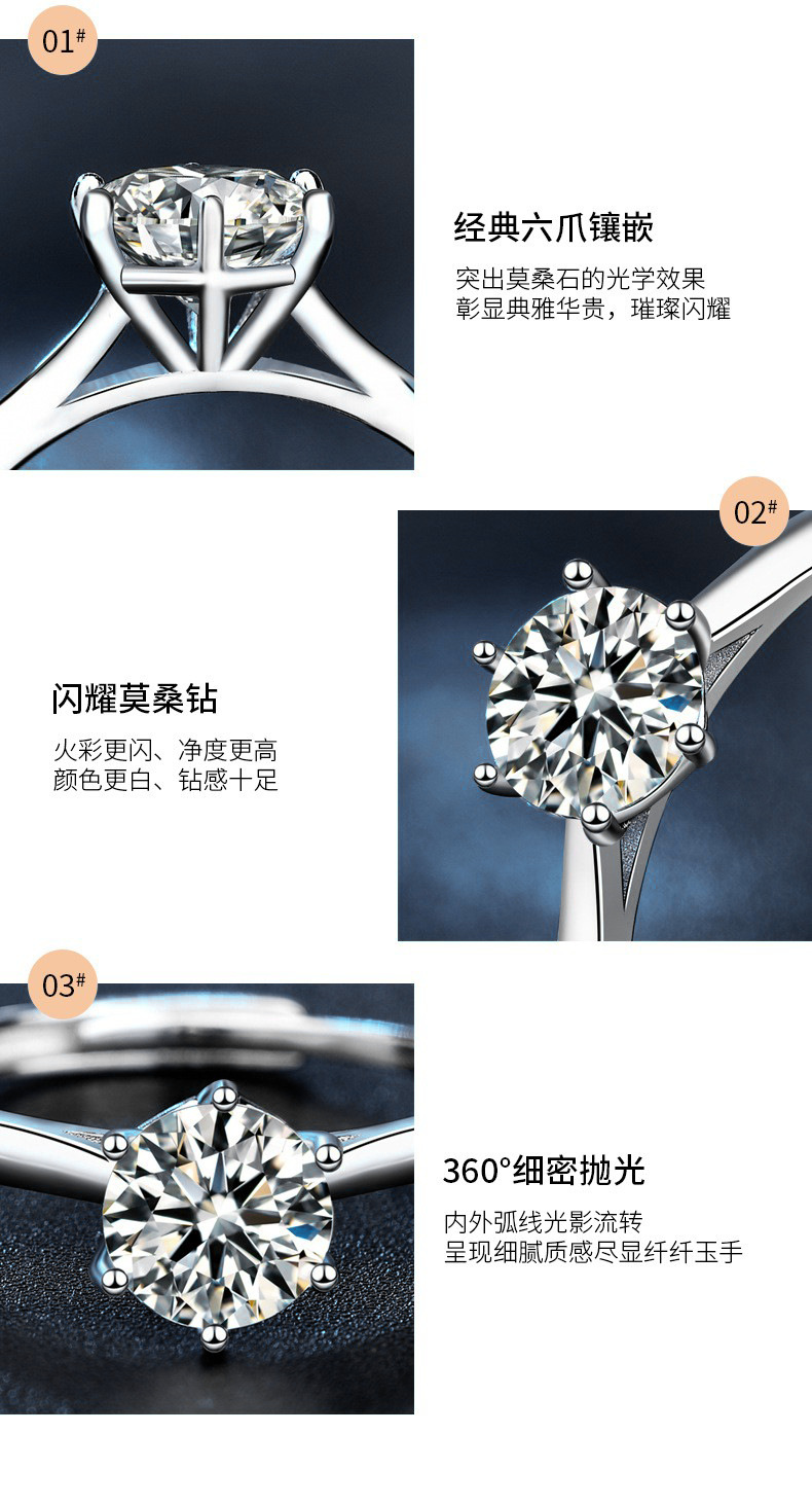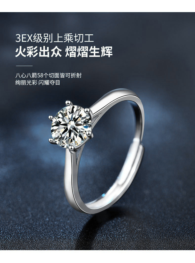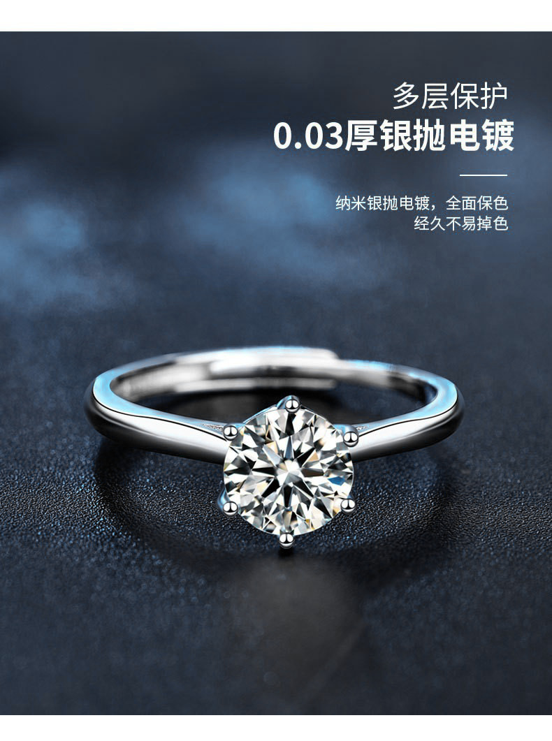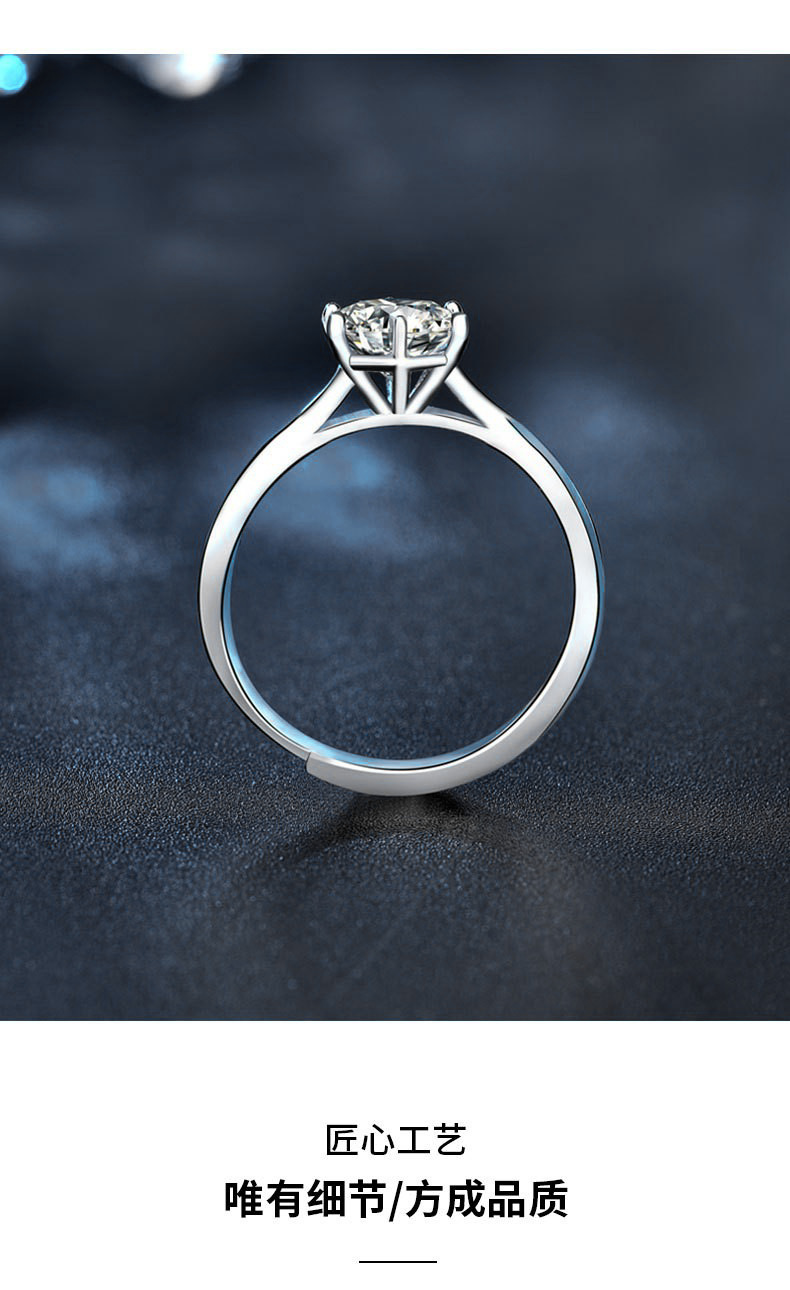 日韩时尚莫桑石指环s925纯银戒指女周家同款六爪戒指新娘结婚手饰