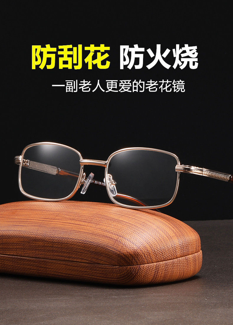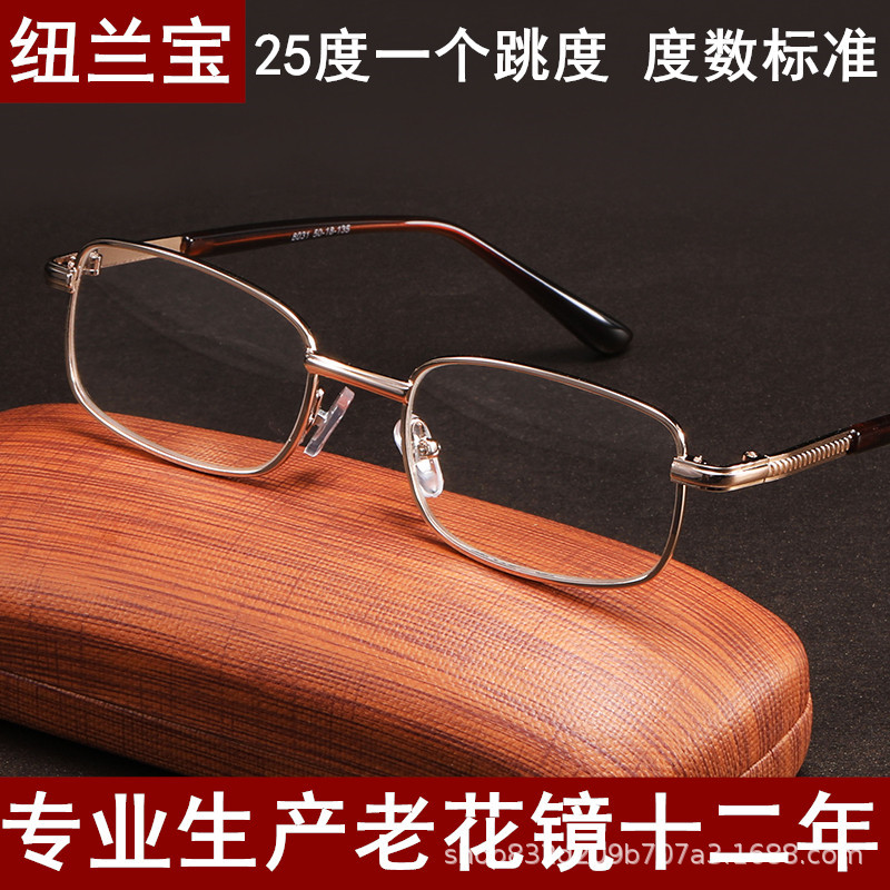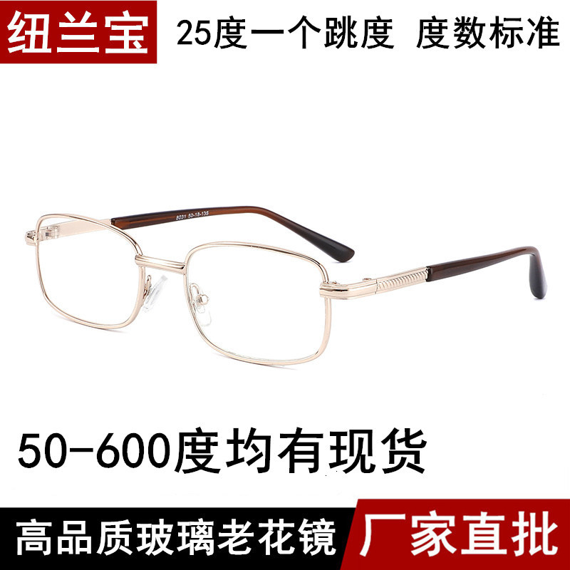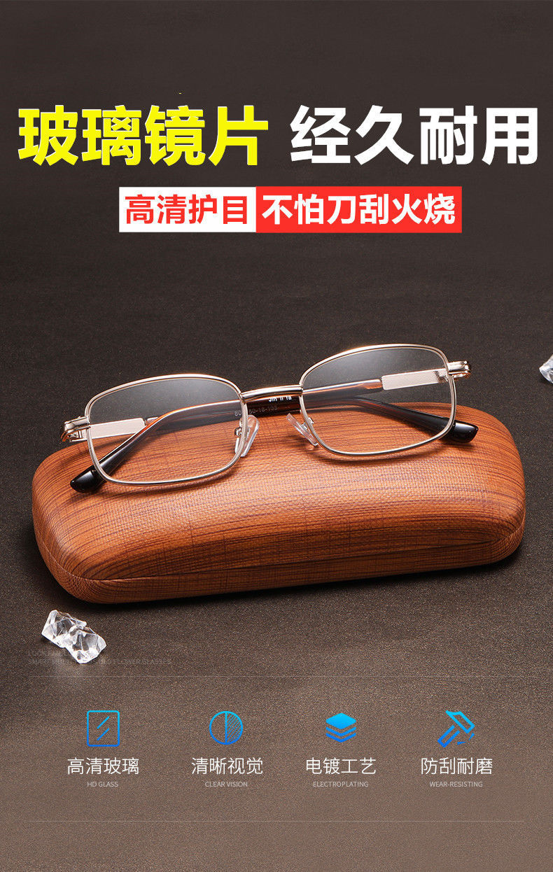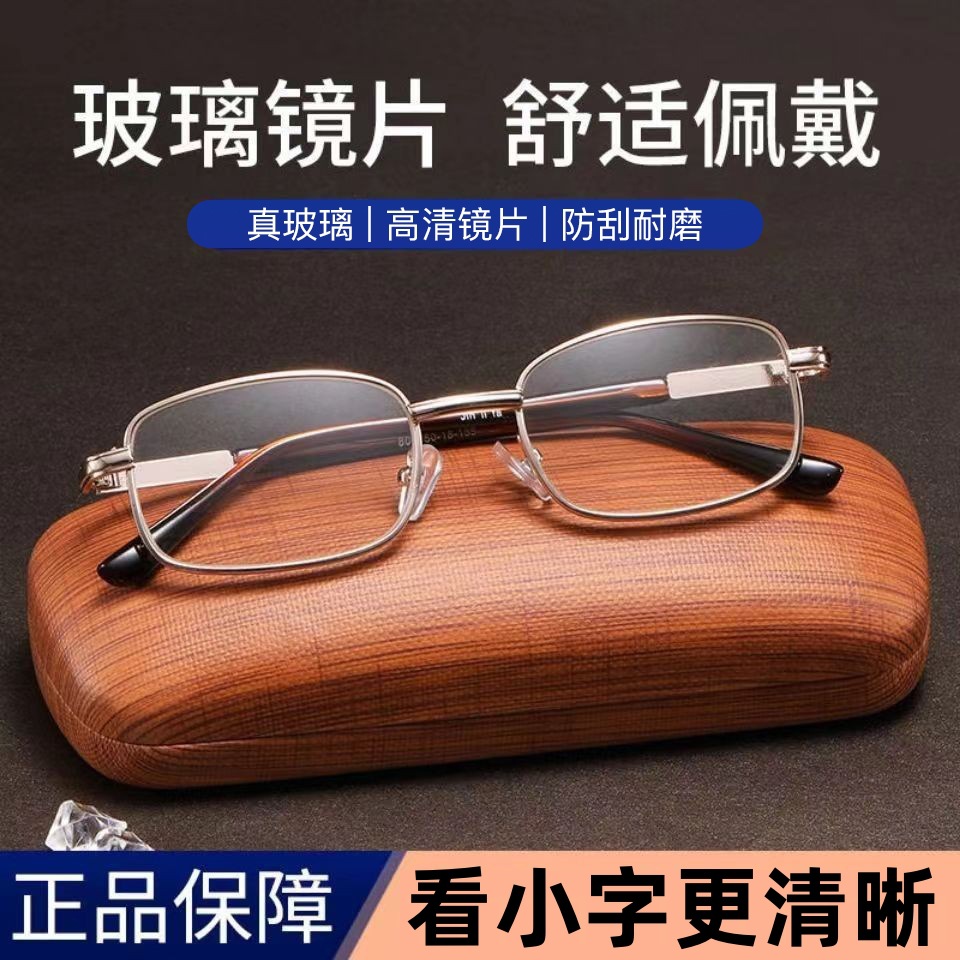高清玻璃老花镜50/500/550/600度高度数老花眼镜高档金属框花镜