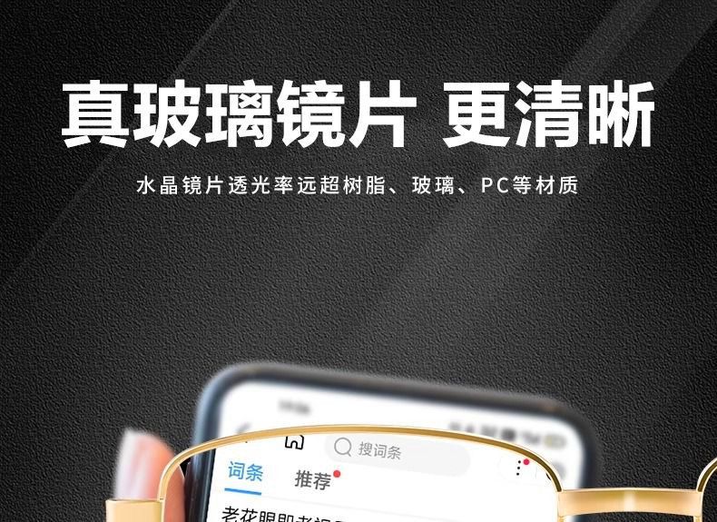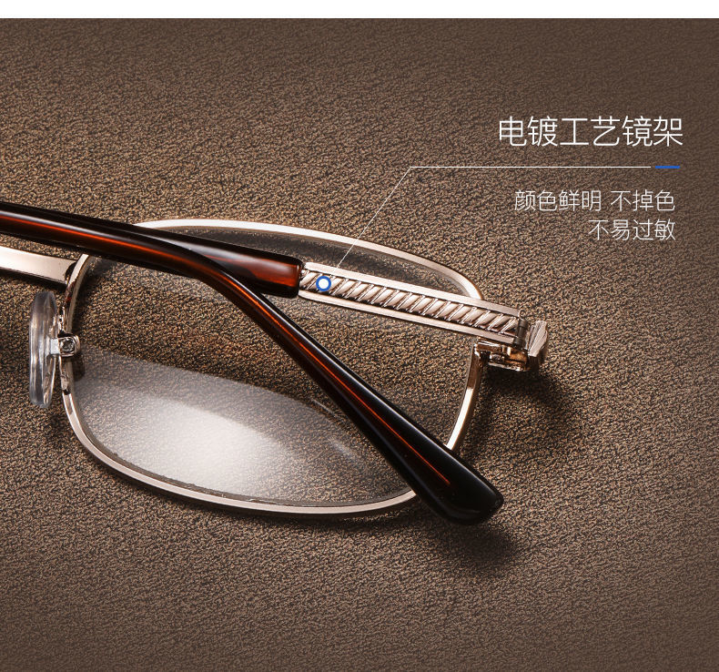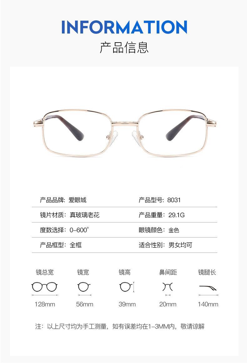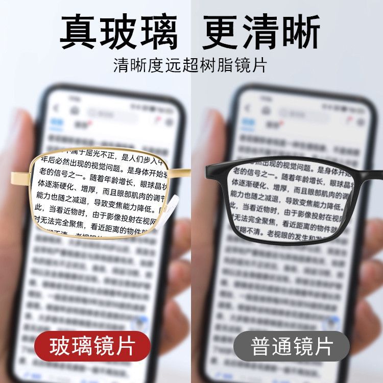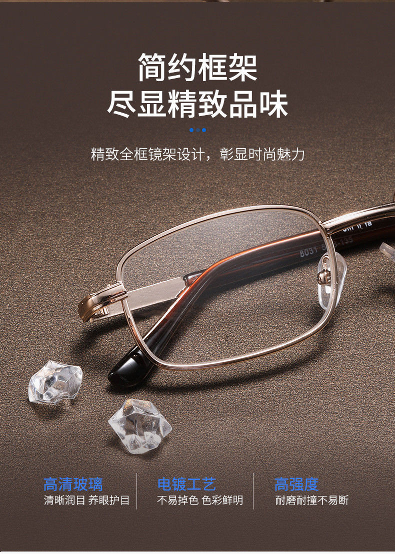 高清玻璃老花镜50/500/550/600度高度数老花眼镜高档金属框花镜