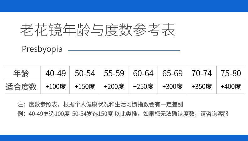 | 200度【建议55-59岁】 | USD $2.06 | 99427 pair available |