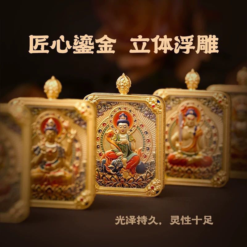 五台山五爷高档唐卡十二生肖守护双面立体浮雕唐卡新款挂件