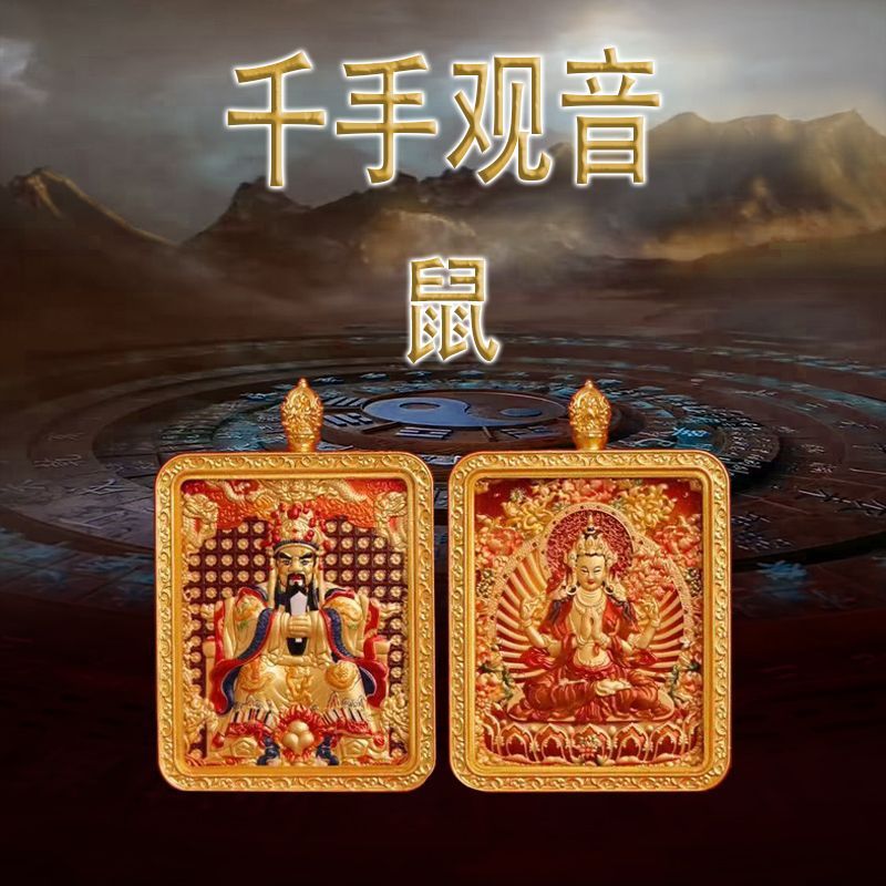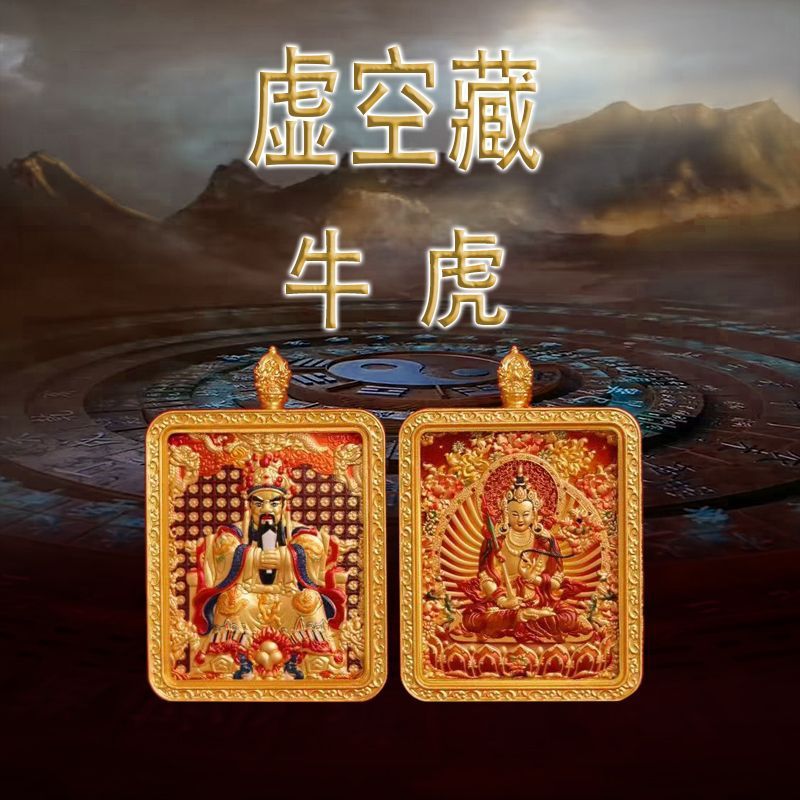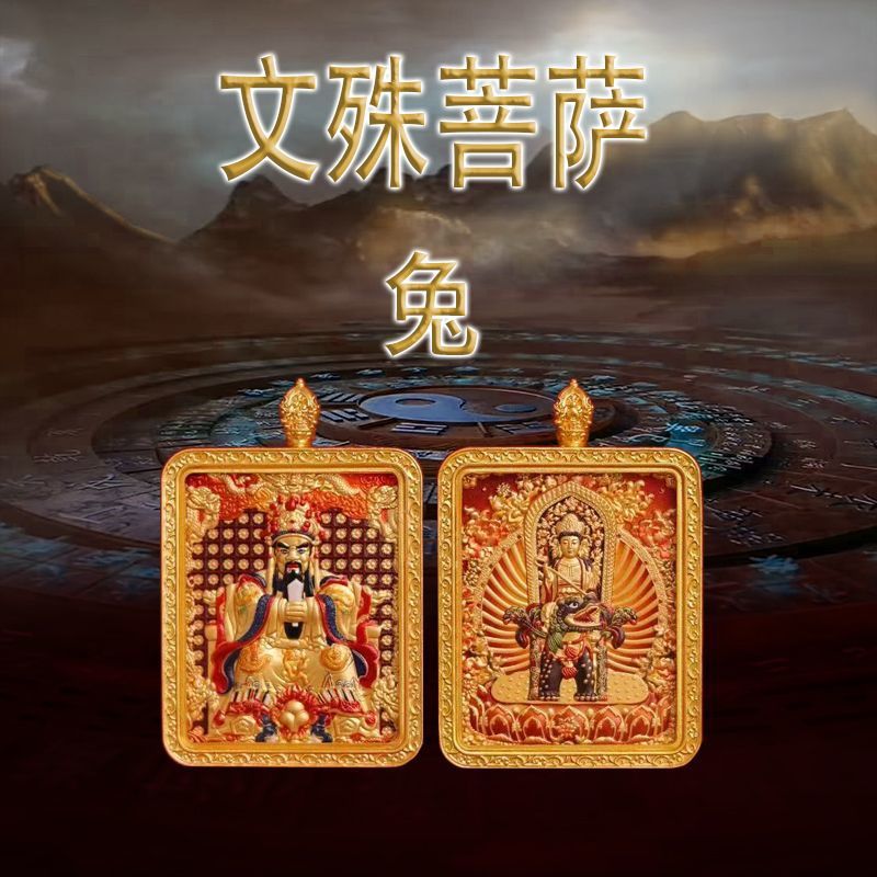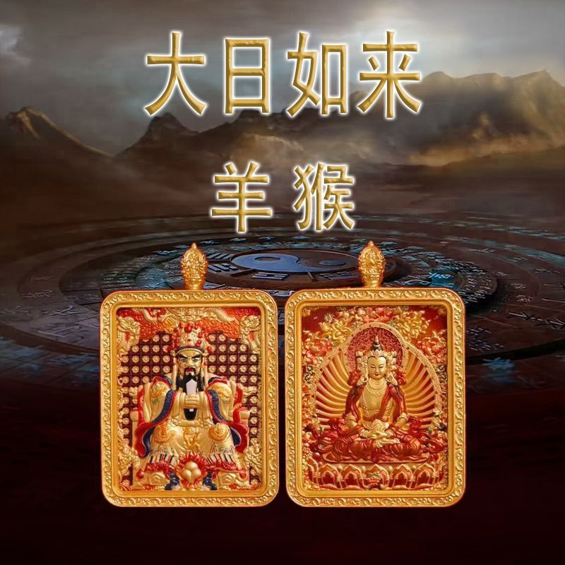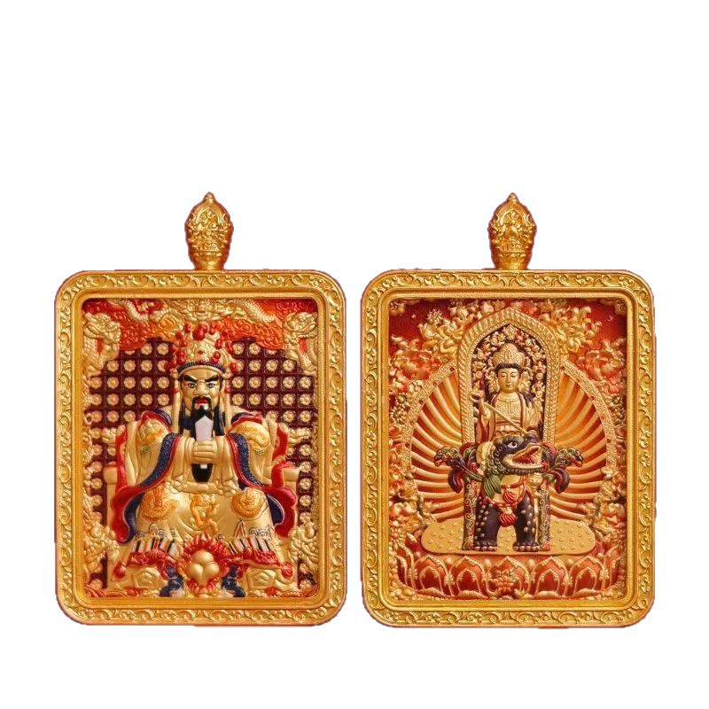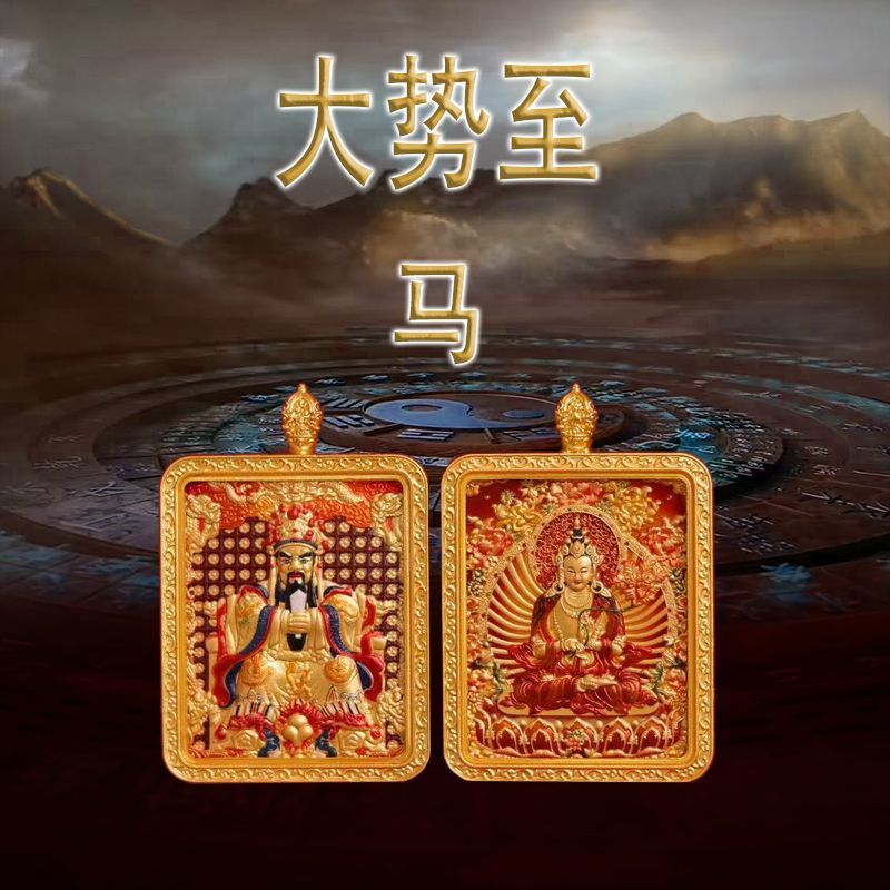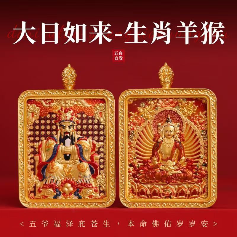 马年五台山唐卡双面浮雕本命佛牌吊坠守护神十二生肖本命佛唐卡