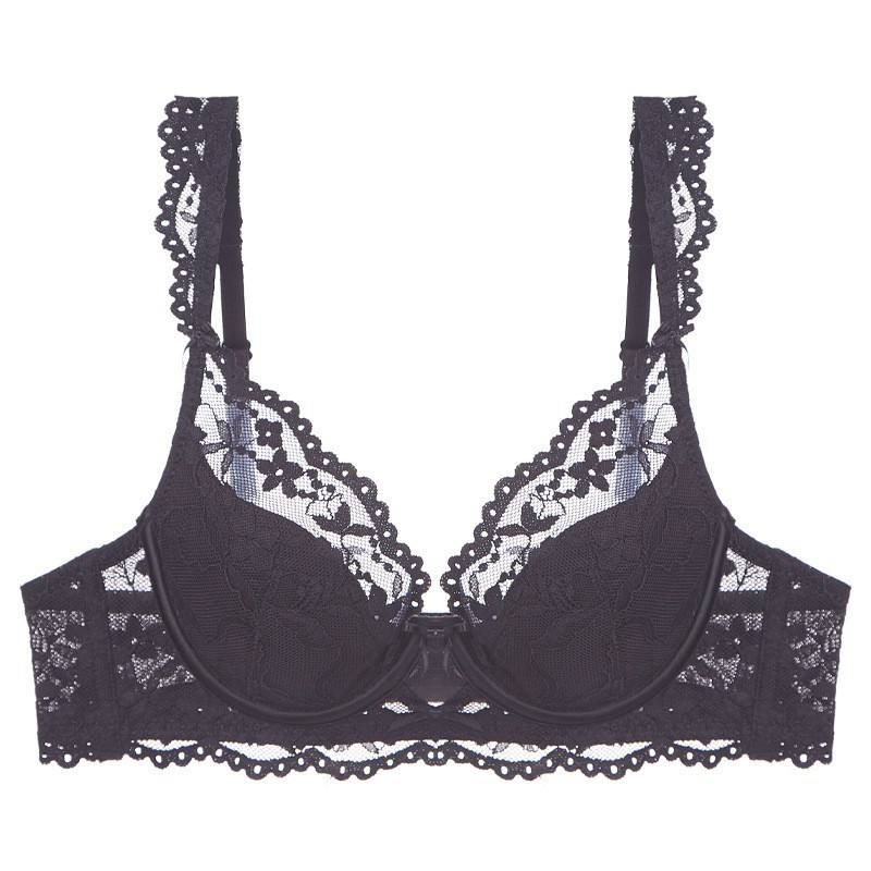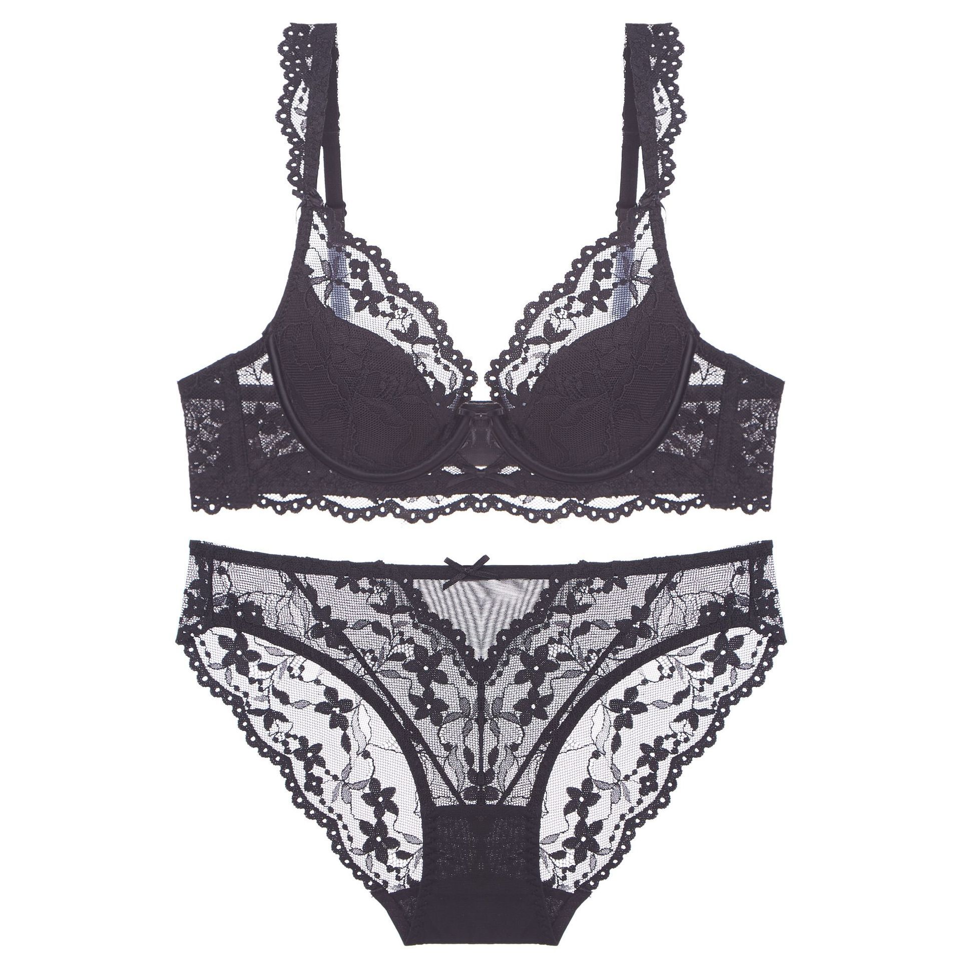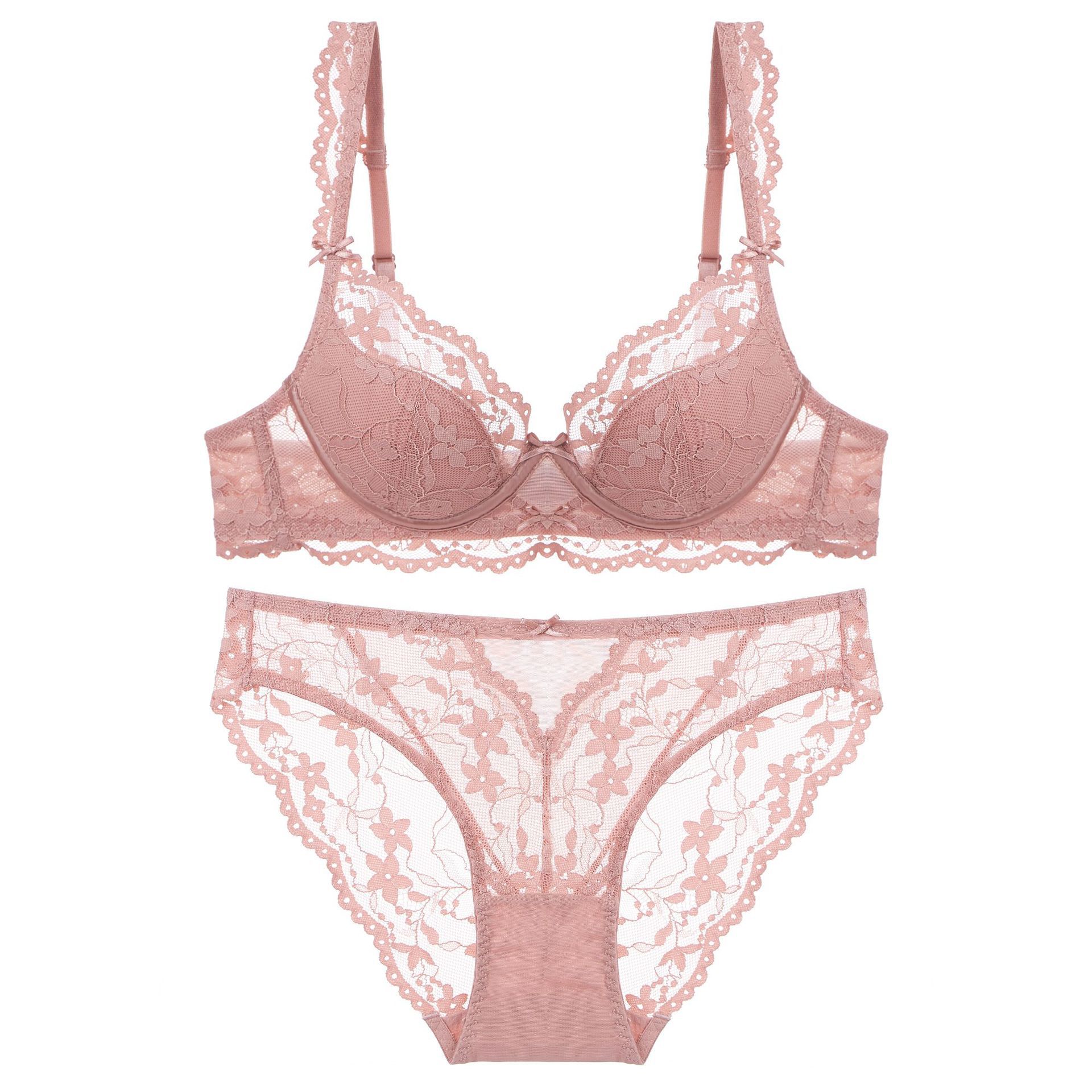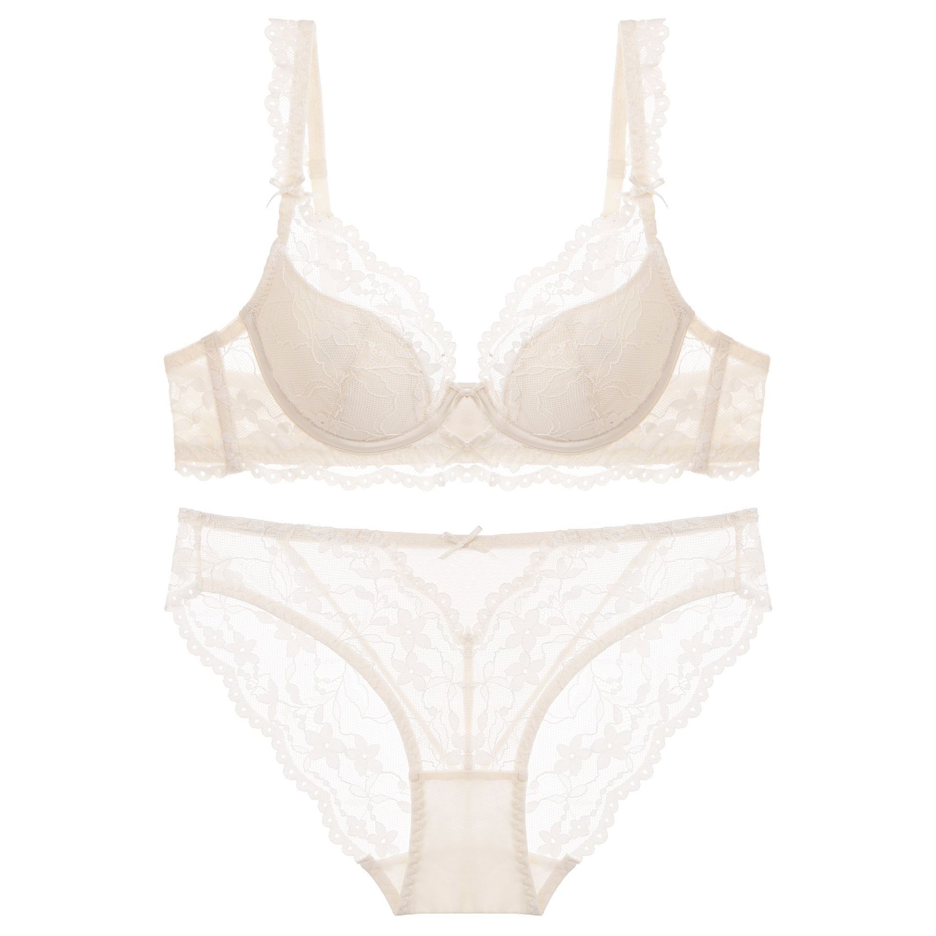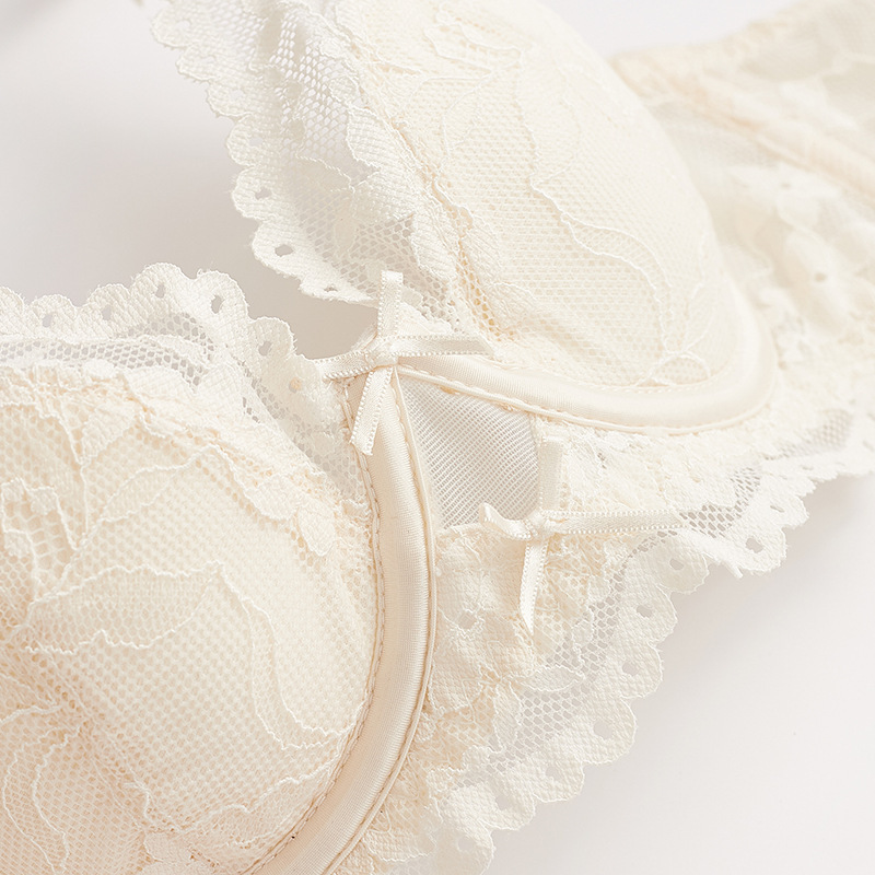 跨境法式内衣小胸显大聚拢收副乳文胸薄款软钢圈性感蕾丝内衣套装