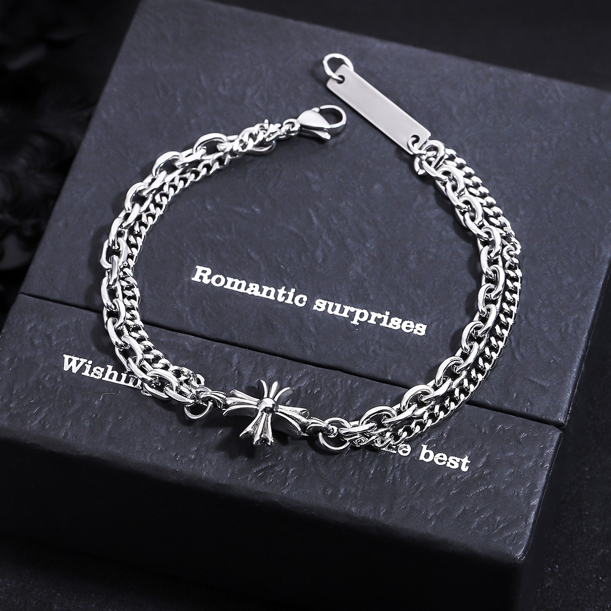 手链男士不锈钢百搭高级感潮流爆款首饰女简约复古嘻哈配饰品批发
