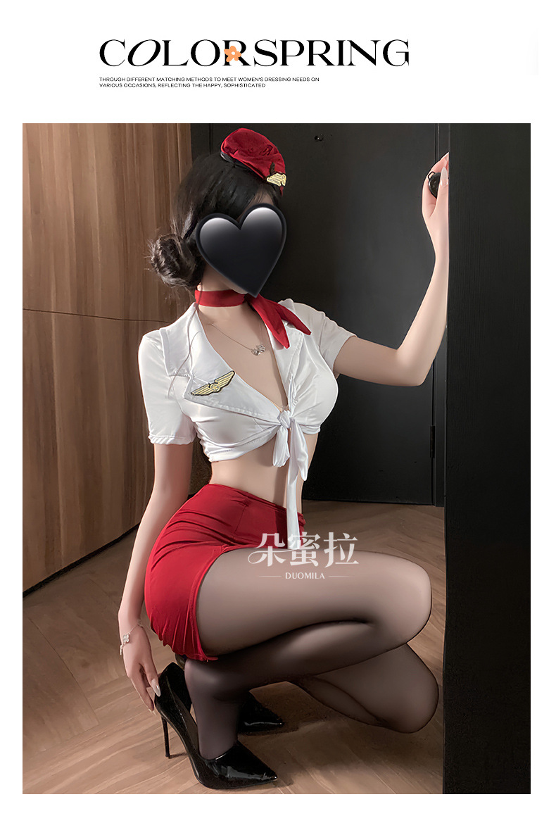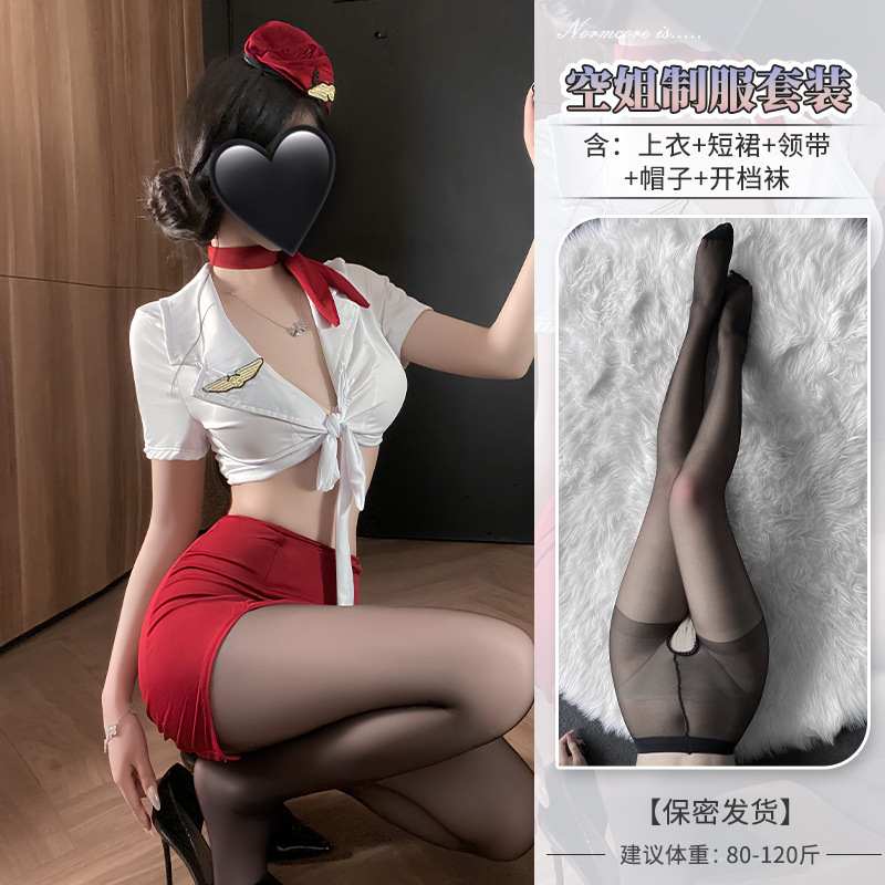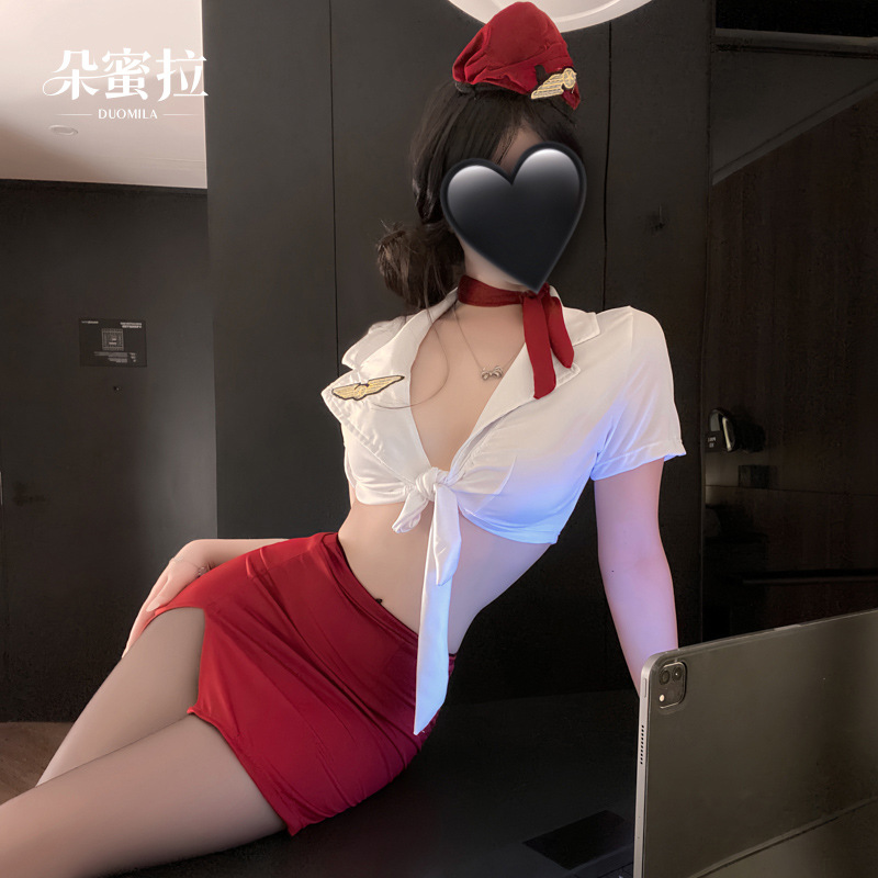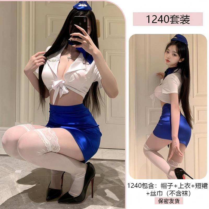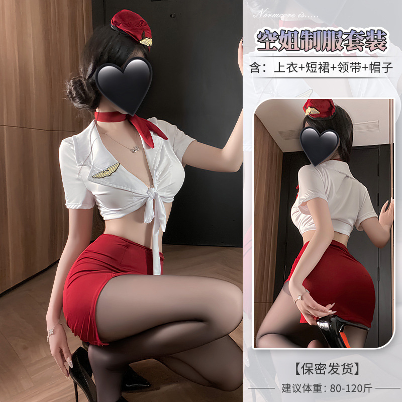 情趣内衣女纯欲空姐制服性感深V免脱套装小胸显大诱惑睡衣qqny